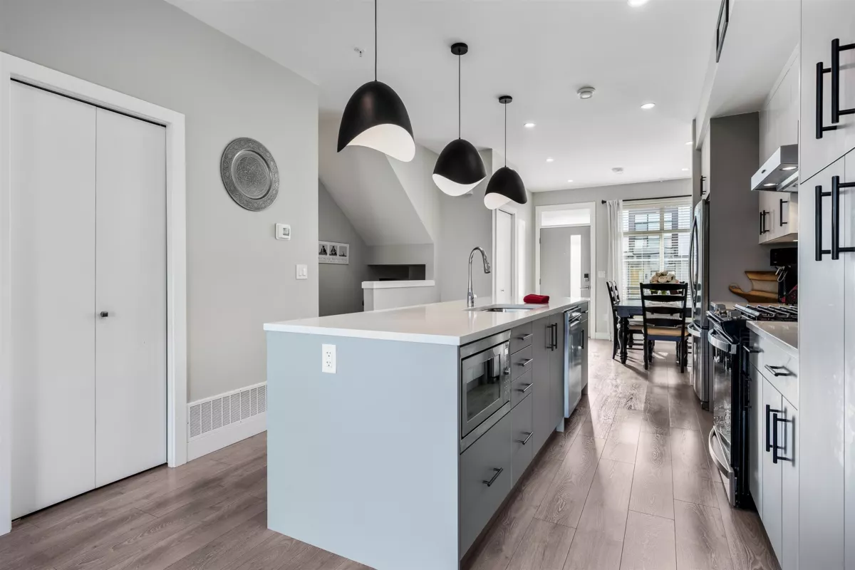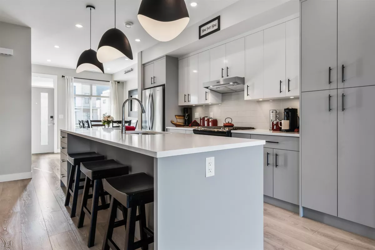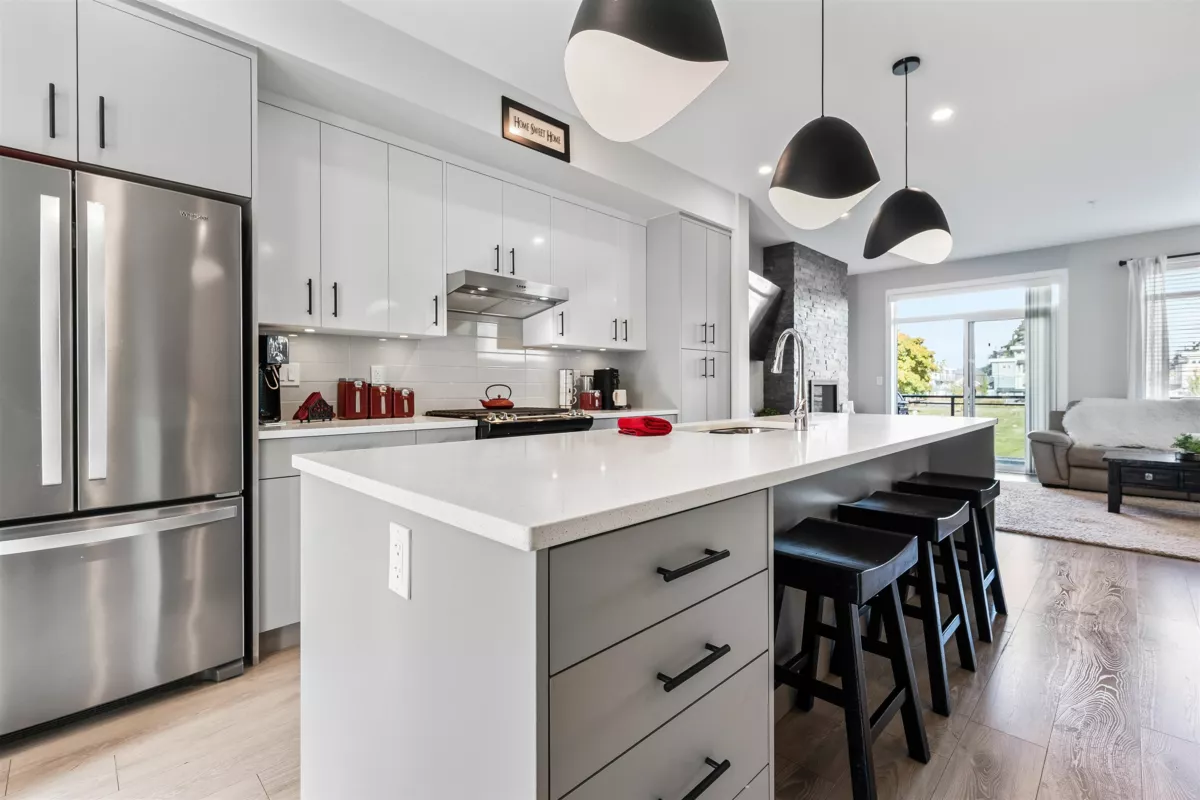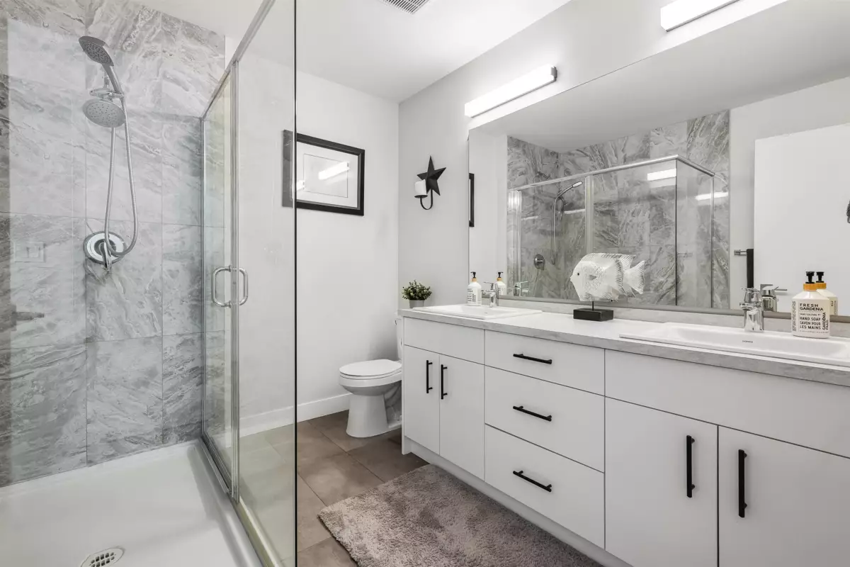 Discover this STUNNING END UNIT townhome with a 1-BED SUITE in the highly desirable Base 10 complex! Ideally situated near schools, shopping, transit & MORE! Step into the BRIGHT, OPEN main floor featuring a sleek kitchen with S/S appliances, elegant lighting & a HUGE island with generous storage. The inviting living room showcases a stone gas fireplace & opens to a LARGE balcony with gas hookup. Upstairs offers a LUXURIOUS primary suite with dual vanities & a glass walk-in shower, plus 2 additional bedrooms, full bath & laundry. Not to mention, DBL garage with added spot to park in front PLUS designated 4th stall in front of unit for suite! A must-see home!