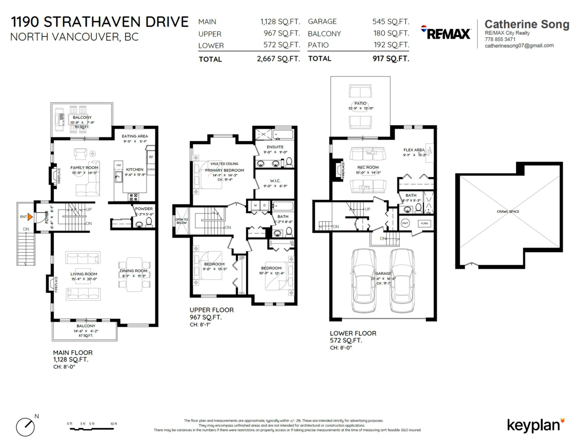 Welcome to this beautifully updated duplex-style end-unit townhome in the sought-after Strathaven community. Nestled on a quiet cul-de-sac backing onto a greenbelt, this 2,700 sq. ft. home offers modern comfort and privacy. The main level features a renovated kitchen with quartz countertops, stainless steel appliances (2023), and an open-concept living area, complemented by oak-engineered floors and a gas fireplace. Upstairs are three bedrooms, including a luxurious primary suite with a walk-in closet and a spa-inspired ensuite. The fully finished lower level adds a media room or fourth bedroom. Enjoy two private patios, EV charging, and a proactive strata—steps to Northlands Golf Course, Bridle and Baden-Powell Trails, and all amenities. Conveniently located near schools, parks, and shops