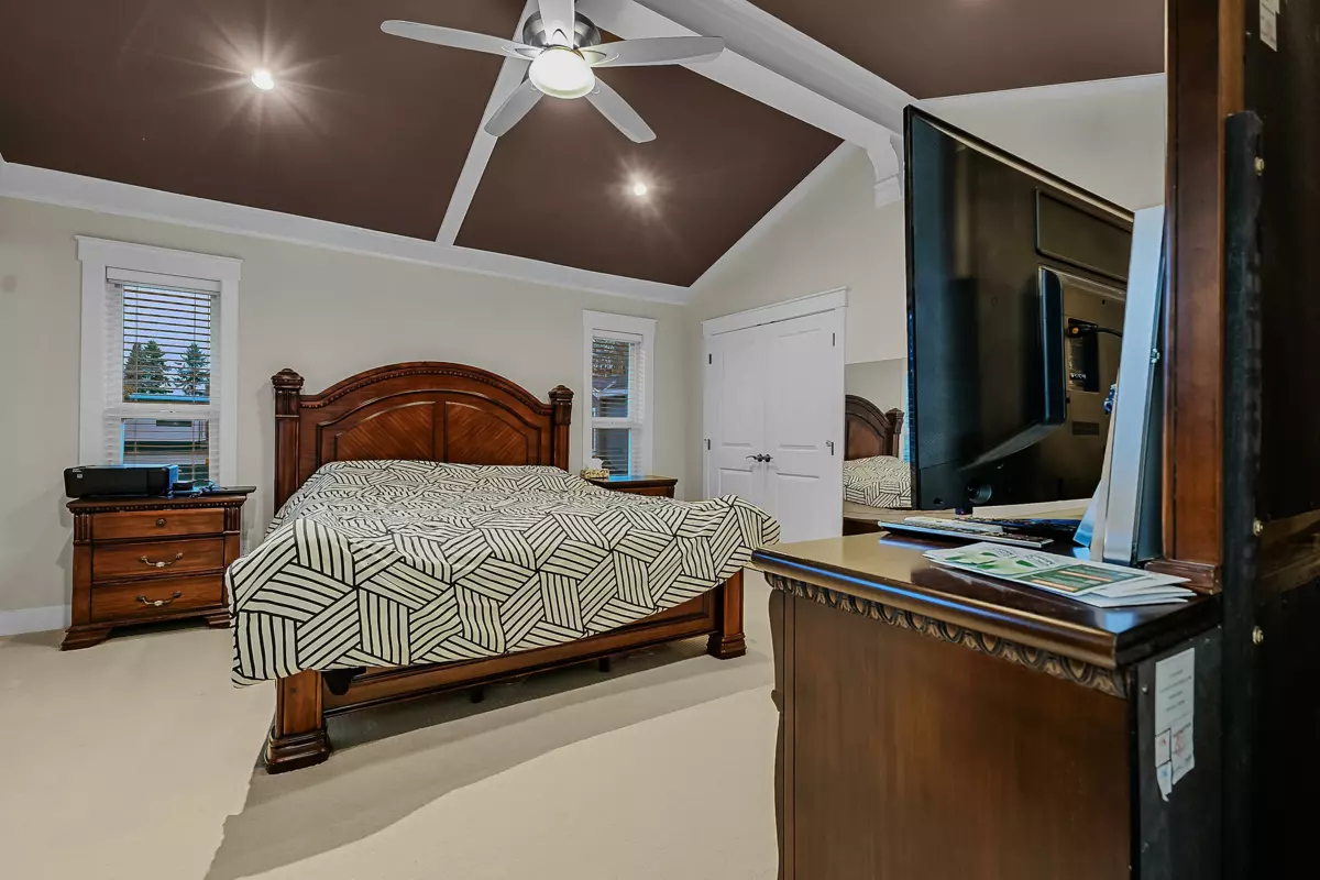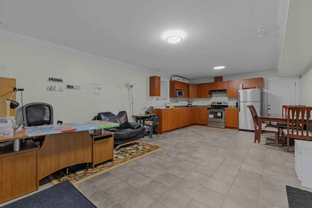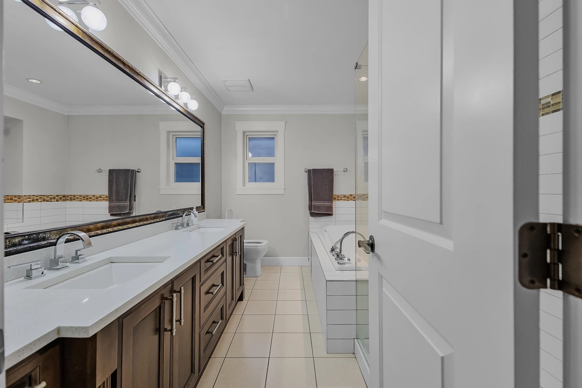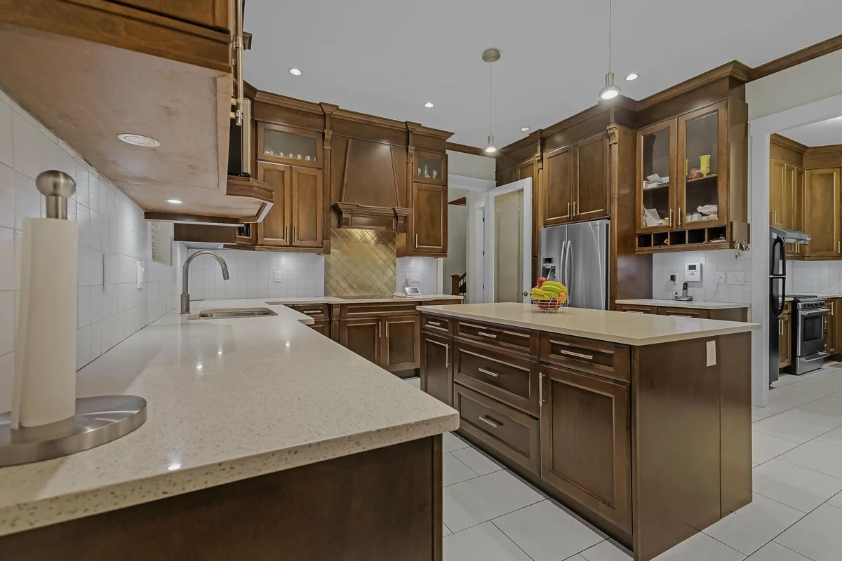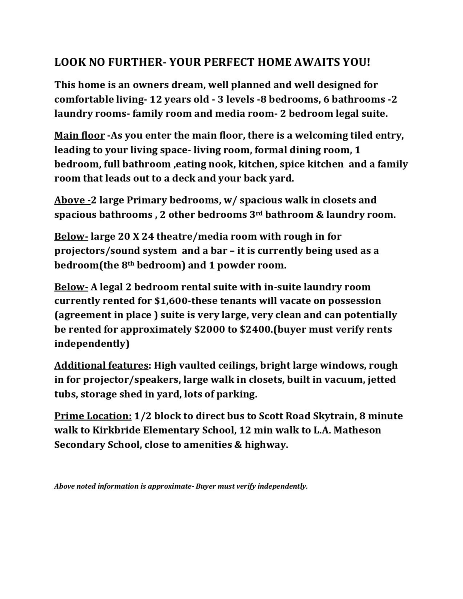 This stunning Craftsman-style home offers 3,845sq.ft(approx) of luxurious living space with 8 bedrooms & 6 baths. The main floor showcases dramatic vaulted ceilings in the living room, a cozy gas fireplace, and an elegant dining area. The kitchen is a chef’s dream w/ S/S appliances, a spacious island, a separate spice kitchen, and an inviting eating area that flows into the patio for all your summer celebrations. Upstairs features 4 generous bedrooms, 3 W/I closets, ensuite bathroom with a large soaker tub. Legal self-contained 2 bedroom suite with laundry—perfect for guests or rental income. Location is a 10/10, short walk to both levels of school, steps to transit & shopping-great for families with young kids and elders.