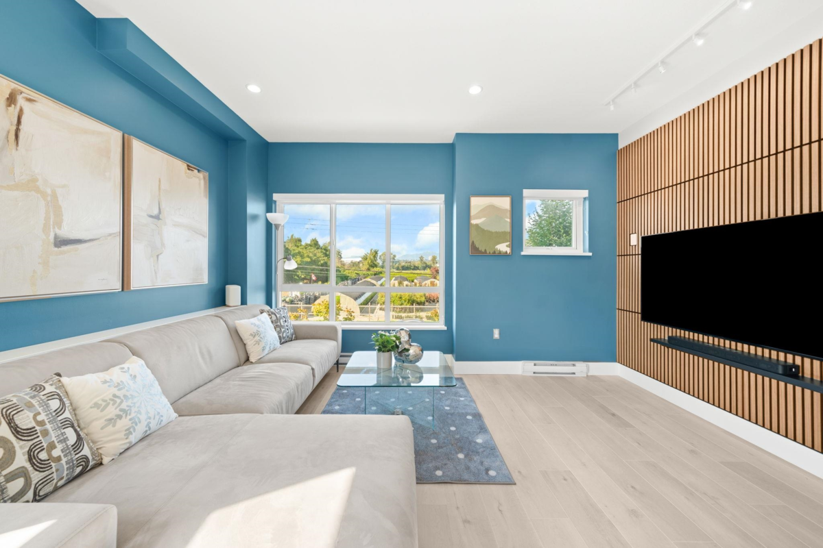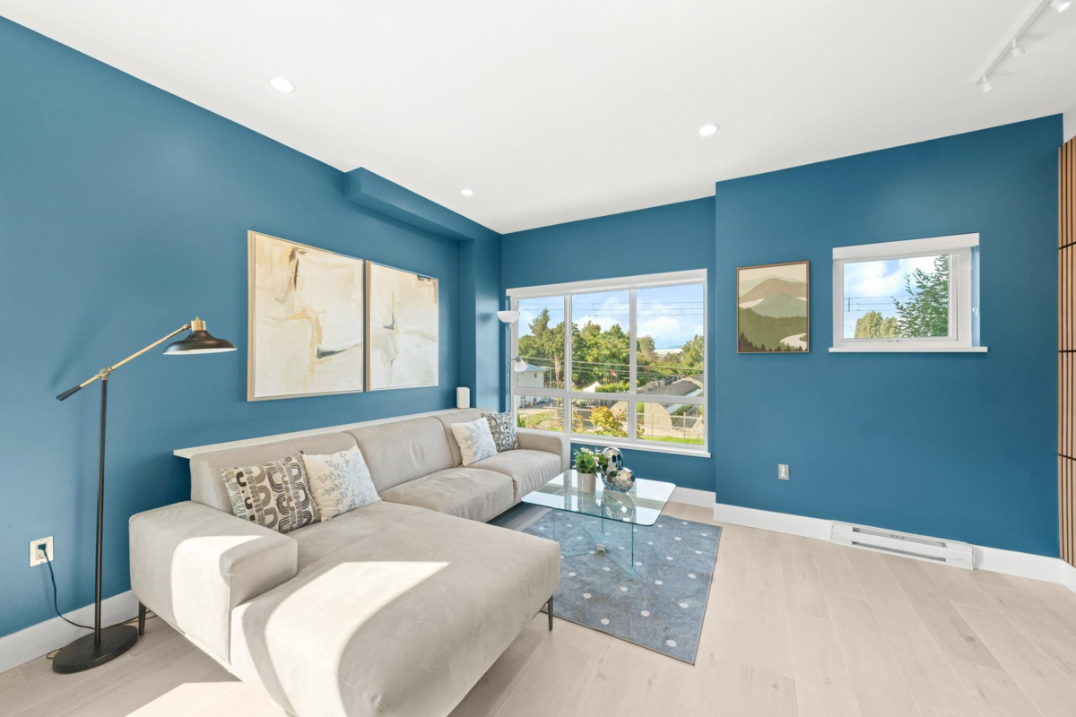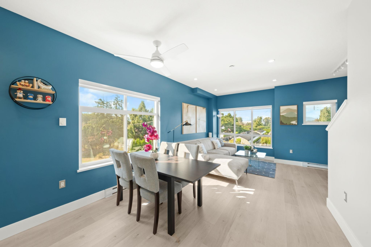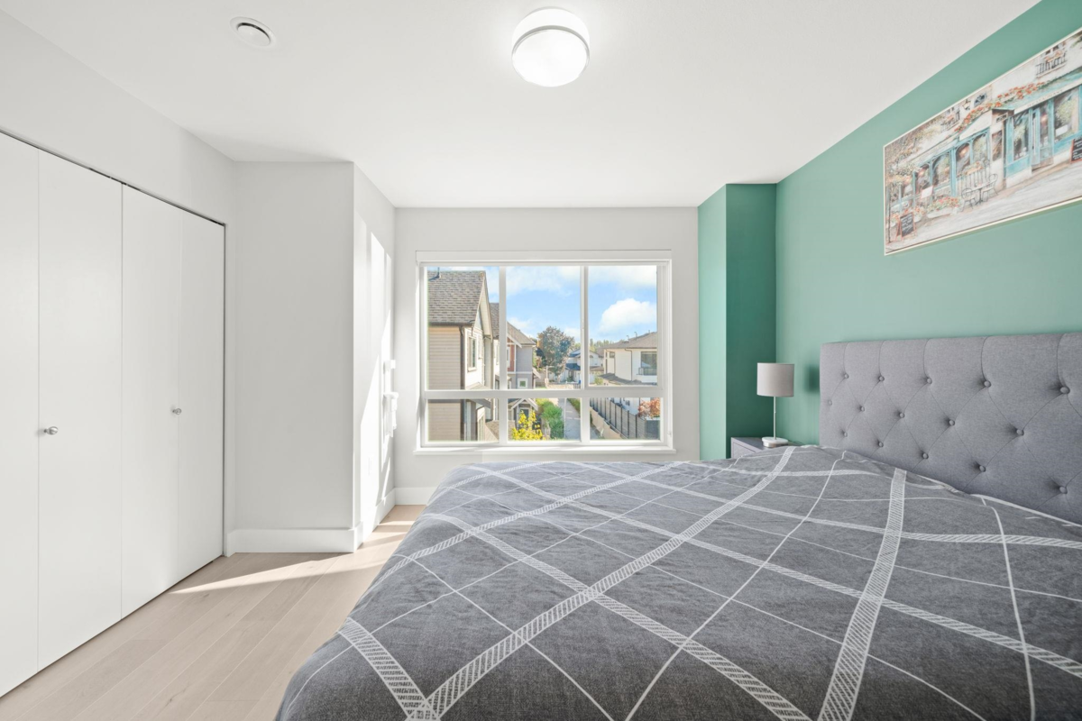 Proud Ownership! Gorgeous Corner 3 BR 2.5 BA townhouse with picket fence front yard in the fast growing Hamilton Area. Nestled on a quiet street with unobstructed view of greens & North Shore mountains. Quality built by DAVA & meticulously updated by the Owners with brand new light coloured flooring & bold designer colours. Quiet Corner unit with extra windows offers tons of natural light. Gorgeous 9 ft main floor with entertainment size Living, Dinning & Kitchen featuring quartz counter, stainless steel appliances & HRV. Downstairs tandem garage had been converted to a huge entertainment room or 4th bedroom with 2 windows. One blk to transit and 2 blocks to community school. 5 min drive to Queensborough Landing Shopping Centre, 15 min to Richmond Center and Metrotown w/Easy access to Hwy.