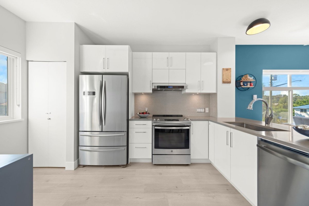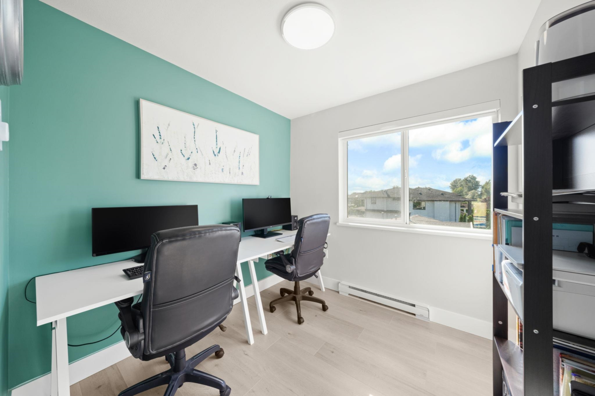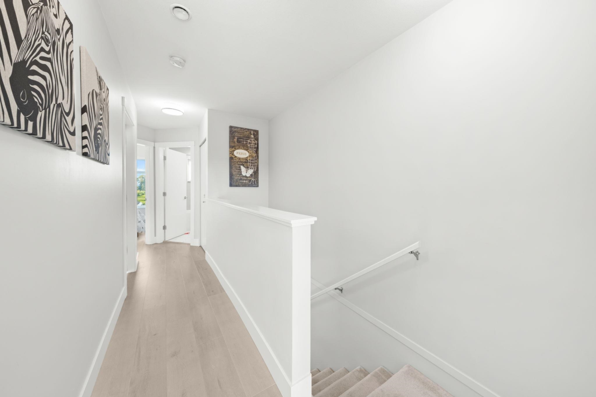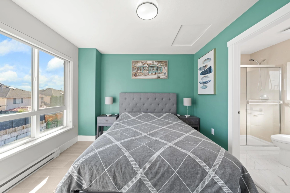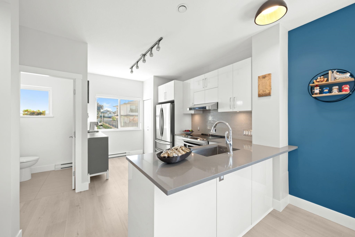 Proud Ownership! Gorgeous Corner 3 BR 2.5 BA townhouse with picket fence front yard in the fast growing Hamilton Area. Nestled on a quiet street with unobstructed view of greens & North Shore mountains. Quality built by DAVA & meticulously updated by the Owners with brand new light coloured flooring & bold designer colours. Quiet Corner unit with extra windows offers tons of natural light. Gorgeous 9 ft main floor with entertainment size Living, Dinning & Kitchen featuring quartz counter, stainless steel appliances & HRV. Downstairs tandem garage had been converted to a huge entertainment room or 4th bedroom with 2 windows. One blk to transit and 2 blocks to community school. 5 min drive to Queensborough Landing Shopping Centre, 15 min to Richmond Center and Metrotown w/Easy access to Hwy.