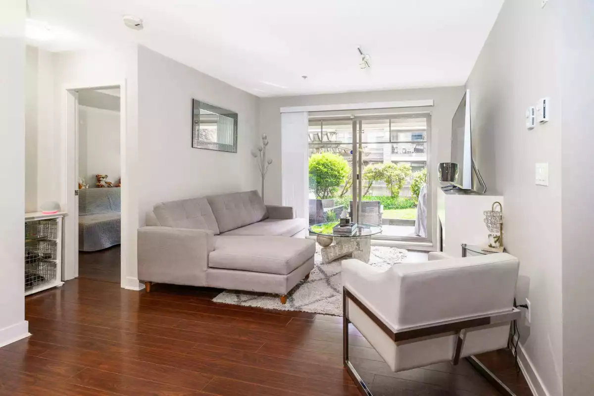 Immaculate 2 bed, 2 bath ground-floor condo in the heart of town! This spacious open-plan unit offers a bright, functional layout with generous living and dining areas. The well-maintained interior features quality finishes and plenty of storage + 2 Parking spots. Enjoy the ease of ground-floor access and a private patio for relaxing or entertaining. Centrally located—just steps to shopping, transit, parks, and recreation. Ideal for first-time buyers, downsizers, or investors. Locker #4 First Floor. Move-in ready—don’t miss this incredible opportunity!
