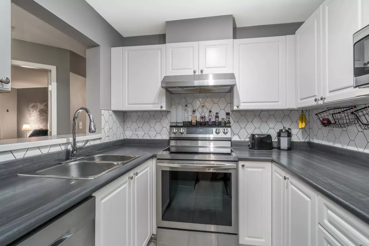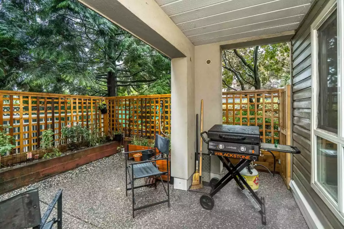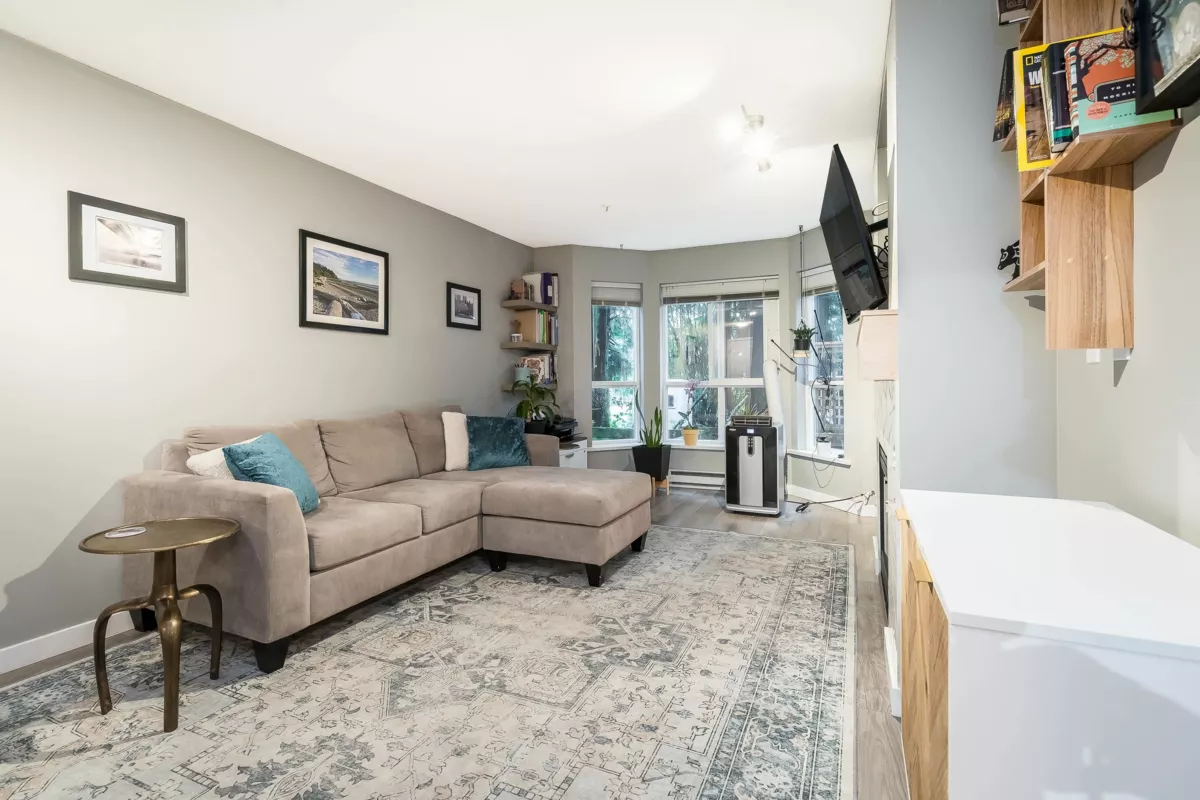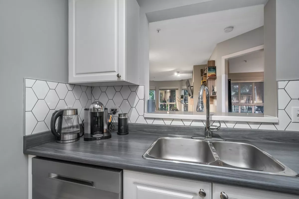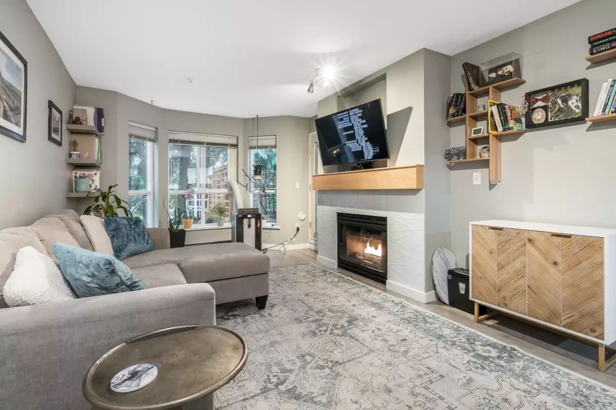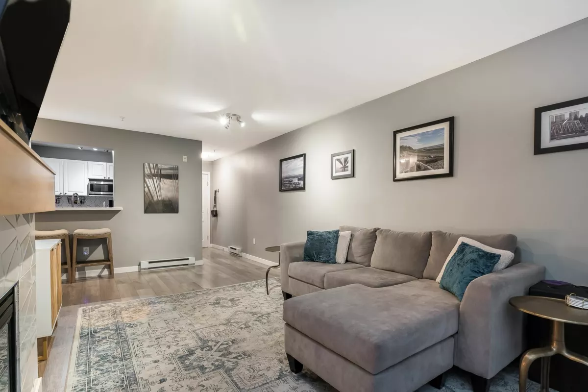 Welcome to Sherwood Green! Great opportunity in a ground level unit featuring 1 bed 1 bath 653 sq.ft. W/updated fireplace, stainless steel appliances, spacious patio & new patio fence, light fixtures, newer floors, well maintained building w/ exercise room, amenity room, 1 parking and storage locker, very close to walking trails and surrey nature park, lake , 1 block from Jim Pattison Hospital. Quick drive to memorial hospital, Guildford mall & Central city mall, pet friendly, low condo fees.
