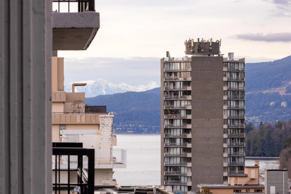 Rarely available concrete 2 bedroom, 1.5 bath apartment in Westsea Towers. Located in the heart of the Westend this bright unit has city and mountain views from every room. Spacious 812 square feet floor plan offers covered balcony, open living/dining and galley style kitchen. Main bedroom has ensuite bathroom plus there is powder room off spacious second Property Taxes are include in maintenance fee.