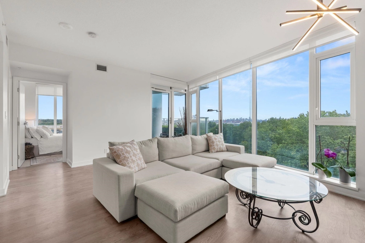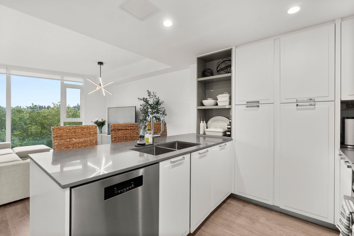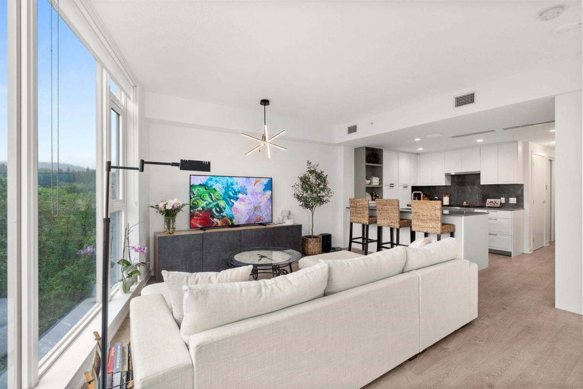 Stunning 2 Bed, 2 bath SW corner home with a rare blend of serene natural beauty and elevated urban living. A true sanctuary, with extraordinary PRIVACY & VIEWS overlooking the lush forest of Lynn Creek, Vancouver Harbour & Downtown. The open-concept living and dining area is bright and welcoming, with large floor-to-ceiling windows that frame the forested views like a piece of living art. Impeccable chef’s kitchen: sleek custom cabinetry, quartz countertops, a suite of high-end FisherPaykel appliances - further enhanced by a custom pantry. Spacious Bedrooms w/elegant spa inspired bathrooms. AC, Gym, Sauna & gorgeous event spaces incl a rooftop deck. Walk everywhere!