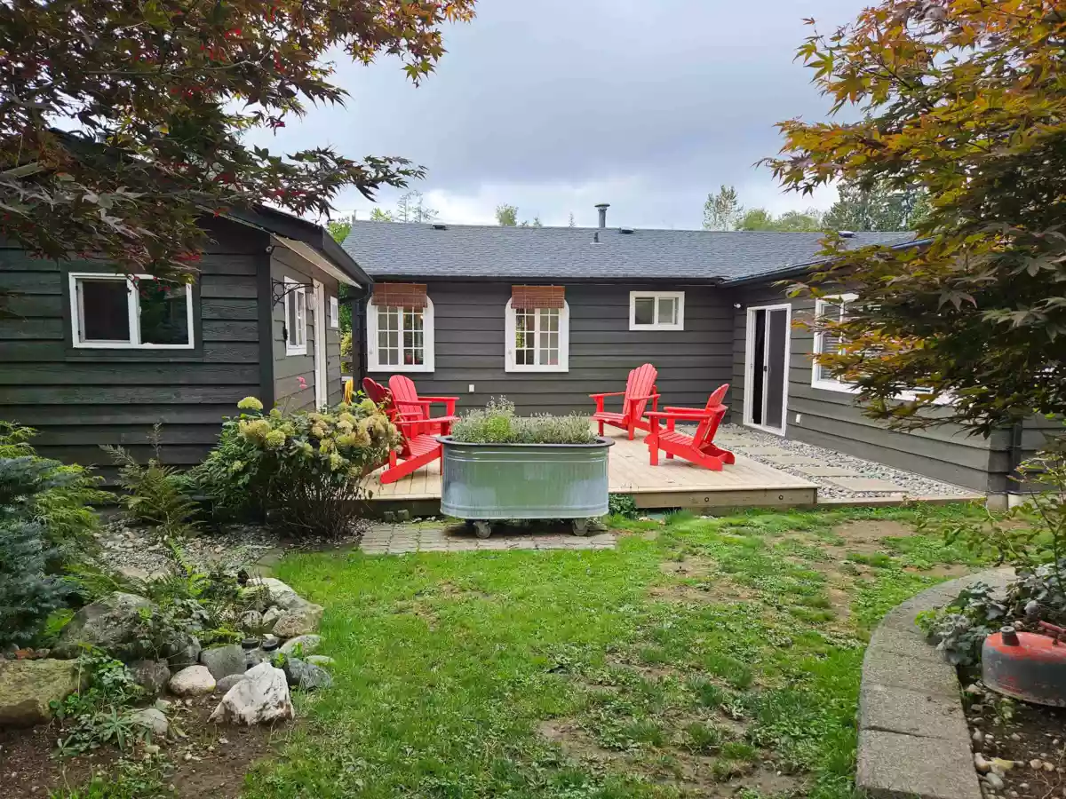 QUARTER ACRE LOT on quiet, no-thru street, this lovely home has so much character with updates including; electrical, newer windows, flooring, silestone counter tops, h/w tank, washer/dryer, gas f/p, upgraded water line from city hookup. The roof, huge back deck and refreshed modern exterior paint were done in 2024 and new septic (tank/field) & perimeter drains in 2015. The spacious bedrooms, large living spaces and vaulted ceiling give the home an open & airy feel. The 17X11 attached storage/workshop could be livingspace! This home offers multiple outbuildings including; 2 sheds; greenhouse; carport 25'x12' & RV pkg. Outside is a gardeners dream with loads of mature shrub/trees, vegetable gardens, fully fenced yard for kids/pets, front/back decks perfect for entertaining.