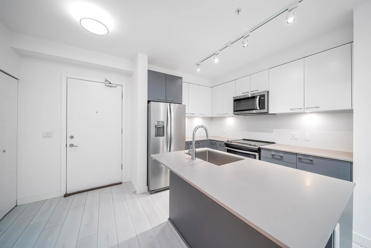 Bright 1-Bedroom in the Heart of Whalley Located in one of Surrey’s fastest-growing areas! Just 5 minutes to major supermarkets and the SkyTrain-close enough for easy commuting yet far from the noise. The home features a private patio and yard, offering comfort, privacy, and a touch of nature with a park right behind the building. Inside, the spacious and sunlit bedroom provides a relaxing retreat, while the open-concept living and dining area maximizes every inch of space for comfort and functionality. Such a smart layout ensures both convenience and style. Enjoy a two-level amenity center with a gym, yoga room, meeting room, and outdoor ping-pong area-perfect for a healthy, active lifestyle. Move-in ready!