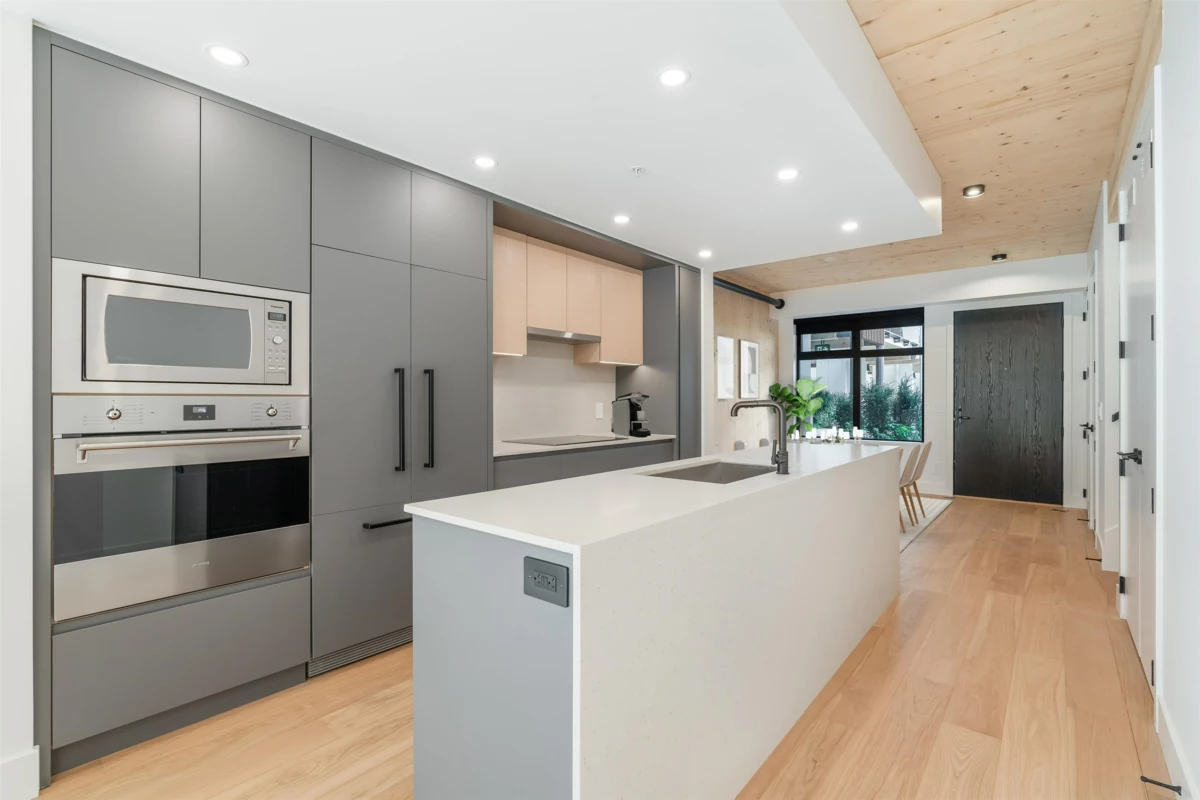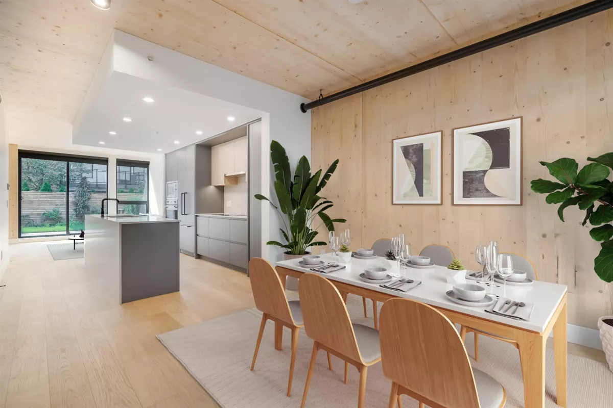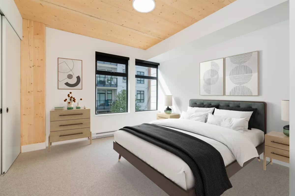 NEW PRICING & MOVE-IN READY! Designed for distinction, Timber House by Aragon is the final waterfront addition to Port Royal in New West. This 2-level, 2 bedroom, 2.5 bath, 1268 SF ground-level home offers 545+ SF of outdoor space & modern, high-design interiors with exposed CLT panels, wide-plank oak floors, A/C & more. Sleek kitchen w/ Fisher Paykel & Smeg appliances, quartz counters, matte black hardware, built-in pantry. Spa-inspired baths w/ heated floors, LED vanities, frameless glass showers. Amenities: Courtyard, gym, BBQ area & dog wash. 2 parking (EV opt), 1 locker. Steps to boardwalk, 12 min to DT New West, 35 min to DT Van. OPEN HOUSE EVERY SAT TO MON 1–4PM OR BY APPT.