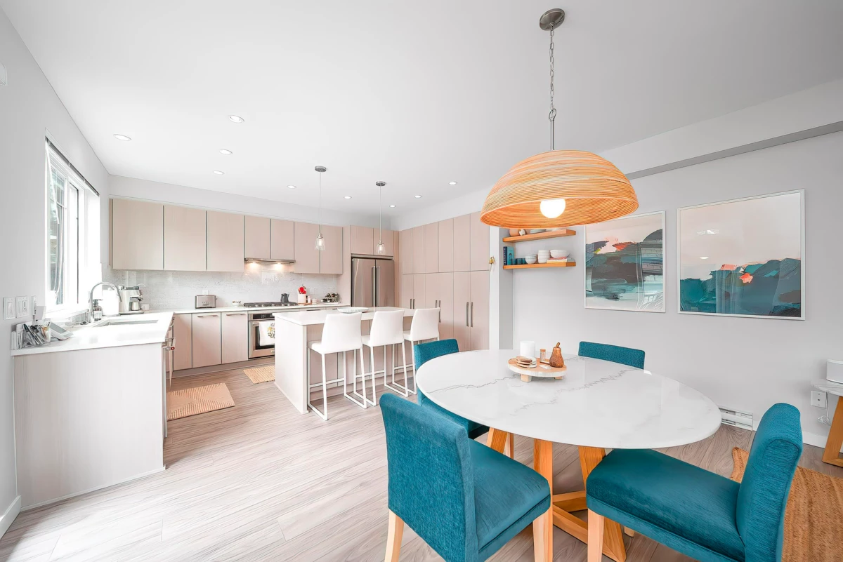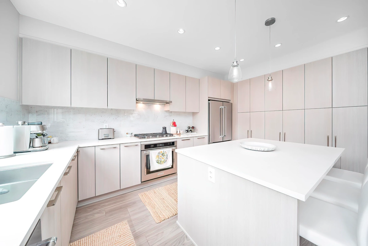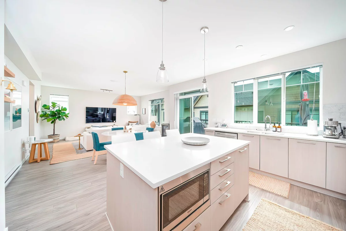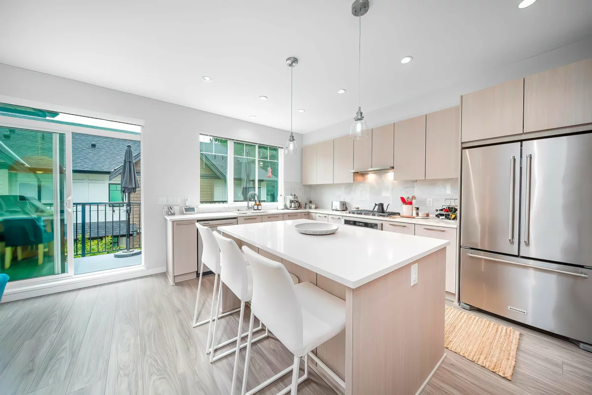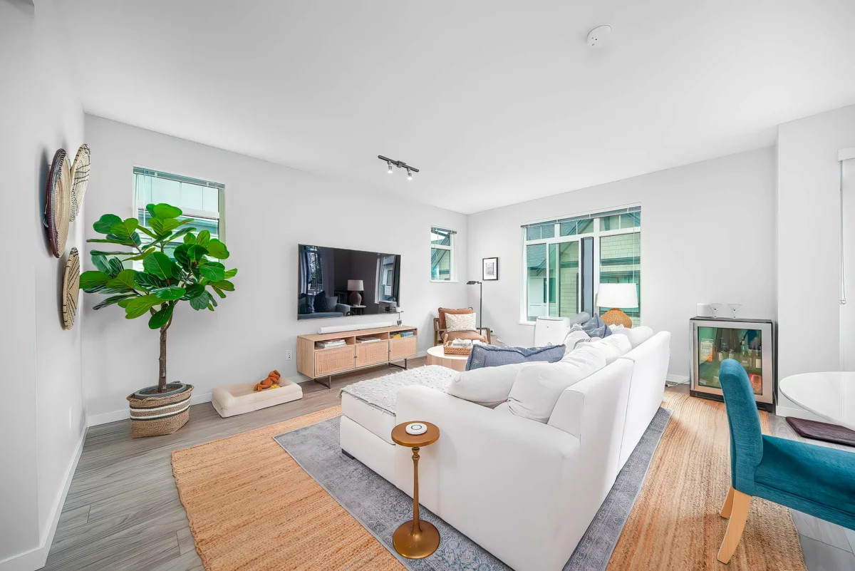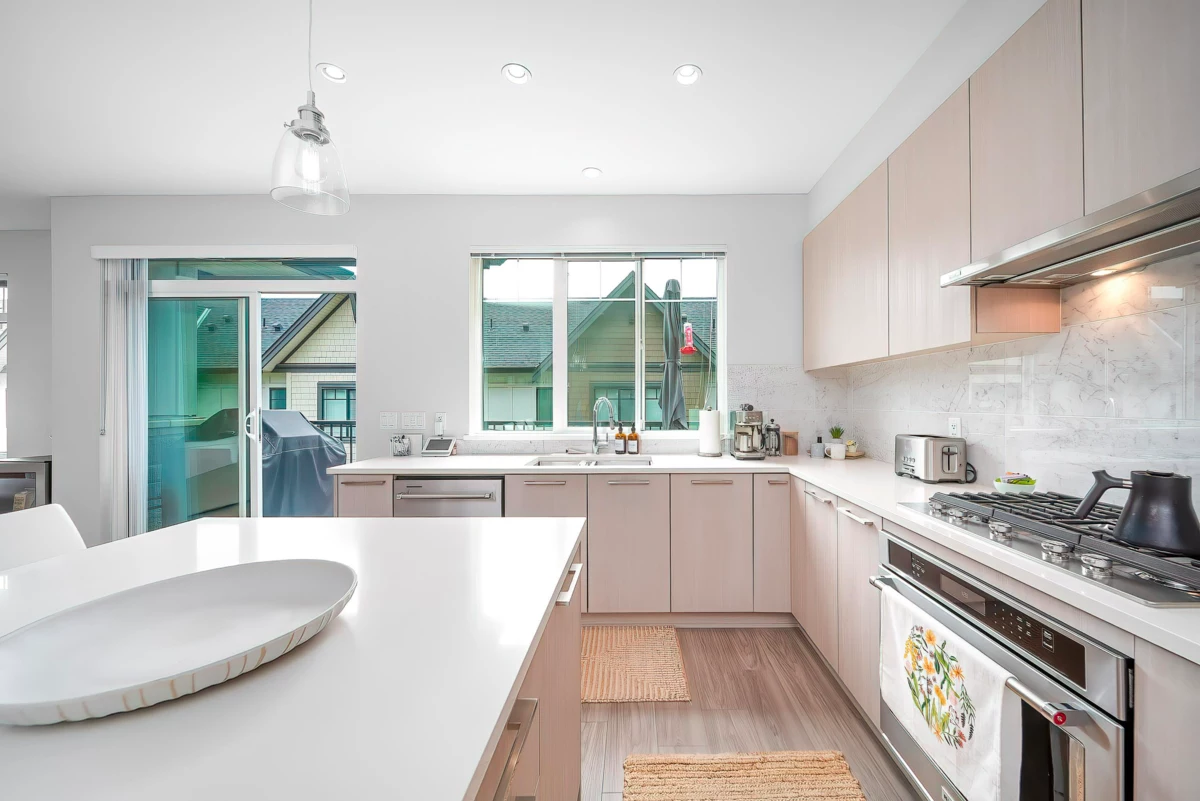 BALLANTREE by Polygon! This Bright & spacious Corner Unit townhome with 4 bedrooms and 3.5 bathrooms in sought-after Burke Mountain. Enjoy an open-concept main level with soaring ceilings, an oversized central island, stone countertops, custom cabinetry, and stainless steel appliances — perfect for entertaining and everyday living. Upstairs features 3 bedrooms including a primary with spa-inspired ensuite and walk-in closet. Lower level offers a large bedroom, full bath and huge family room with direct backyard access – perfect for guests or in-laws. Additional highlights include a side-by-side double garage with EV charger and the privacy of a corner location with extra natural light. Call today to book your private showing and make this exceptional home yours!