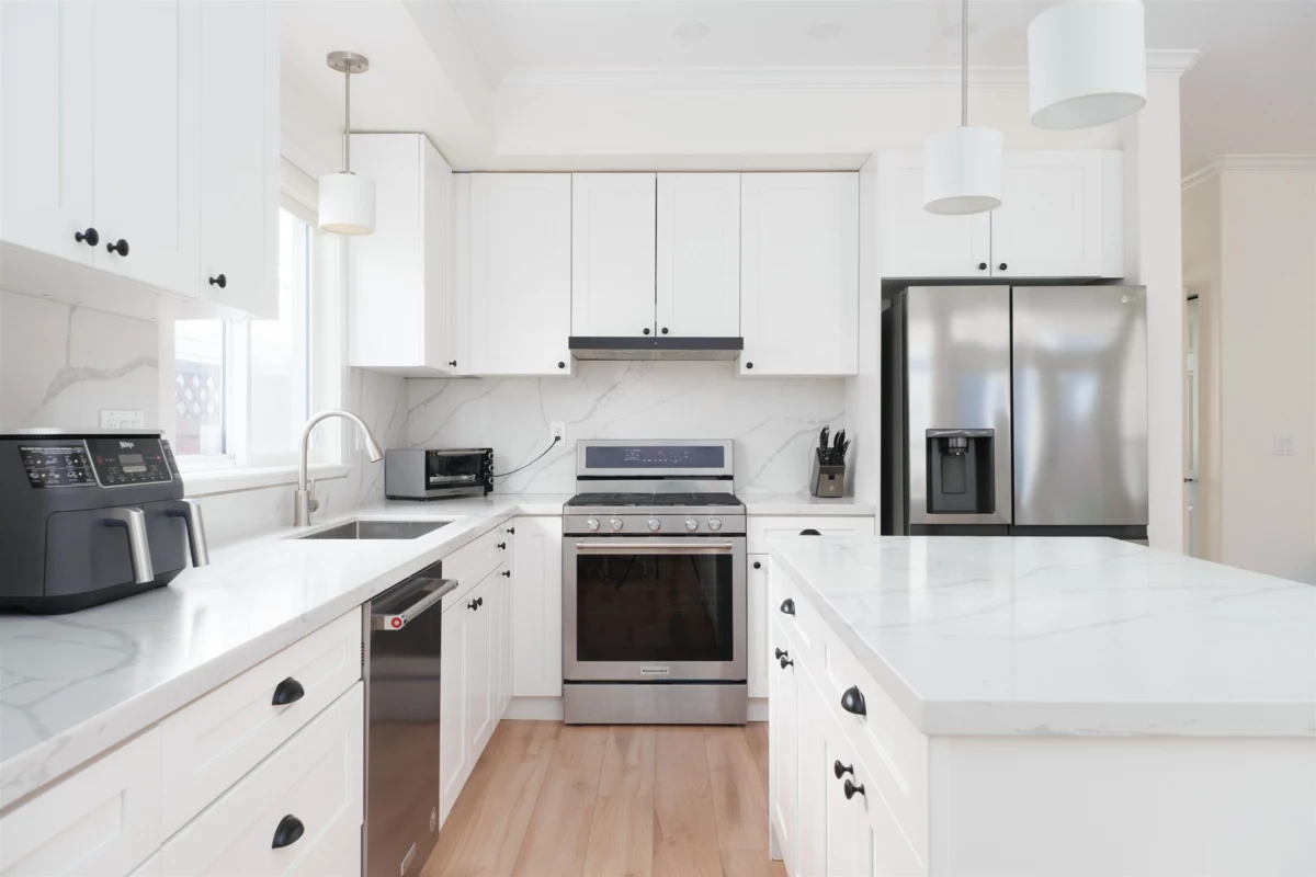 Rare find! Bright and clean 3-bedroom plus flex, 3 full bath home in the heart of historic Steveston Village. This 1,810 sq.ft. East-facing house has been extensively updated with new blinds, carpets, laminate flooring, fresh interior/exterior paint, and a renovated kitchen with quartz countertops, cabinets, backsplash, and new appliances. Other upgrades include a new heat pump for efficient heating and air conditioning, and a new front yard gate. Excellent floor plan with lane-access, side-by-side 2-car garage. Steps to Steveston Community Centre, Fisherman’s Wharf, Garry Point Park, Dyke trails, cafes, restaurants, shops, and transit. School catchments: Homma (French Immersion), Lord Byng, and McMath. A pleasure to show!