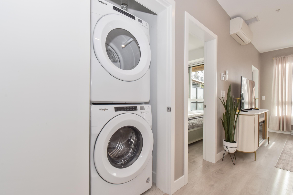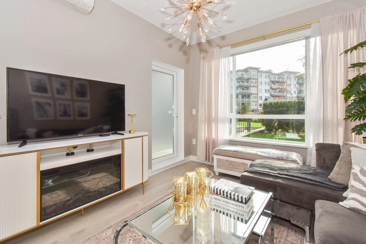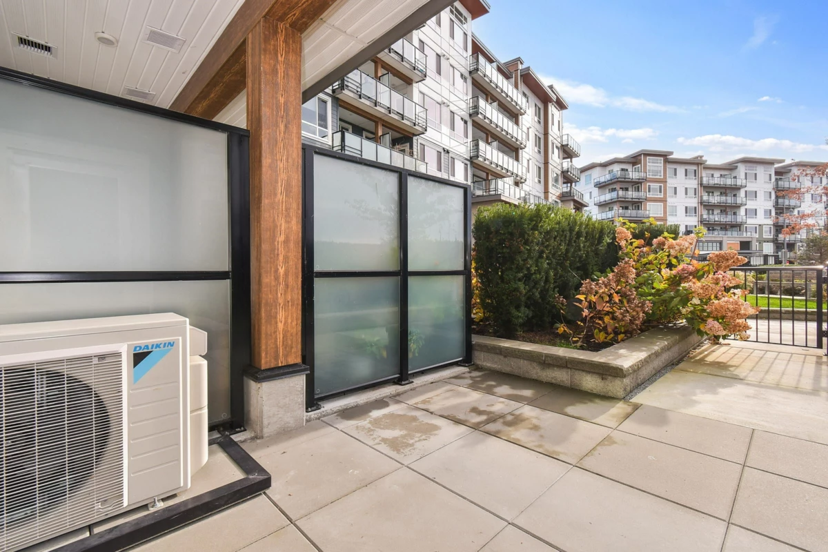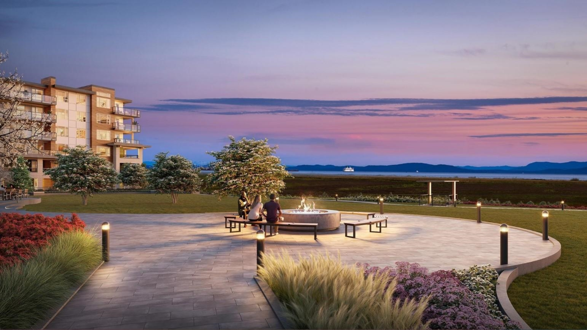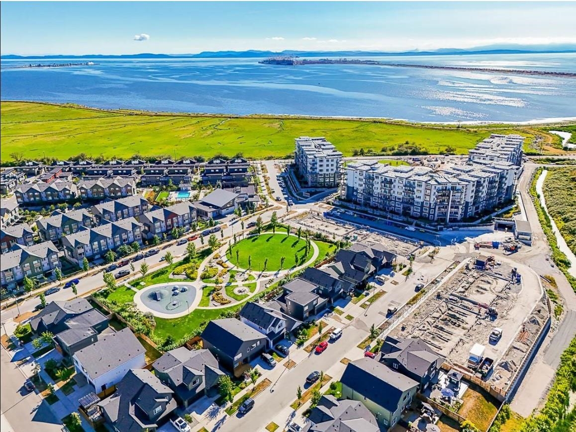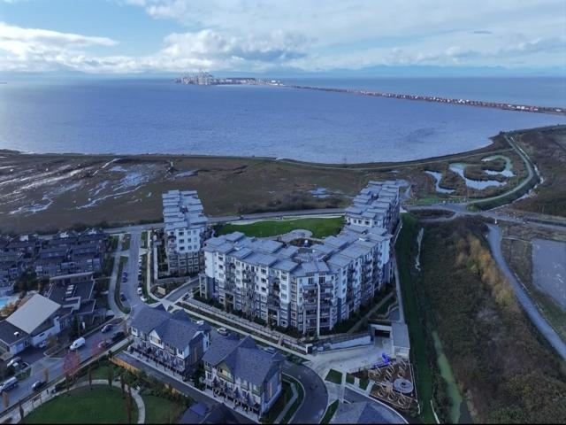 SOUTH FACING GROUND FLOOR UNIT AT SALT & MEADOW! Welcome to this stunning home on the spectacular shores of the Salish Sea. Offering a perfect blend of luxury & coastal living, this spacious 1 Bed + Den residence features a walk-in closet & stylish 4-piece bath. The bright open-concept layout showcases gorgeous laminate & tile flooring/quartz counters/SS appliances. Enjoy waterfront living at it's finest - morning jogs or sunset strolls along the miles of scenic beach trails & the new seaside boardwalk in the vibrant master-planned community. Relax or entertain on your Large S-facing patio, ideal for morning coffee or evening unwinding. Residents enjoy exclusive access to the resort style "Beach House" amenities, including an outdoor pool/hottub/gym/yoga/kid zone.1 Parking & Storage Unit.