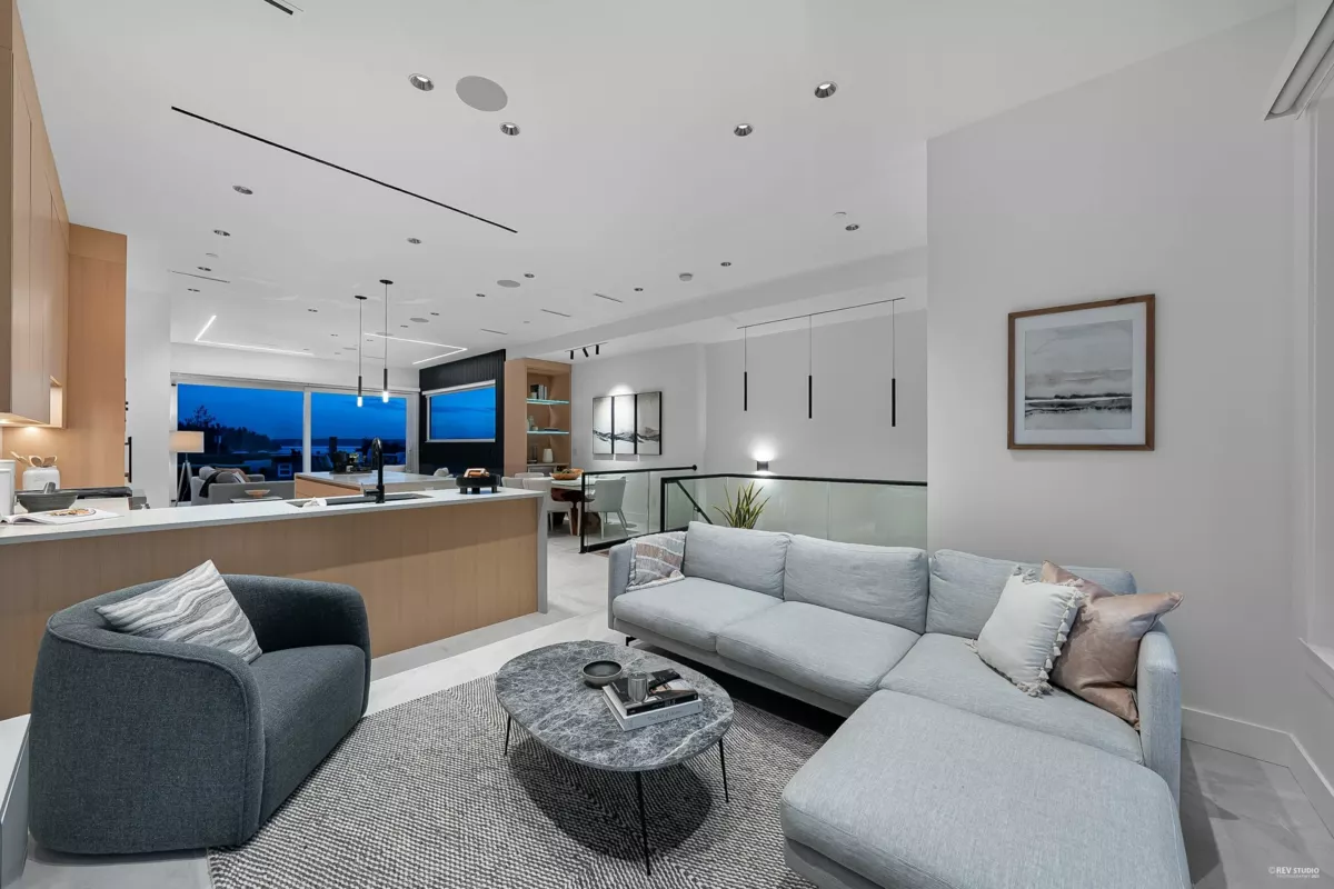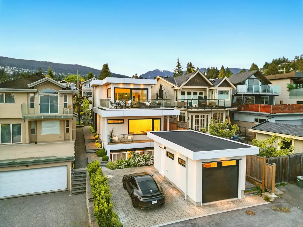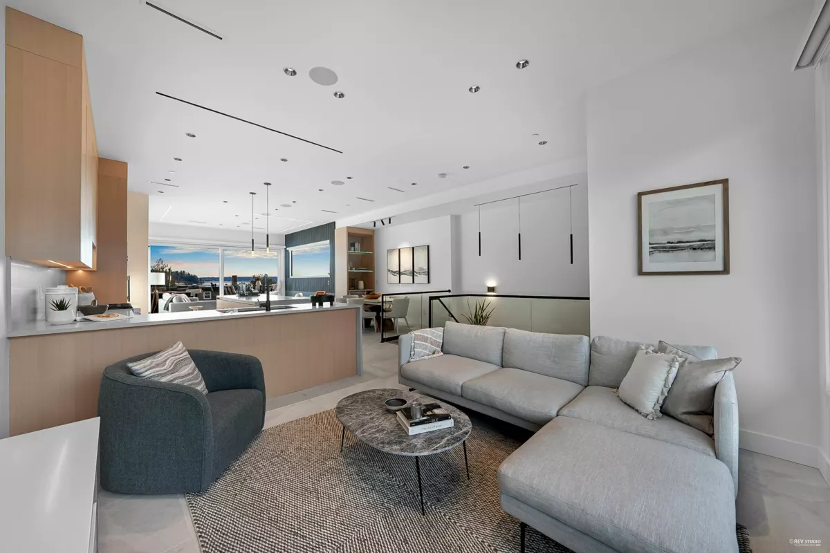 Ultimate contemporary ocean-view home in Ambleside Beach, near top schools & all amenities. This custom 3059 sf, 5-bed, 3-level residence offers outstanding quality, exquisite luxury finishes, & stunning views from a large entertainment balcony. The reverse floor plan features open-concept living/dining w/ seamless indoor-outdoor flow. Highlights include A/C, Euroline windows, electric blinds, security system, & a striking floating glass + steel staircase. The elegant primary suite boasts a private deck & spa-like ensuite. Includes a 2-bed legal basement suite, 1-car garage, carport parking, back lane access, new asphalt street, sleek stucco/Trespa exterior, & professionally landscaped, low-maintenance grounds. Tailored for families or various lifestyles. A rare blend of style & function!