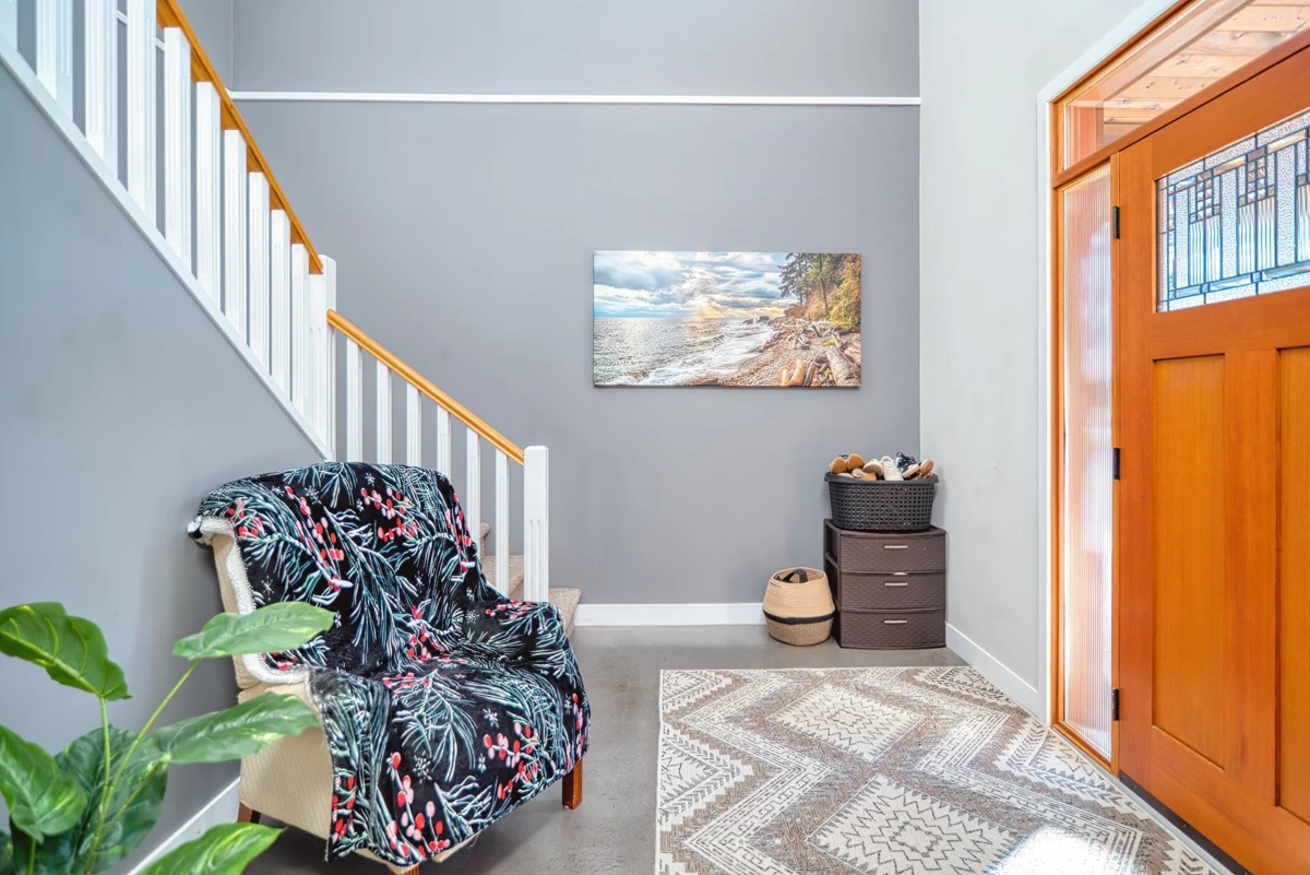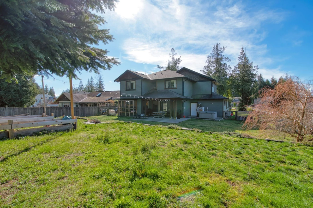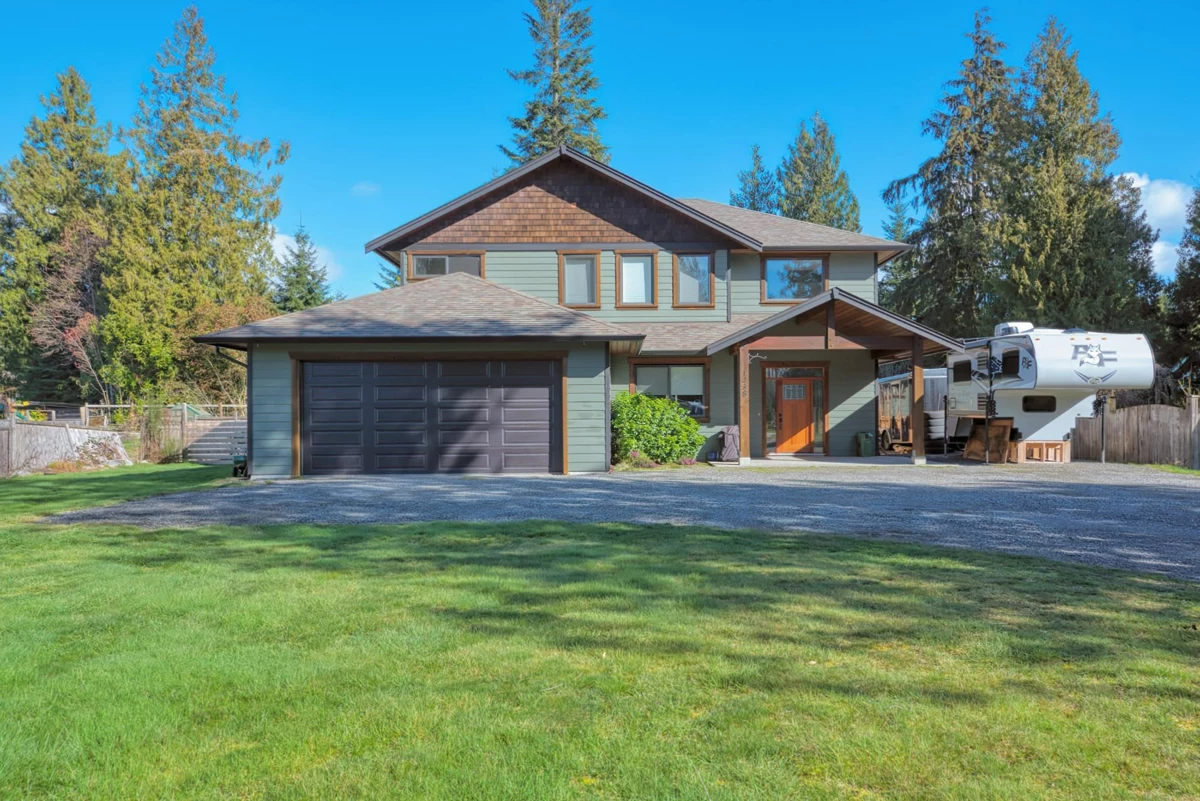 This fabulous family home is located in the heart of Gibsons on a quiet, no-through road in a sought-after area, offering a safe, family-friendly setting on a level, landscaped lot—perfect for kids and pets! Step inside to a spacious 24-ft vaulted foyer, leading to an open-concept living room and kitchen with 9-ft ceilings and a large covered deck for year-round enjoyment. A bonus room, custom mudroom, and half-bath complete the main floor. Upstairs, you'll find three air-conditioned bedrooms and a convenient laundry room. The primary bedroom boasts a walk-in closet and a spa-like bath. The oversized garage offers ample storage for all your toys. Zoning allows for a workshop or auxiliary dwelling—a rare opportunity in an unbeatable location just blocks from the beach!