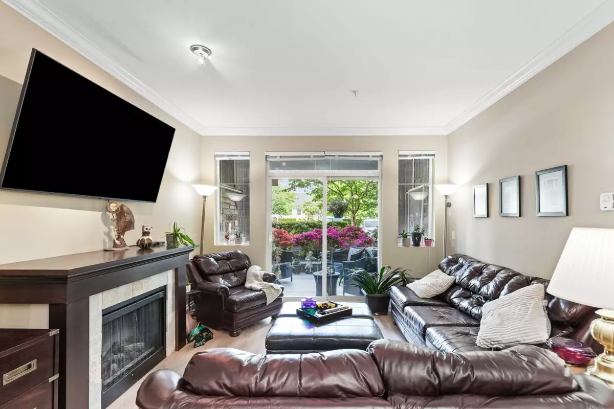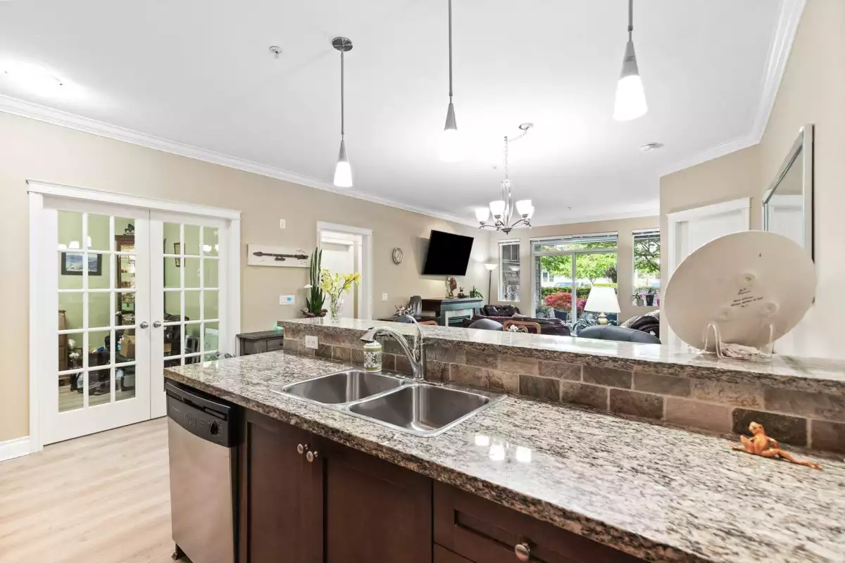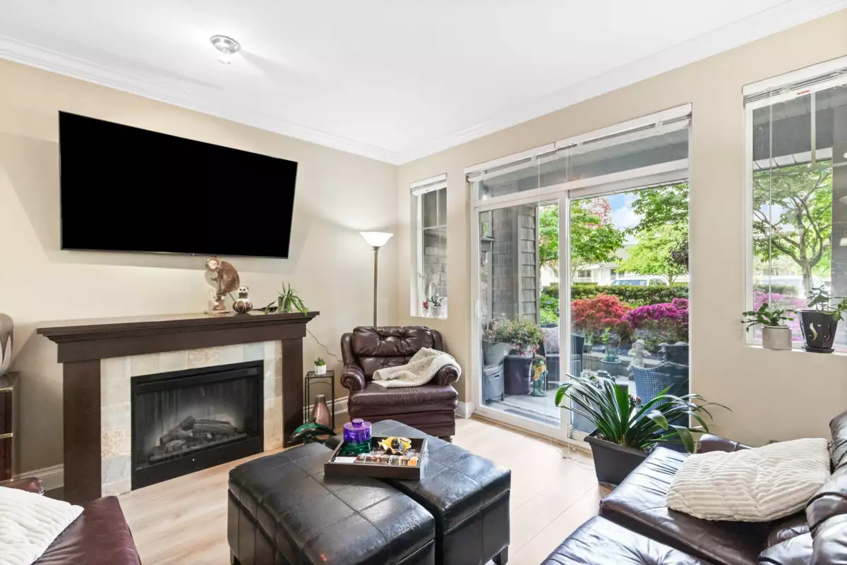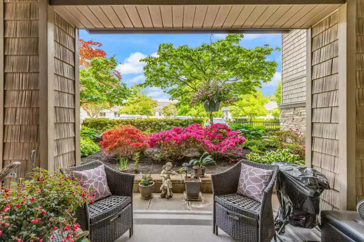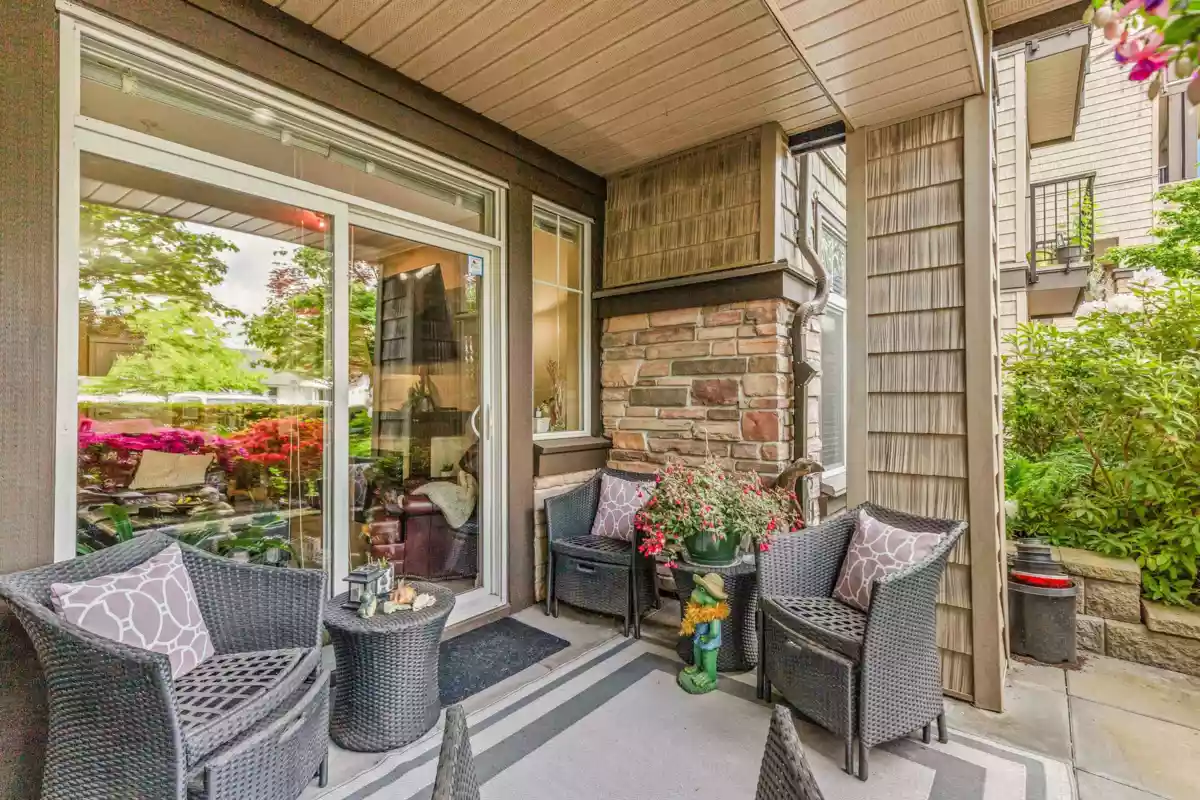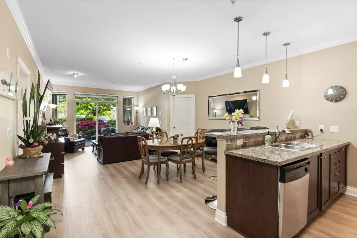 Your chance to own in the highly desired STONEGATE complex! This beautiful ground-floor unit offers a bright, open-concept layout with 2 spacious bedrooms, 2 full bathrooms & a den, perfect for home office or guest space. The kitchen features SS appliances, maple cabinetry, granite countertops & dedicated laundry room with extra storage/pantry space. The large dining area is ideal for entertaining. Relax in the cozy living room with an electric fireplace & walk out to the covered patio to enjoy the beautiful lush landscaping. Features engineered hardwood floors, a generous primary bedroom suite including a deluxe ensuite with a separate shower and soaker tub, as well as a spacious walk-in closet. Bedrooms on opposite sides for privacy. Walking distance to shopping, transit & schools.