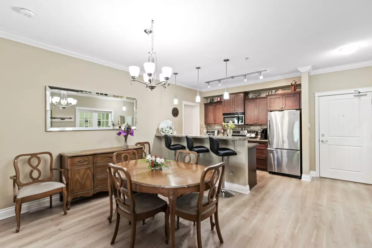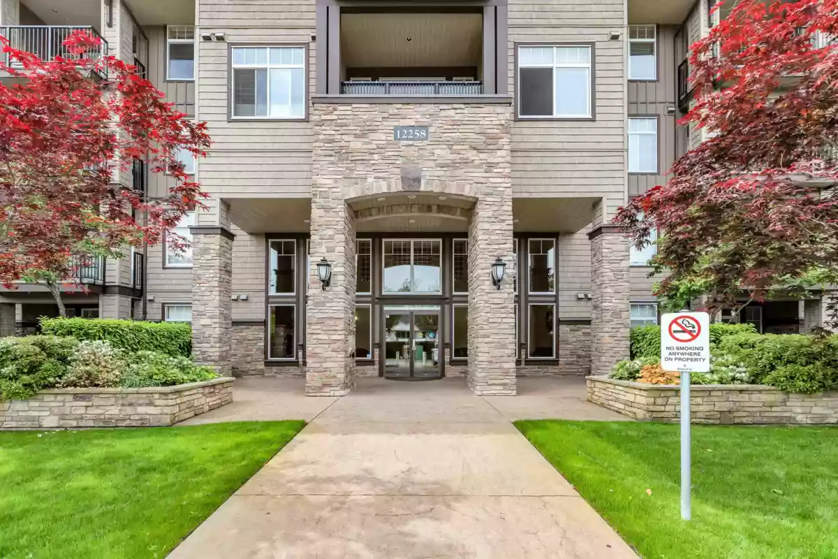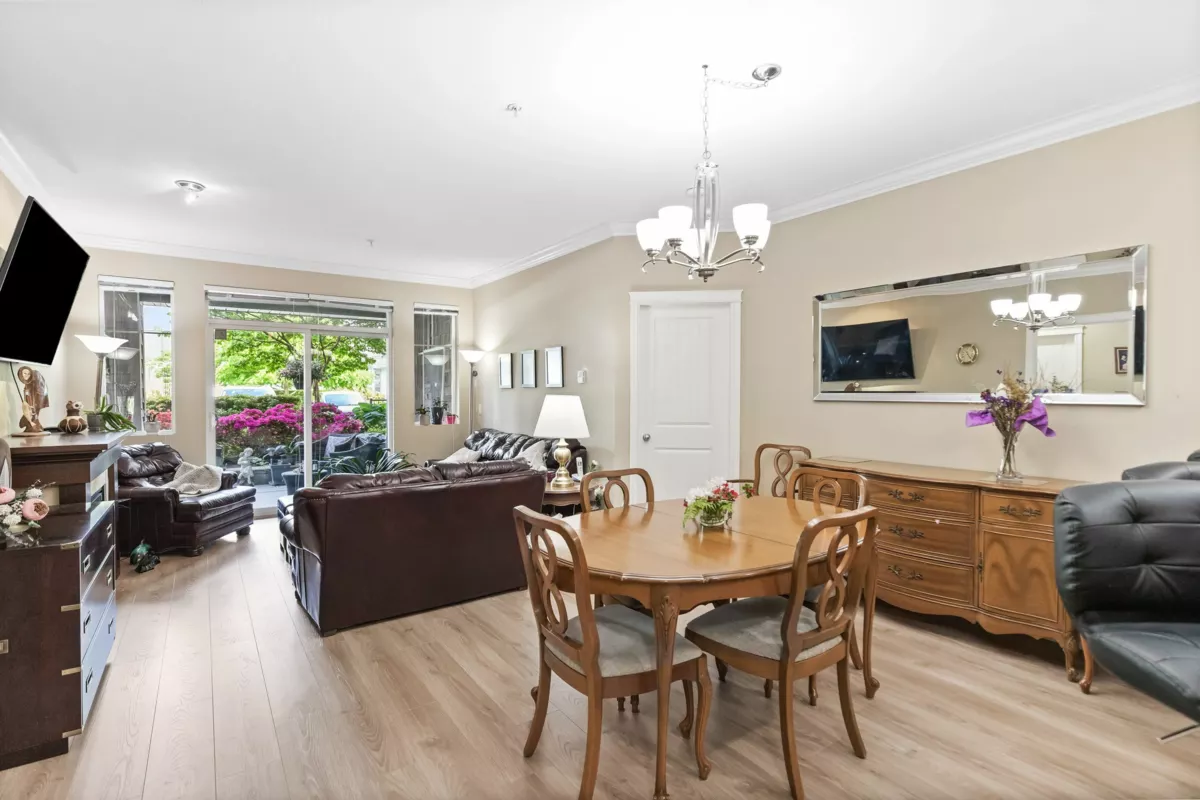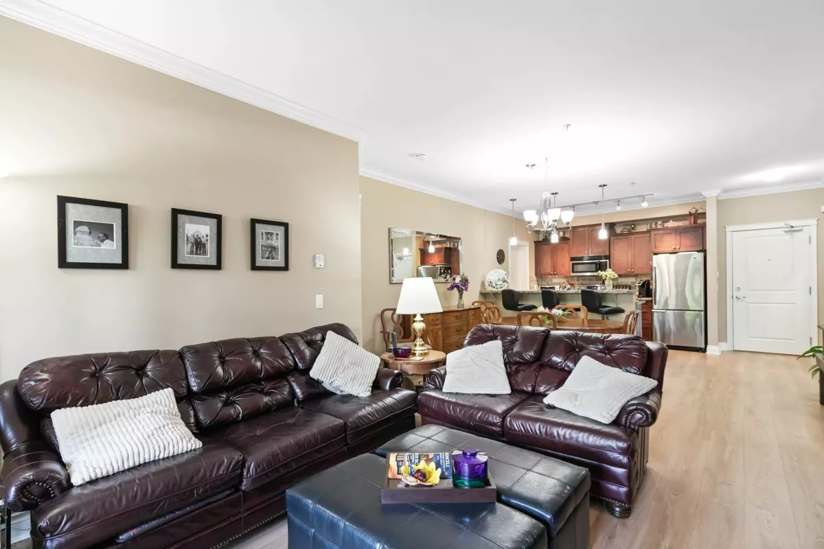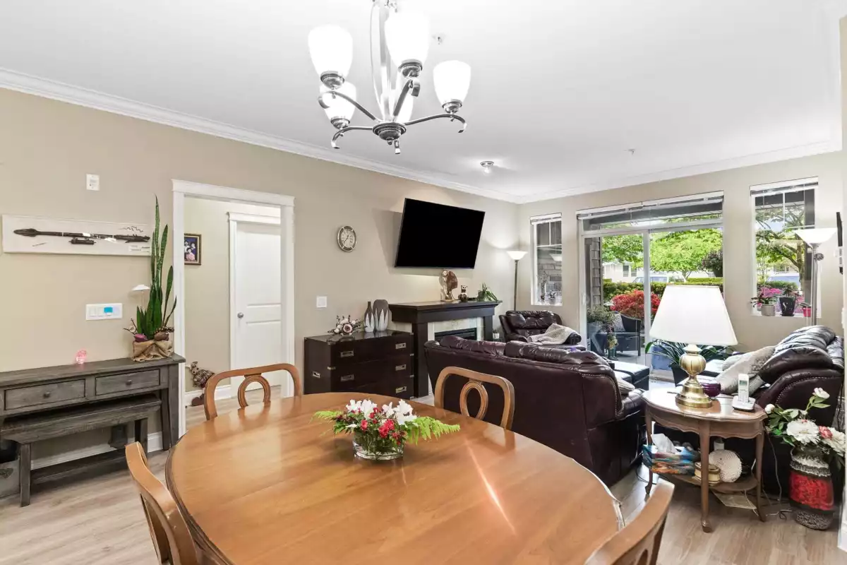 Your chance to own in the highly desired STONEGATE complex! This beautiful ground-floor unit offers a bright, open-concept layout with 2 spacious bedrooms, 2 full bathrooms & a den, perfect for home office or guest space. The kitchen features SS appliances, maple cabinetry, granite countertops & dedicated laundry room with extra storage/pantry space. The large dining area is ideal for entertaining. Relax in the cozy living room with an electric fireplace & walk out to the covered patio to enjoy the beautiful lush landscaping. Features engineered hardwood floors, a generous primary bedroom suite including a deluxe ensuite with a separate shower and soaker tub, as well as a spacious walk-in closet. Bedrooms on opposite sides for privacy. Walking distance to shopping, transit & schools.