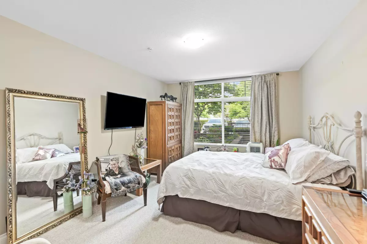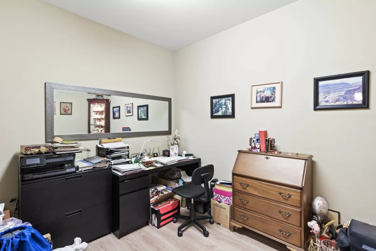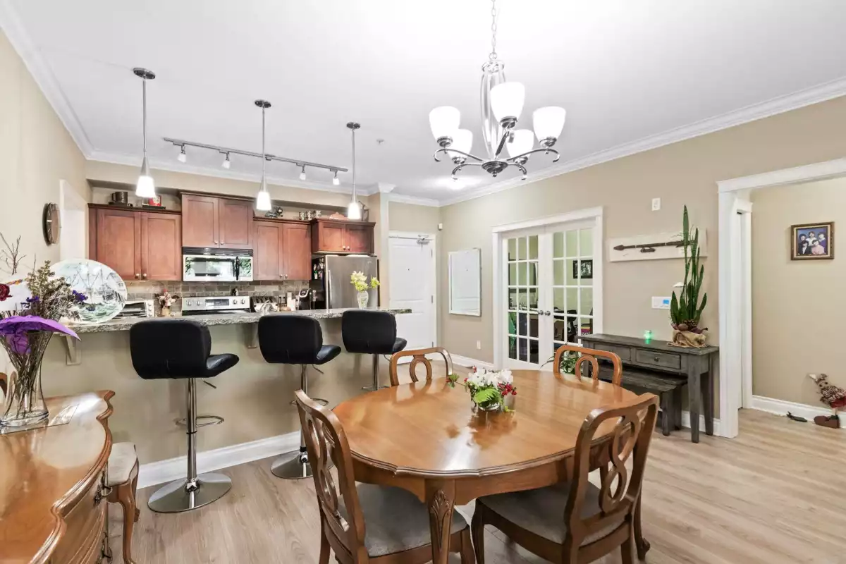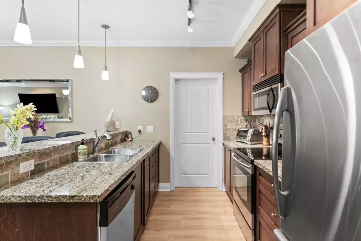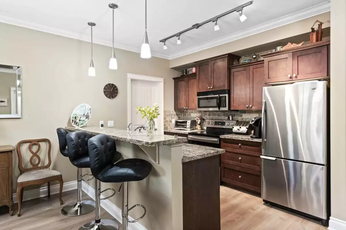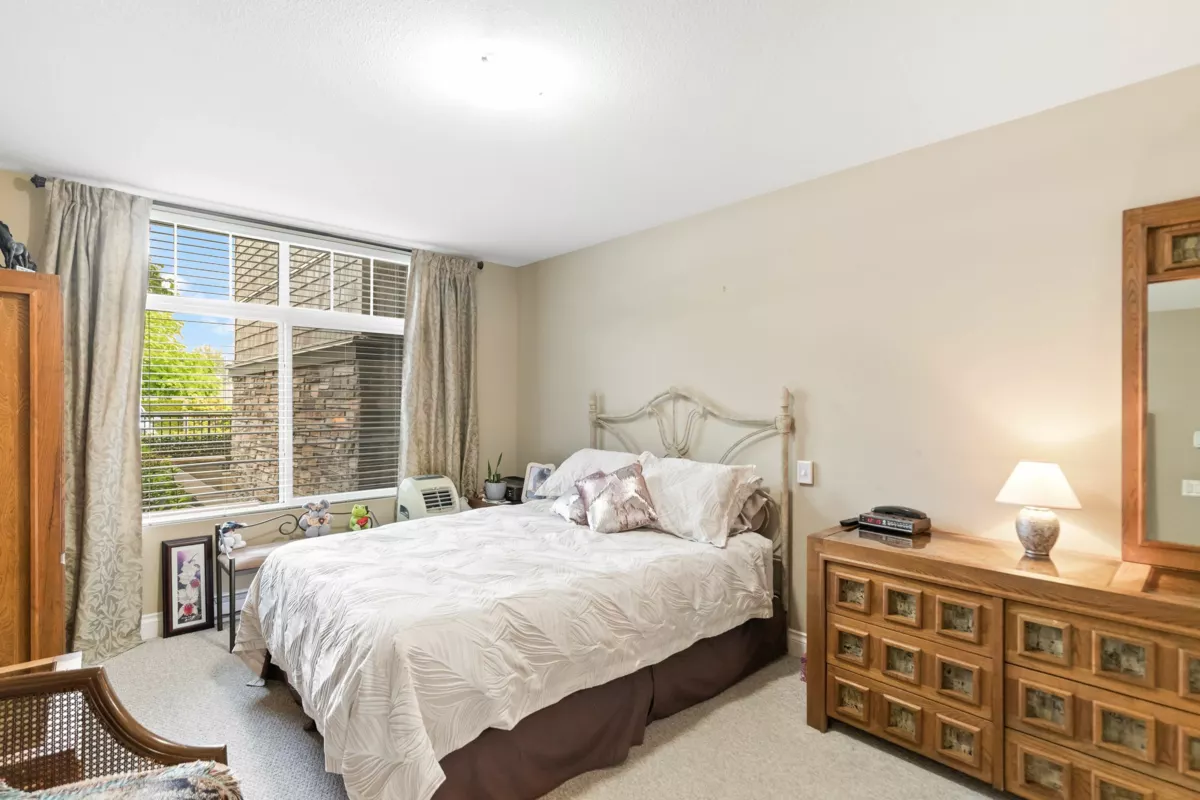 Your chance to own in the highly desired STONEGATE complex! This beautiful ground-floor unit offers a bright, open-concept layout with 2 spacious bedrooms, 2 full bathrooms & a den, perfect for home office or guest space. The kitchen features SS appliances, maple cabinetry, granite countertops & dedicated laundry room with extra storage/pantry space. The large dining area is ideal for entertaining. Relax in the cozy living room with an electric fireplace & walk out to the covered patio to enjoy the beautiful lush landscaping. Features engineered hardwood floors, a generous primary bedroom suite including a deluxe ensuite with a separate shower and soaker tub, as well as a spacious walk-in closet. Bedrooms on opposite sides for privacy. Walking distance to shopping, transit & schools.
