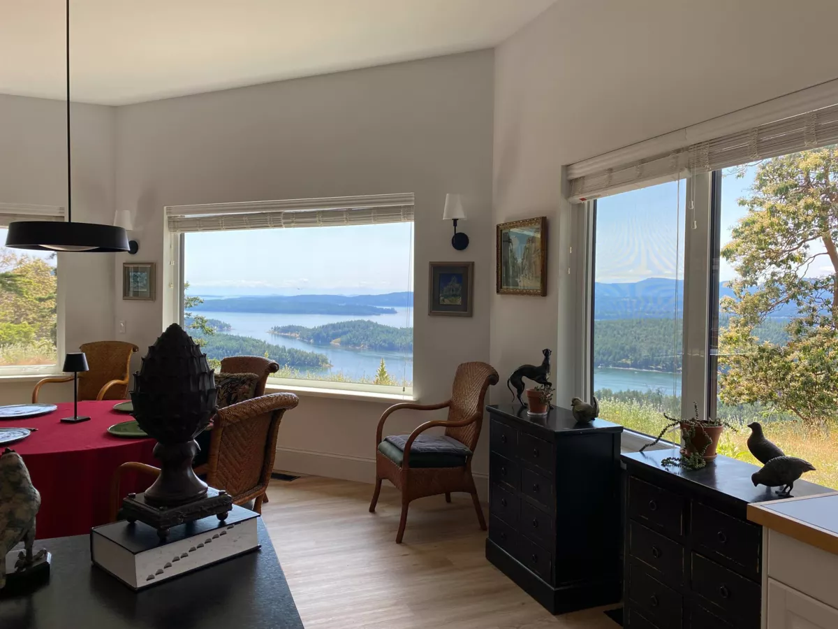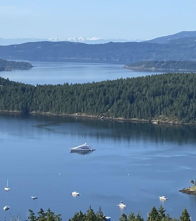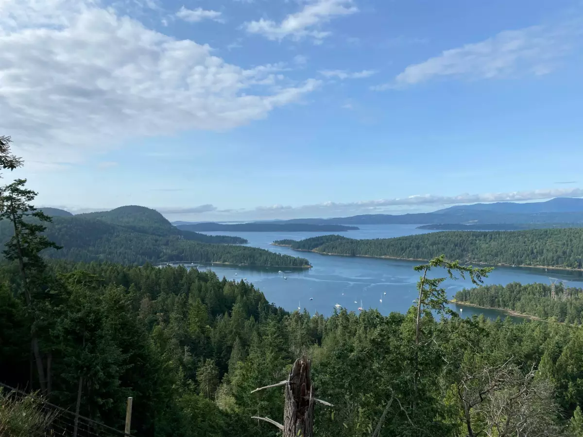 Unmatched views in the Gulf Islands. Perched 180m above sea level, this sun-soaked Montague Heights home overlooks Montague Harbour, the Southern Gulf Islands, and the Olympic Peninsula. Share #1 in Montague Heights Properties Ltd—and the last on the street for ultimate privacy. Home by Pacific Homes (2018), this approx. 6,400 sq. ft home features 3,000 sq. ft finished main floor with 2 beds, 2 baths. Unfinished lower level offers suite & good revenue potential. New well (2024) 6 GPM and new septic (2025). Deer-fenced yard with chicken coop, garden shed, raised beds, pear and apple trees. Your own 2.78 acres is just steps to Montague Park and 350 acres of Heritage forest.