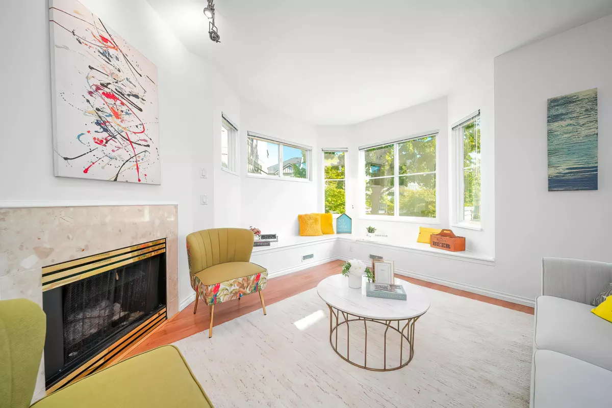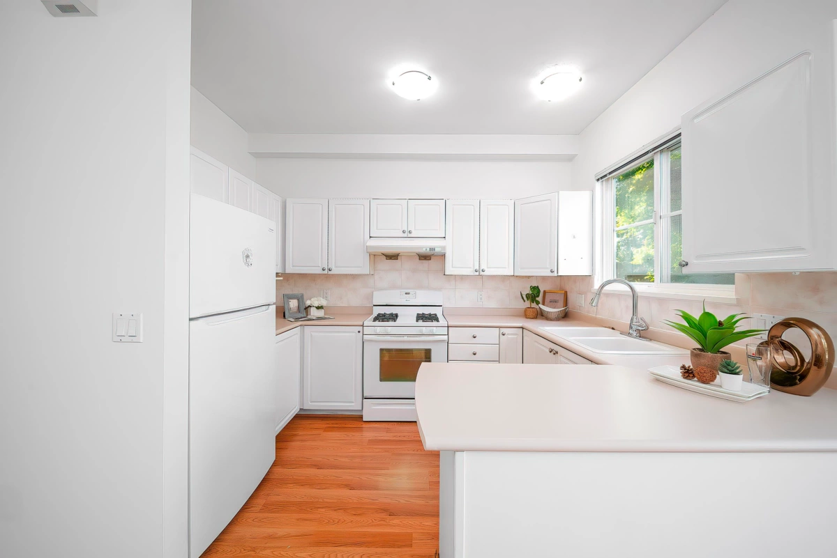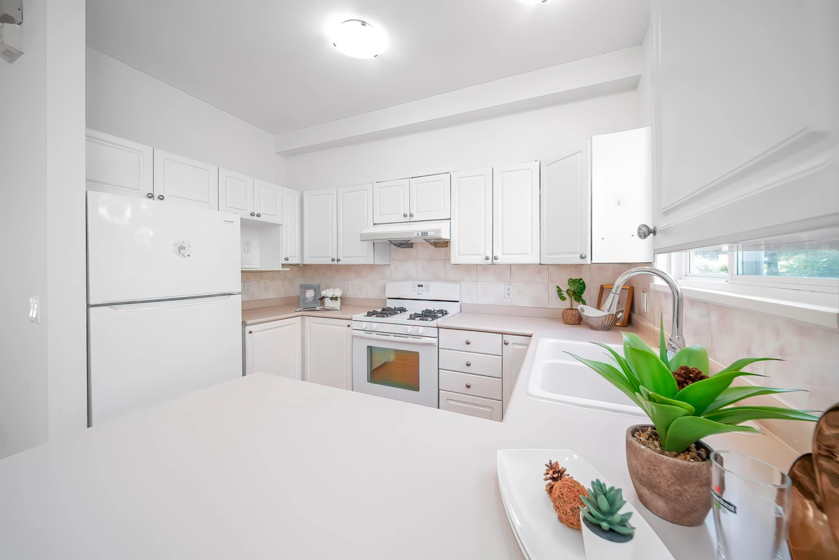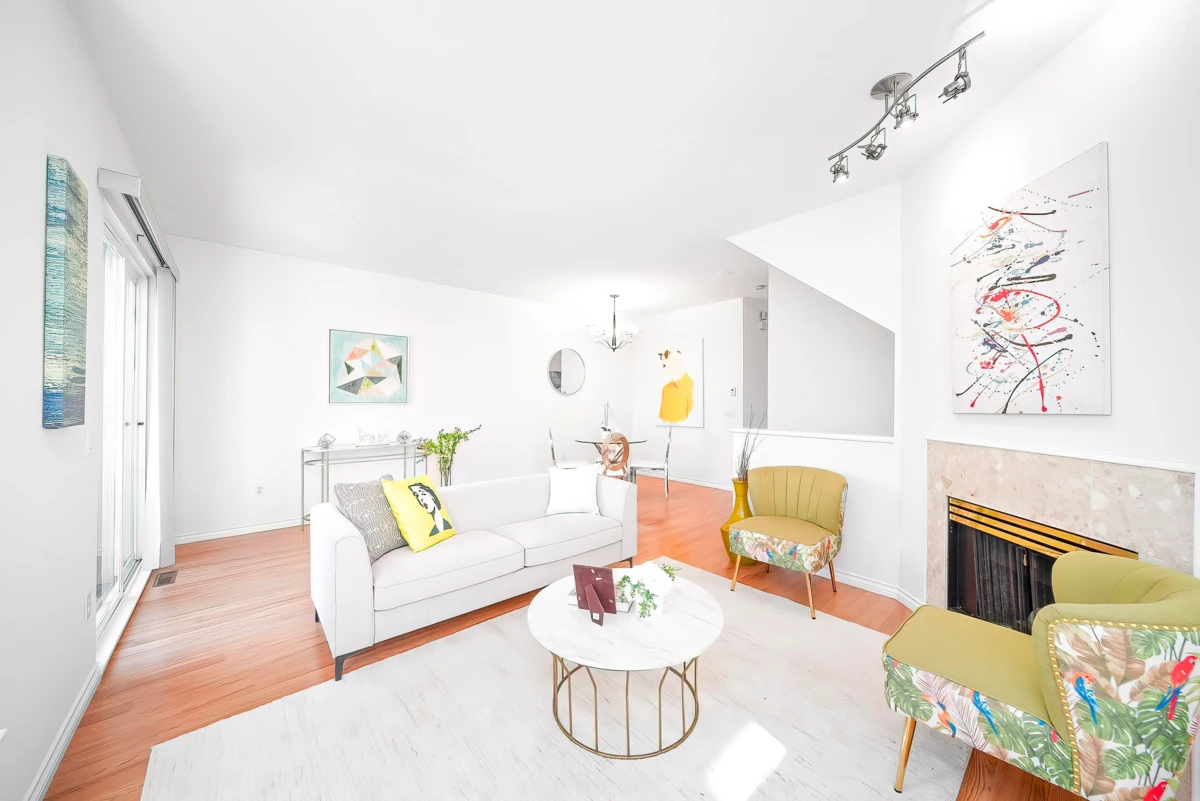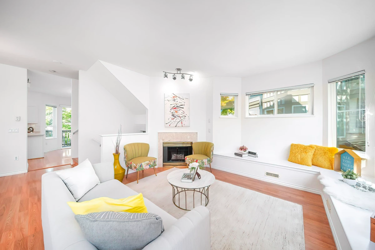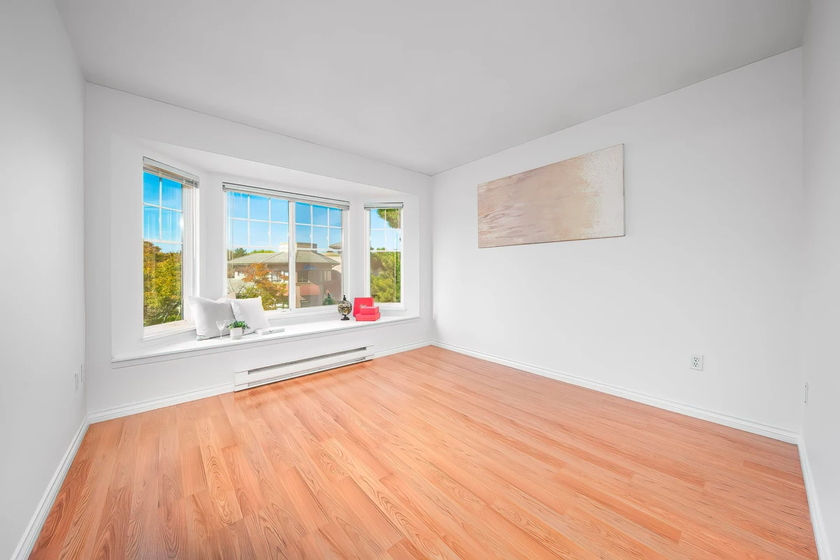 Mayflower built by Polygon, south facing corner unit, located in Terra Nova, which offers 4 bedrooms with 3 full bathrooms, 3 levels of total 1619 sqft, 9' high ceiling. Cozy south facing living room with gas fireplace features a sunny balcony and beautiful Cherry blossoms view in spring. Bright kitchen with windows provides a spacious dinning area. Walking distance to school, shopping mall and public transit. Great facilitites wih outdoor pool, excercise center and media room.YOU MUST SEE !!!