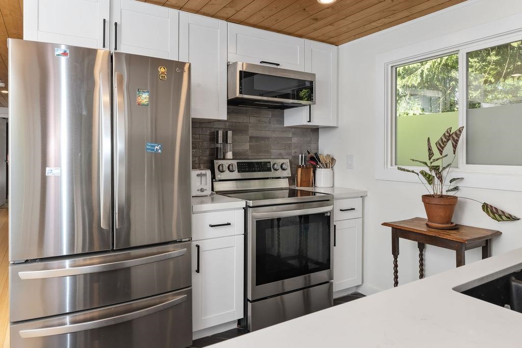 Private, Renovated, and Centrally Located! Tucked away among the trees, this beautifully updated 2 bdrm, 1 bath single-wide mobile home offers peace, privacy, and charm, all just minutes from the ferry and everything you need. Featuring a smart, functional layout and a cozy wood-burning fireplace, this home has been thoughtfully renovated with numerous upgrades, including a heat pump, modern kitchen, stylish bathroom, updated flooring, new windows, fresh fencing, and more. You'll love the multiple outdoor living areas, perfect for relaxing or entertaining. Bonus features include plenty of storage space and ample parking. Truly move-in ready, just unpack and enjoy!