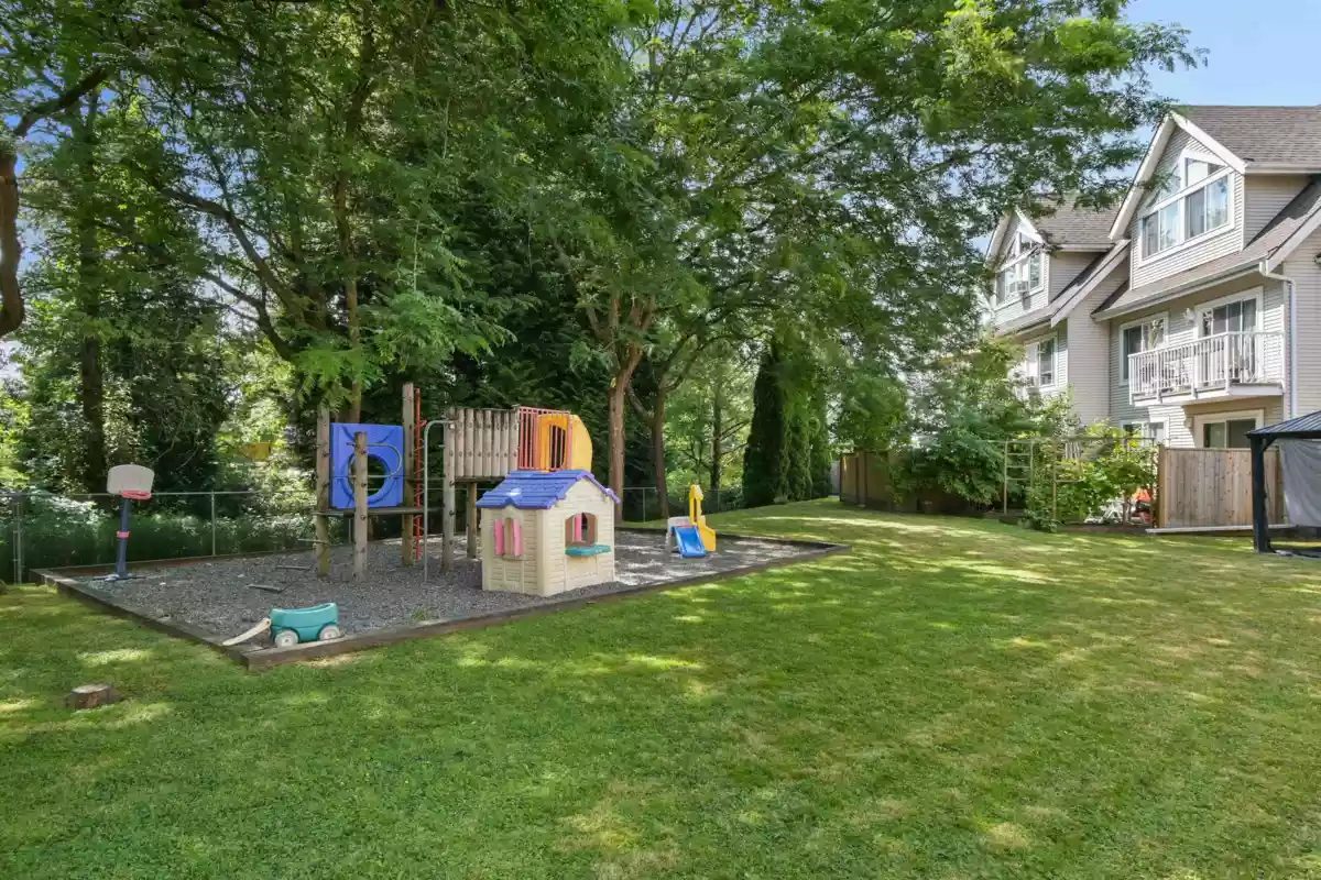 Cranbrook Court townhouse available in the catchment area of Langley Meadows Elementary and central to all things Langley - Home Depot, Willowbrook Mall, buses, the infamous Meadows Edge Park, where winter tobagganing happens. Three usable levels in this home. Only 17 units makes for a friendly community. These owners have put solid walnut flooring in the primary, new tile and eng'd flooring in foyer and lower bedroom, updated H/W 2021/LG w/d 2023/Fridge&stove 2024. Freshly painted main floor. There's a heat pump for comfort, and new fencing in the backyard w easy access to the playground. Cranbrook Court owns the greenspace behind the complex. Private showings - no open houses. Have your agent make an appointment to view. These don't come up for sale very often. Get in while you can!
