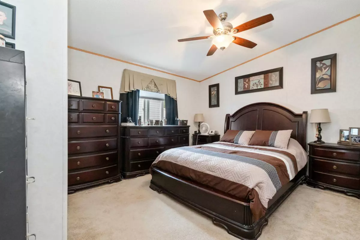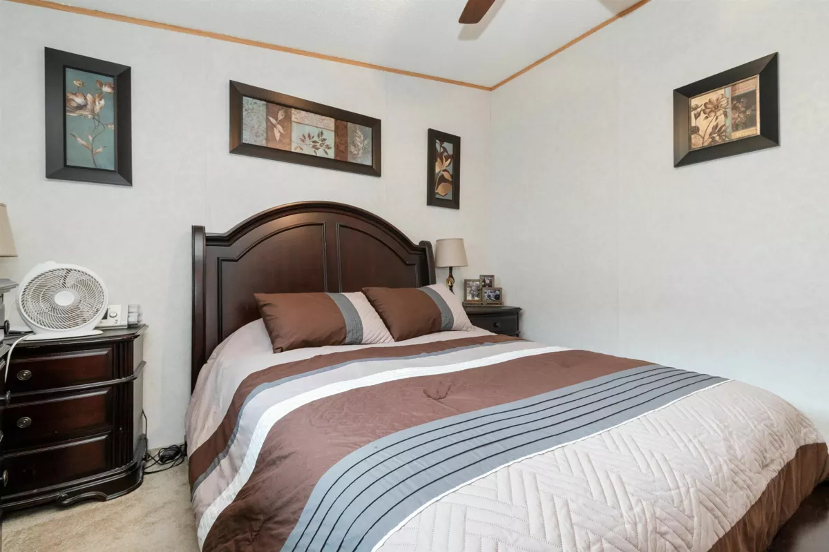 This beautifully updated double-wide manufactured home offers flexibility and comfort with the option to easily convert a space into a third bedroom. Featuring 2 spacious bedrooms and a well-appointed bathroom, it’s perfect for anyone seeking a low-maintenance lifestyle in a friendly, vibrant 45+ community. The open-concept living area is bright and airy, providing plenty of room to entertain or simply relax. Recent upgrades include A/C, ensuring year-round comfort. Step outside to a private yard with 2 garden sheds for extra storage. The large parking pad offers plenty of space for multiple vehicles, making it ideal for guests or extra storage. Pet lovers will appreciate that small dogs are welcome. Located centrally, you’re just minutes away from shopping, dining, and local amenities.