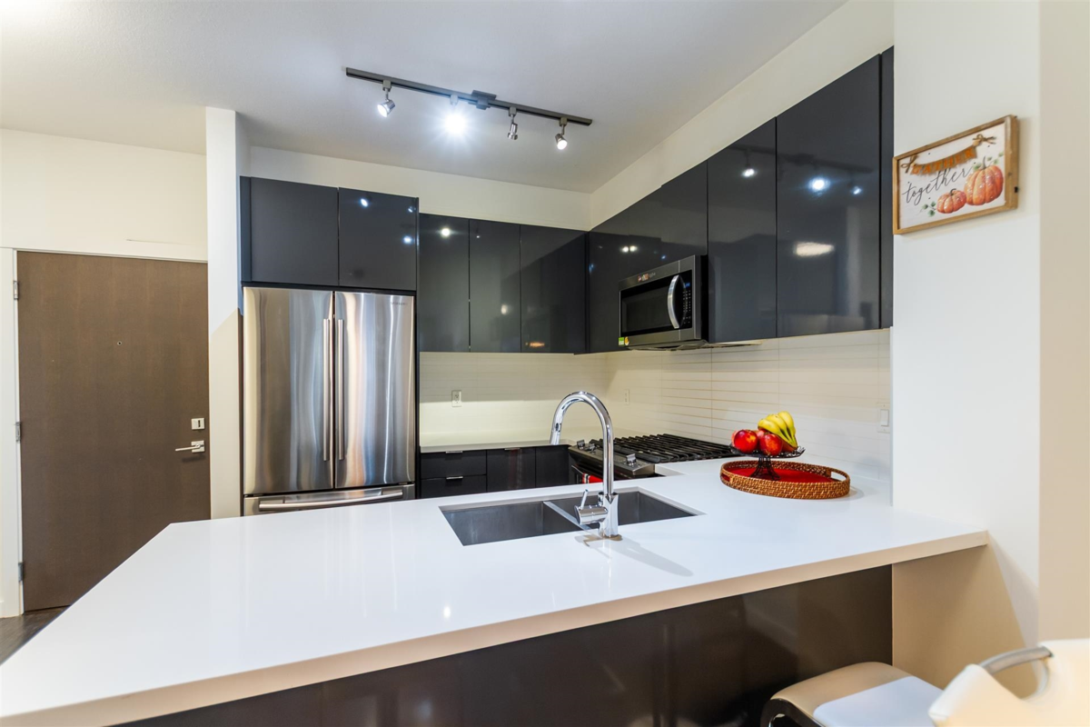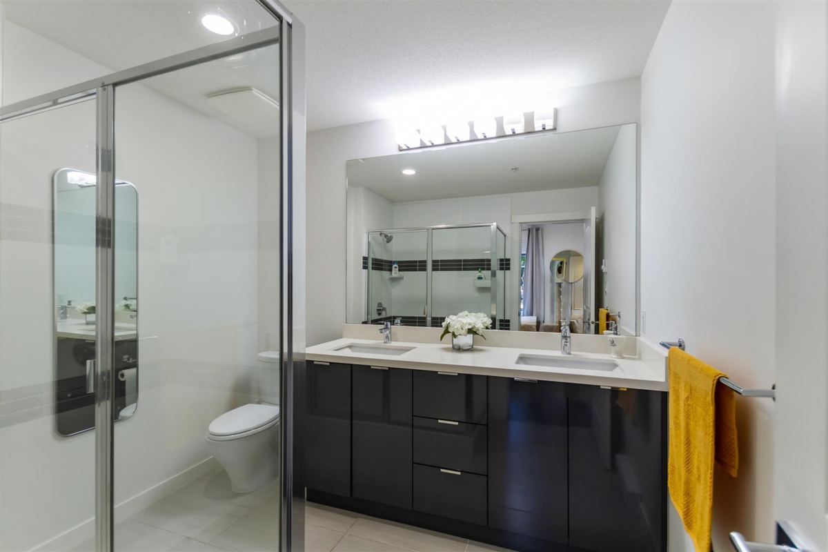 PRIVATE PATIO AND FENCED YARD! Welcome to Elgin House at Harvard Gardens! This 2 bedroom, 2 bath home is ground floor with its own South West exposure for lots of light. Built ins included in the Livingroom for extra storage. Laminate throughout for easy cleaning. SS appliances, gas/electric stove, built in microwave. CUSTOM fitted closets. Over height ceilings. Lighting updated. TWO PARKING and TWO STORAGE! Loads of secure visitor parking.This lovely community includes access to the Rowing Club with an outdoor pool, hot tub, large gym, meeting room with bar and BBQ, games room, basketball court, movie room PLUS two guest SUITES. Allowed two pets DOGS or CATS. Loads of greenspace and walking trails for pet owners, plus a dog wash station. Excellent access to Hwy 99 and transit.