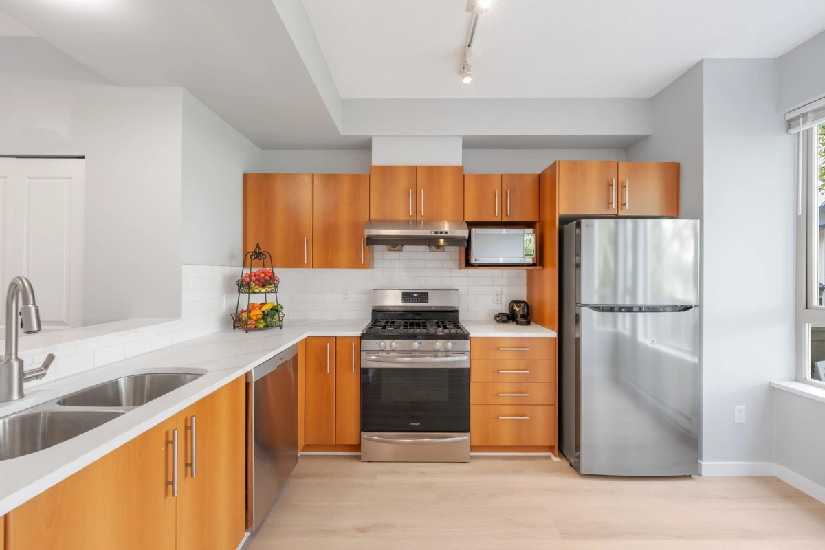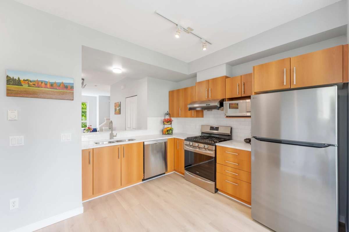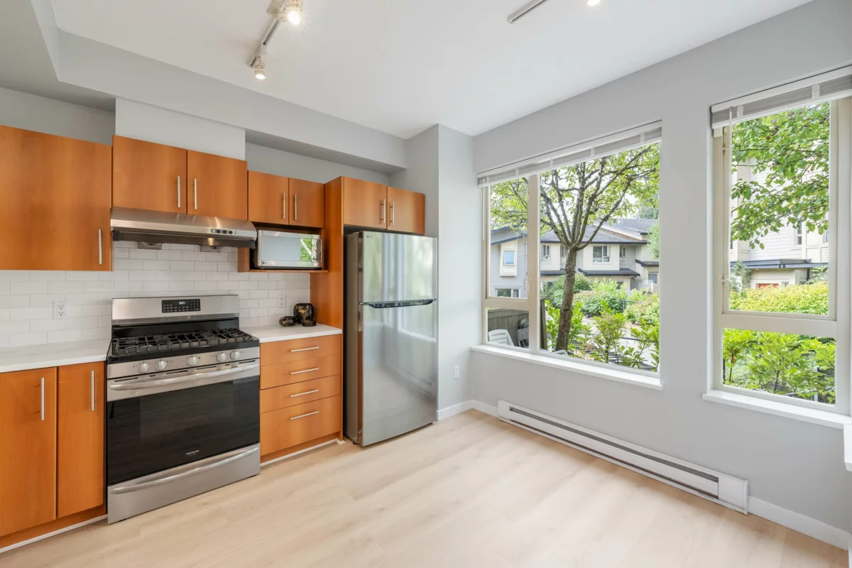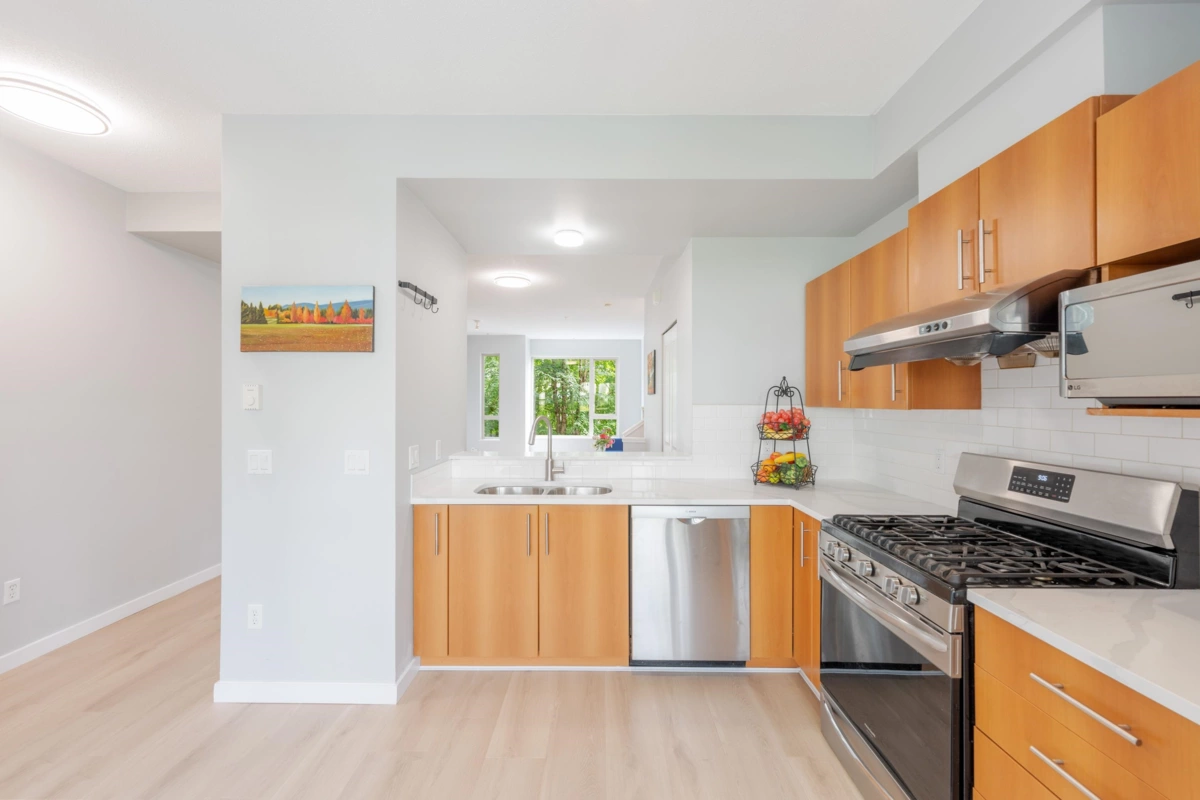 This newly renovated seldom available 2 bedroom, 2 bathroom beautiful town-home is located in Polygon's stylish SERENITY complex located atop Burnaby Mountain in the University Community. The 1160 SF unit offers an open and functional layout while allowing natural light from multiple sides. Some of the many features include 9 ft ceiling on the main floor, stainless steel appliances, gas stove, granite countertops, cozy eating area off the kitchen, spacious oversized master bedroom with nice en-suite Bathroom! Private yard is perfect for summer BBQ. Within walking distance to transit, shops & amenities of the local High Street, Elementary School, trails & recreation, you will definitely want to be a part of this vibrant community. Open House Saturday on Nov 29 from 2-4 pm