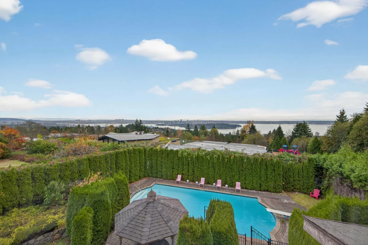 PRIME CHARTWELL location. Bright, spacious, 3 Levels, walk-out basement to the pool. Views ! Awesome city, harbour & ocean view. 7 Bdrm + Office. family room off kitchen, Double Stairs to 4 bedrooms and 3 bathrooms upstairs. Lower level has 3 bed with new carpet and 2 new bath rooms in-law suite. Renovated two kitchens include new painting, doors, window coverings, counter top, appliances, cabinet and upstar hardwood flooring. Spent 150k for replacing drainage pipe. 10 years old roof. For hold to build your dream home. Steps to Chartwell & Sentinel school, bus, Hollyburn Country Club. Open house: Sun, Nov/30th, 2-4pm.
