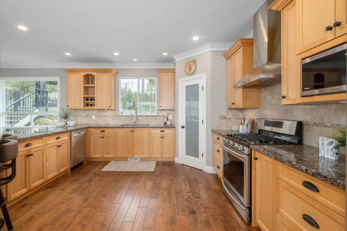 Welcome to this beautiful estate where detailed craftmanship and superior finishes were built to impress. This home features an open floorplan with private views from every window. The kitchen; one for the entertainer and chef of the family will love the high end appliances and plethora of counter space. A spacious primary bedroom with his and her closets, private balcony and spa like ensuite. Spend time in your bonus rec space for movie night or soak in the view from your 180 degree deck. Then step out your back door into nature for a hike on one of the five trail heads near by, Golden Ears Park, Alouette and all within a 5 minute drive of everyday conveniences. With a TRU registered suite this home is the perfect set up for generational living.