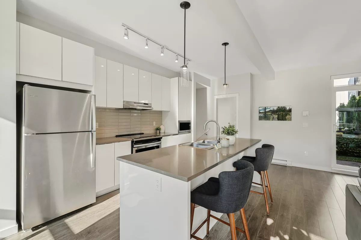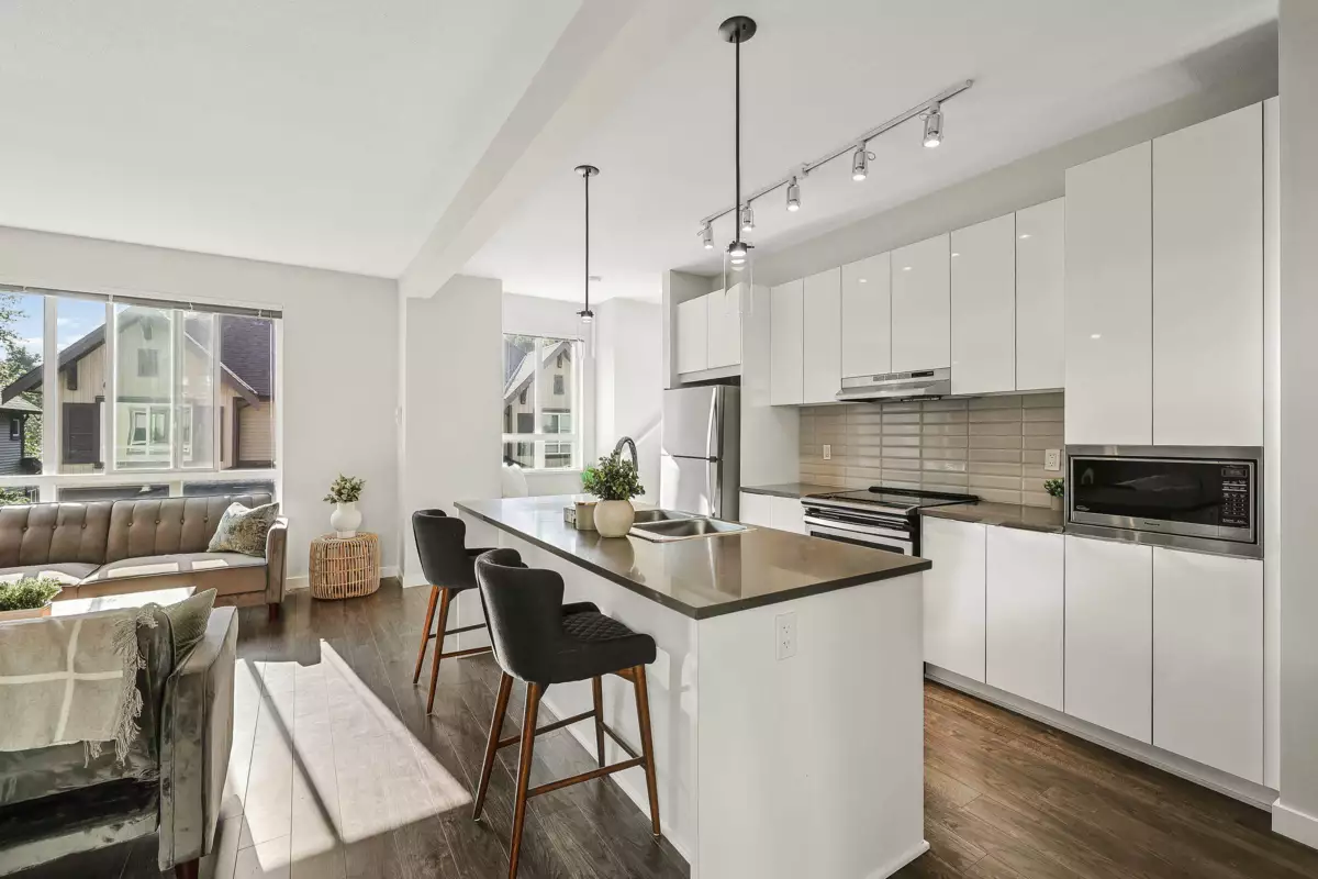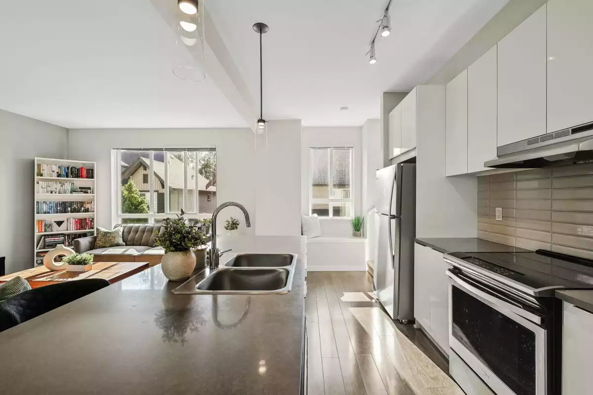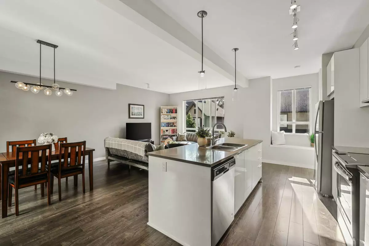 Highly Desirable Bristol Heights! Welcome to this beautifully maintained 3-bedroom, 3-bathroom townhome by Polygon, located in the sought-after Westridge neighbourhood. This bright and spacious home features an open-concept layout with large windows, modern finishes, and an XL quartz kitchen island—perfect for entertaining. Enjoy the comfort of a spa-inspired ensuite with a double vanity, a smart thermostat, convenient upstairs laundry, and a side-by-side double garage. Step outside to a fully fenced yard and a private patio. Residents have exclusive access to Club West, offering resort-style amenities including a pool, hot tub, fitness centre, theatre, dog wash, floor hockey, billiards, playground, guest suite... Close to Discovery Trail, High Street + easy access to HWY1.
