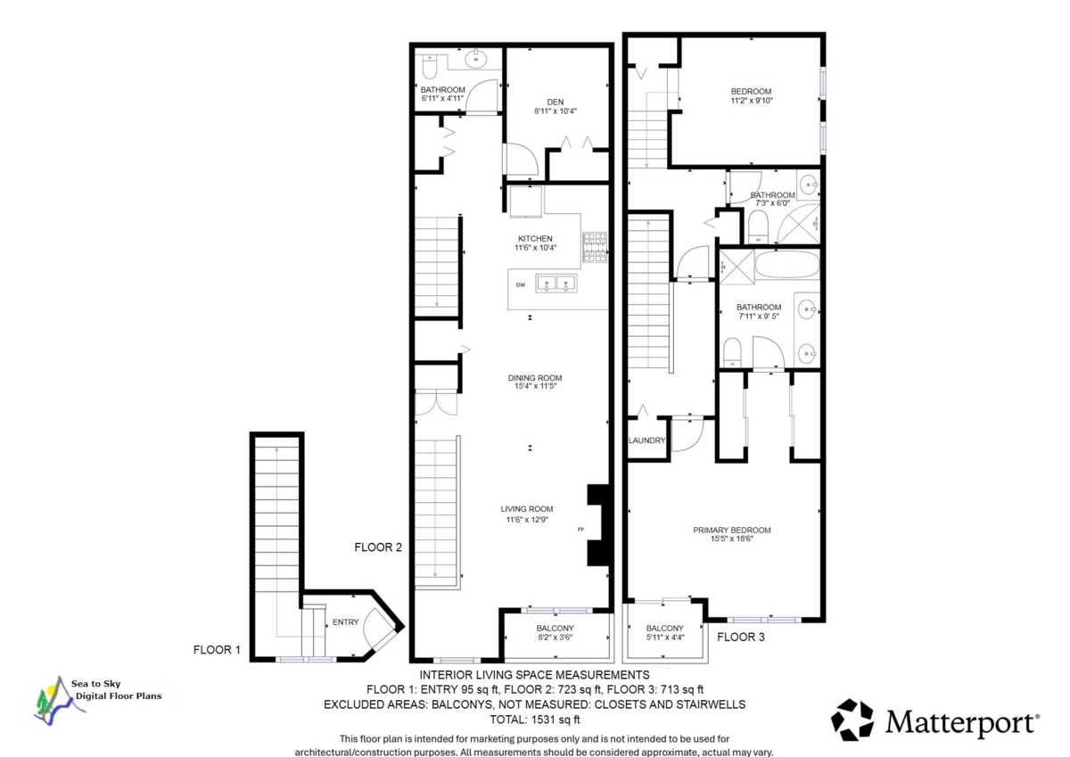 | Above Level | Primary Bedroom | 15'5 x 15'5 ft |