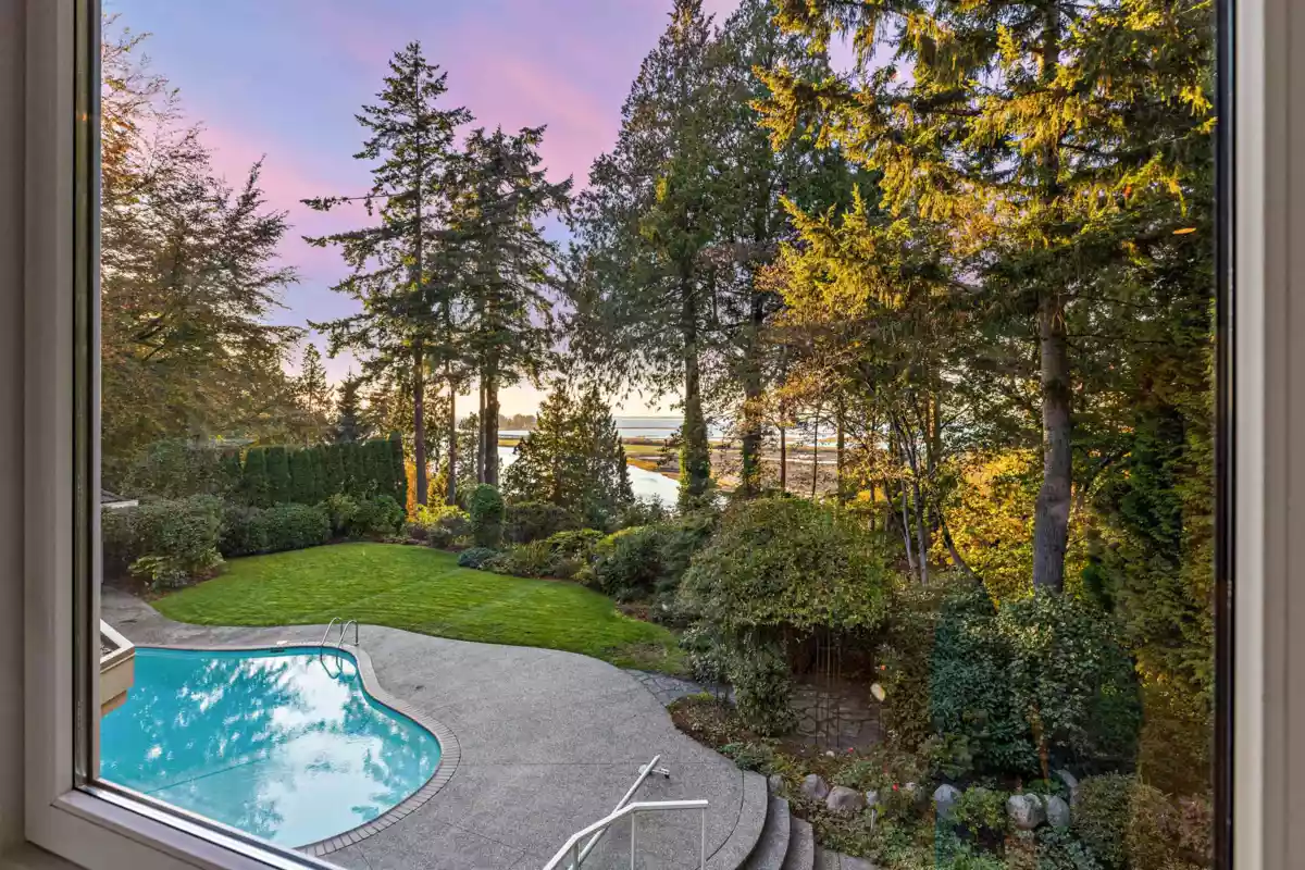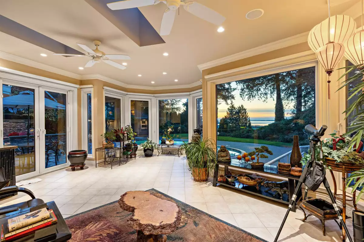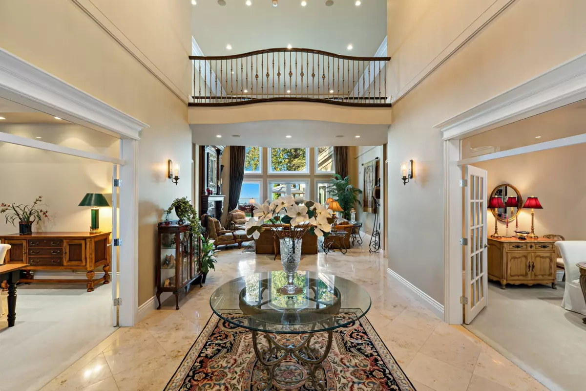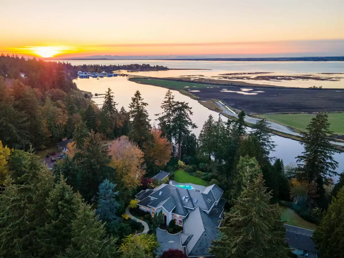 Upon entering the custom Tree of Life gate at Sunset Ridge you'll notice how the mature landscaping provides privacy. Raymond Bonter designed and Nathan Construction built this Georgian estate on 1.27 acres, with pool, hot-tub and an EXCLUSIVE PRIVATE DOCK on the river. Finishings include Travertine tile, radiant in floor heating, extensive millwork and oversized Euroline windows framing the views of the pool, gardens, River, OCEAN, city lights and SUNSETS! The gourmet kitchen is outfitted with an AGA range, 2 islands, gas cooktop, Sub-zero fridge-freezer, built in steam and microwave ovens, and lots of storage. Your new master suite boasts 2 w/i closets, dual sinks, 2 person jetted tub, and steam shower. All bedrooms are ensuited. Below is a perfect in-law, guest or nanny suite.
