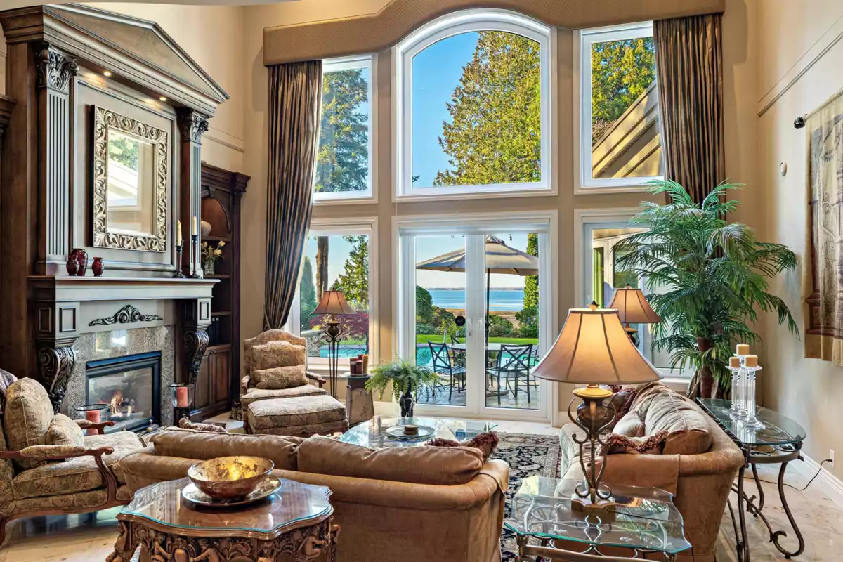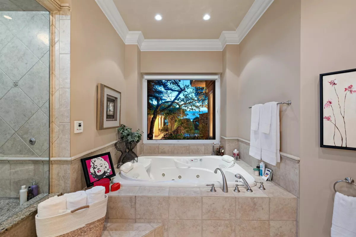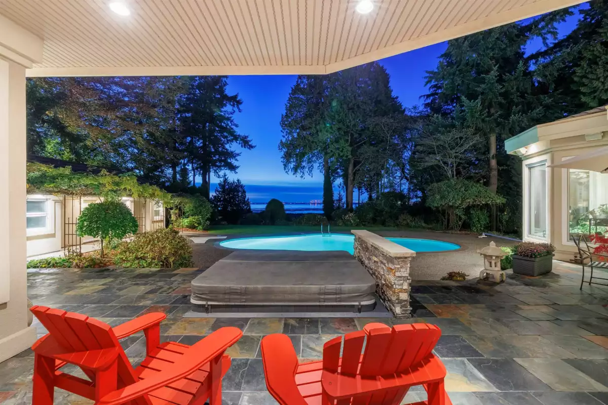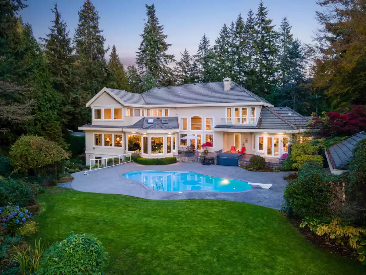 Upon entering the custom Tree of Life gate at Sunset Ridge you'll notice how the mature landscaping provides privacy. Raymond Bonter designed and Nathan Construction built this Georgian estate on 1.27 acres, with pool, hot-tub and an EXCLUSIVE PRIVATE DOCK on the river. Finishings include Travertine tile, radiant in floor heating, extensive millwork and oversized Euroline windows framing the views of the pool, gardens, River, OCEAN, city lights and SUNSETS! The gourmet kitchen is outfitted with an AGA range, 2 islands, gas cooktop, Sub-zero fridge-freezer, built in steam and microwave ovens, and lots of storage. Your new master suite boasts 2 w/i closets, dual sinks, 2 person jetted tub, and steam shower. All bedrooms are ensuited. Below is a perfect in-law, guest or nanny suite.