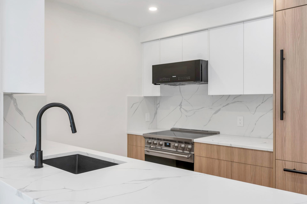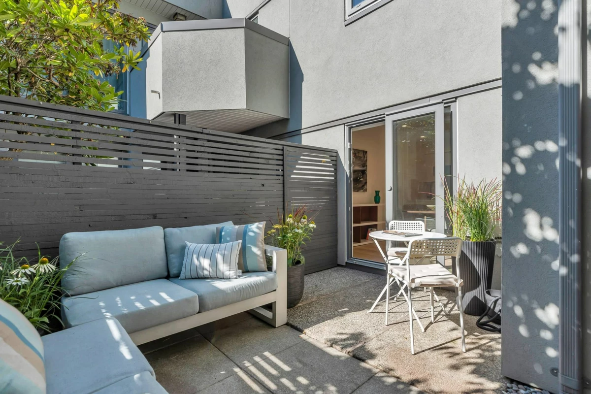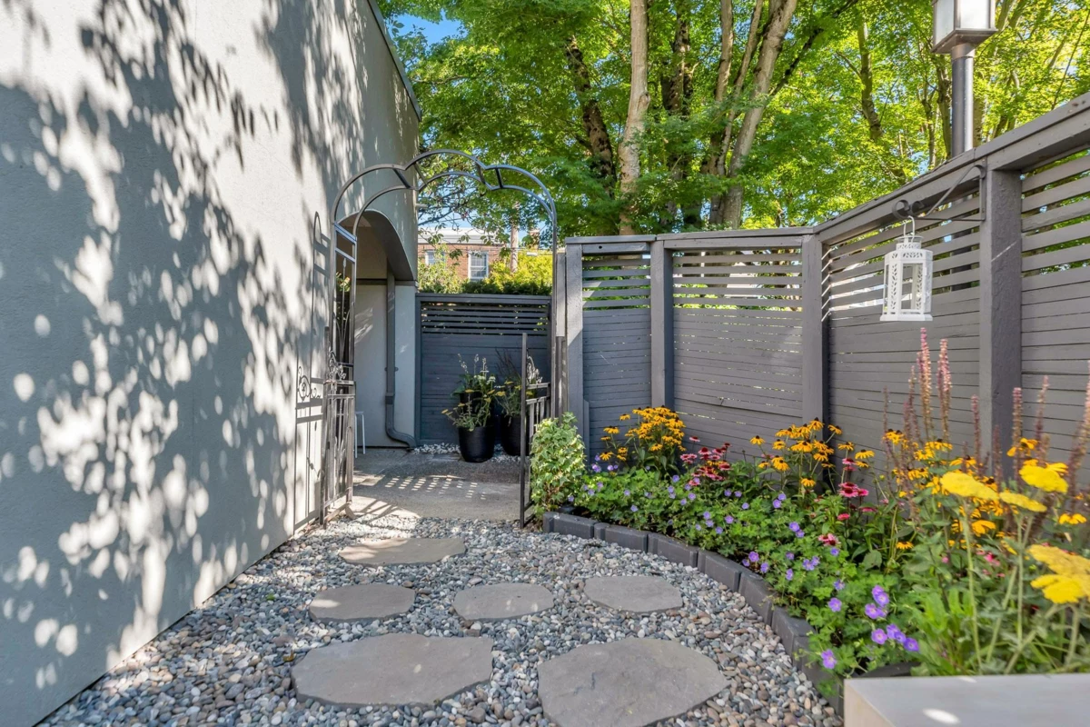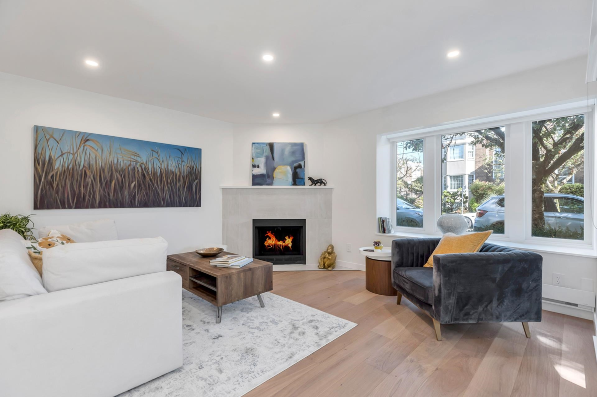 Absolutely Idyllic townhouse that has an amazing house-like feel. Whether you are downsizing or looking for your first home you will appreciate the oversized rooms, formal dining room, large kitchen and three private outdoor spaces. Thoroughly renovated, with many custom details including white oak engineered flooring, gorgeous imported porcelain tiles throughout and custom white oak coloured millwork throughout. The living room features a picture window overlooking the cherry blossom filled streetscape and a wood fireplace for cozy winter evenings. Generous windows and skylights offer morning and afternoon sun! This is absolutely the best walkable location with fantastic Mon Pitou coffee on the corner and future skytrain access. You will be impressed. 1 Parking. 2 dogs or cats allowed.
