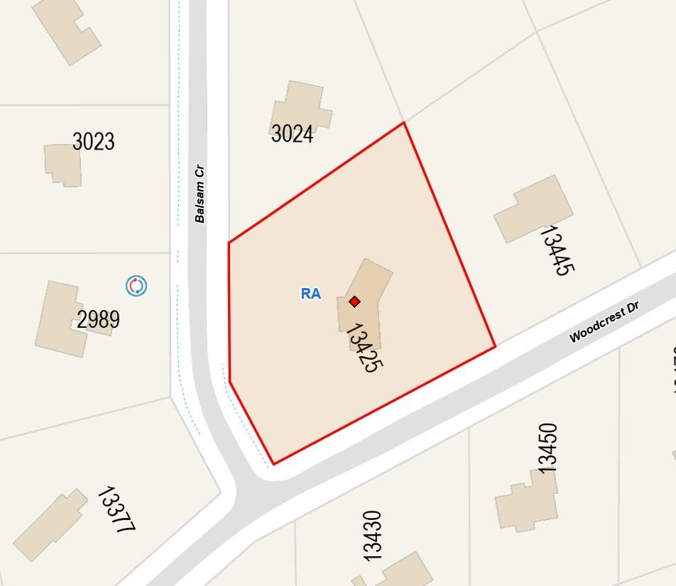 A RARE FIND! 1.53 acres on PRIME Woodcrest Drive. Beautiful HUGE corner lot with dual street access, ideal site for the custom dream home. Current R-A zoning allows for extensive density. (see attachments for copy of zoning by-law). Very rentable 4 BDRM residence while you plan your dream home. Value is in the land. Please do not disturb the tenant by walking on the property without an appointment. Please allow ample notice for appointments. Schools: Elgin Park High School, Chantrell Creek Elementary.