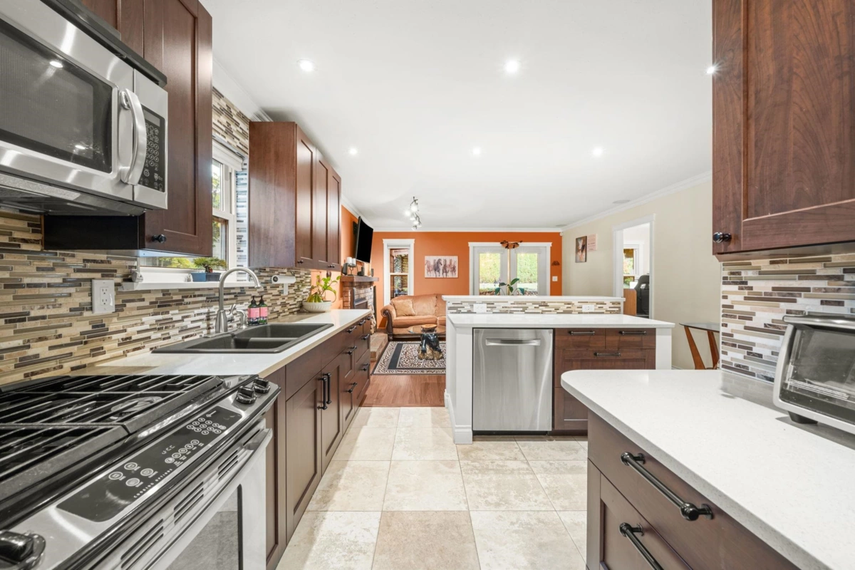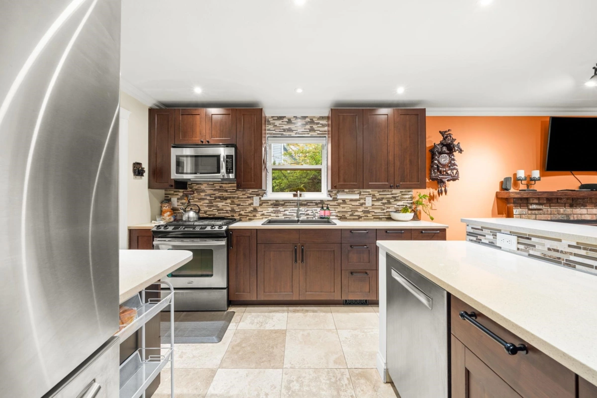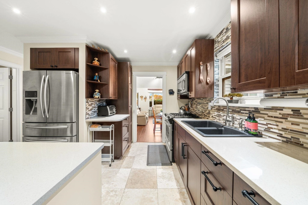 Great time to get into a home priced $134,000 below assessment in desirable Panorama Ridge!! This well kept 3 bed, 2 bath rancher features 1,330 sq. ft. of comfortable living space on a 5,638 sq. ft. lot, perfectly situated on a quiet cul-de-sac with great curb appeal. The bright, open layout features vaulted ceilings, crown mouldings, and a kitchen with quartz counters, tile backsplash, and stainless steel appliances. The spacious family room with a cozy gas fireplace opens through French doors to a private, fully fenced backyard with a large covered patio, ideal for outdoor entertaining and relaxing. Enjoy an oversized driveway with parking for 4 plus a single garage along with a 6 ft crawl space. Close to parks, schools, shopping, transit & more! QUICK POSSESSION POSSIBLE. HURRY!!!