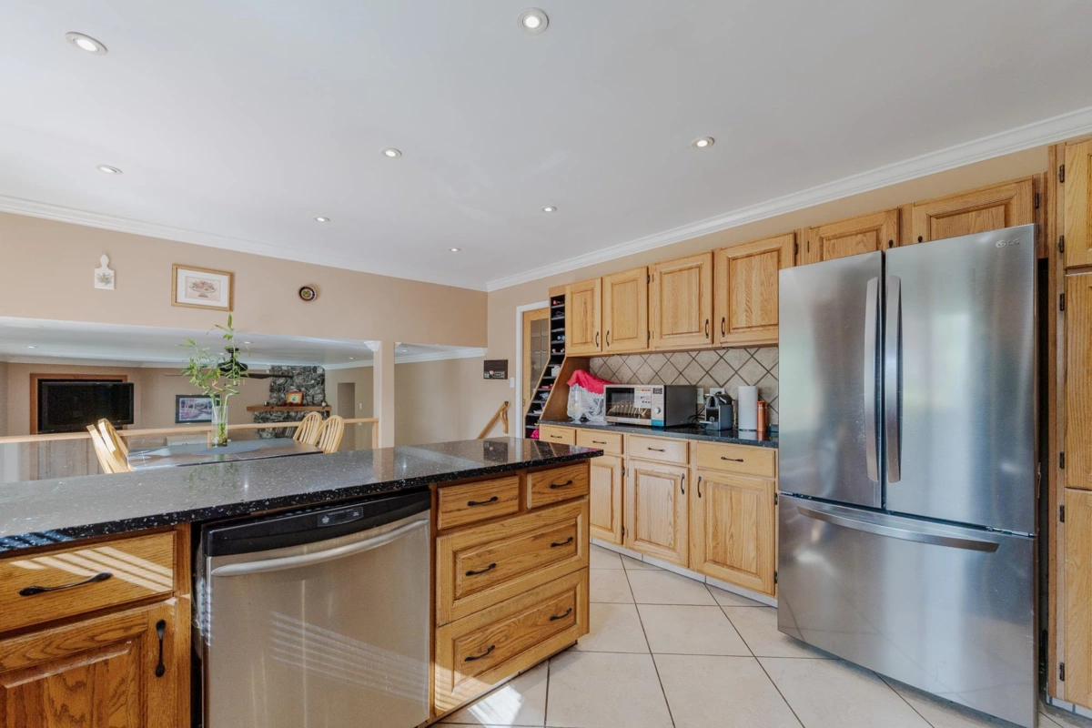 This home features spacious almost 2700 sq.ft, with 4 large bedroom 3 bathroom. Open floor plan with beautiful kitchen: stainless steel appliances, gas stove w/ 5 burner, 5 granite counter tops & easy to convert a comfortable side suite. sunroom for relaxation & creative activities. wood Floors- 7 Coats + UV protection & water resistant. Huge deck w/ built in seating, double garage with 6 outside & street parking (8), Private backyard w/ amazing Koi pond & beautiful water fountain with more than 10 Koi, many fruit trees kept w/ such owner's pride such as blueberries, apples, flowers and more. Great neighborhood close to transit, shopping, schools and amenities w/ great future potential developmental plan.