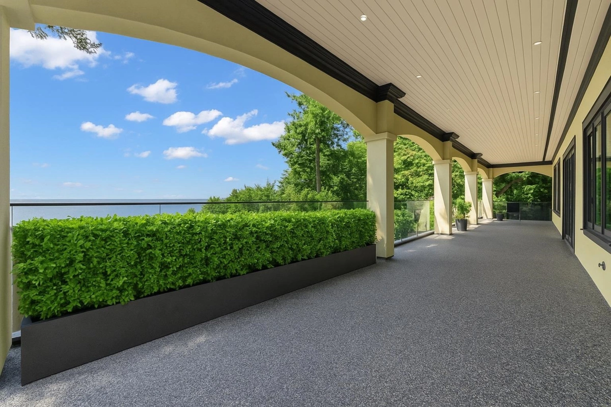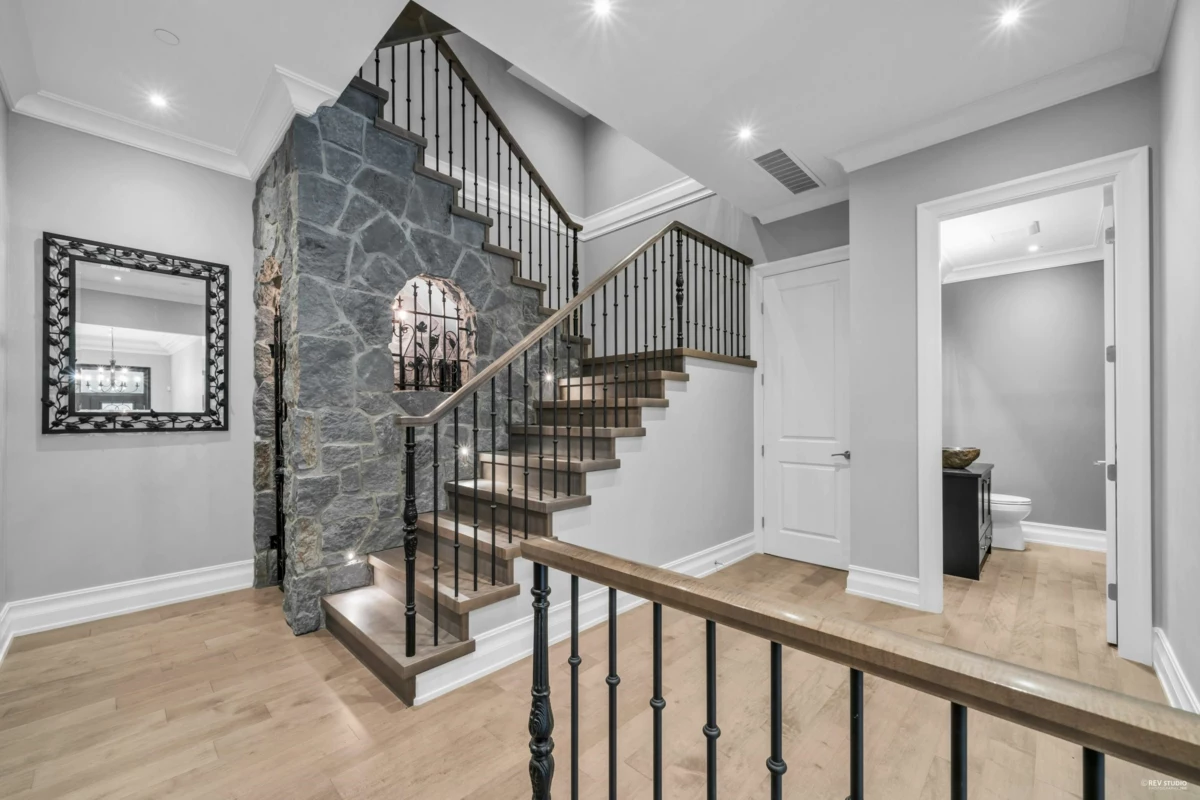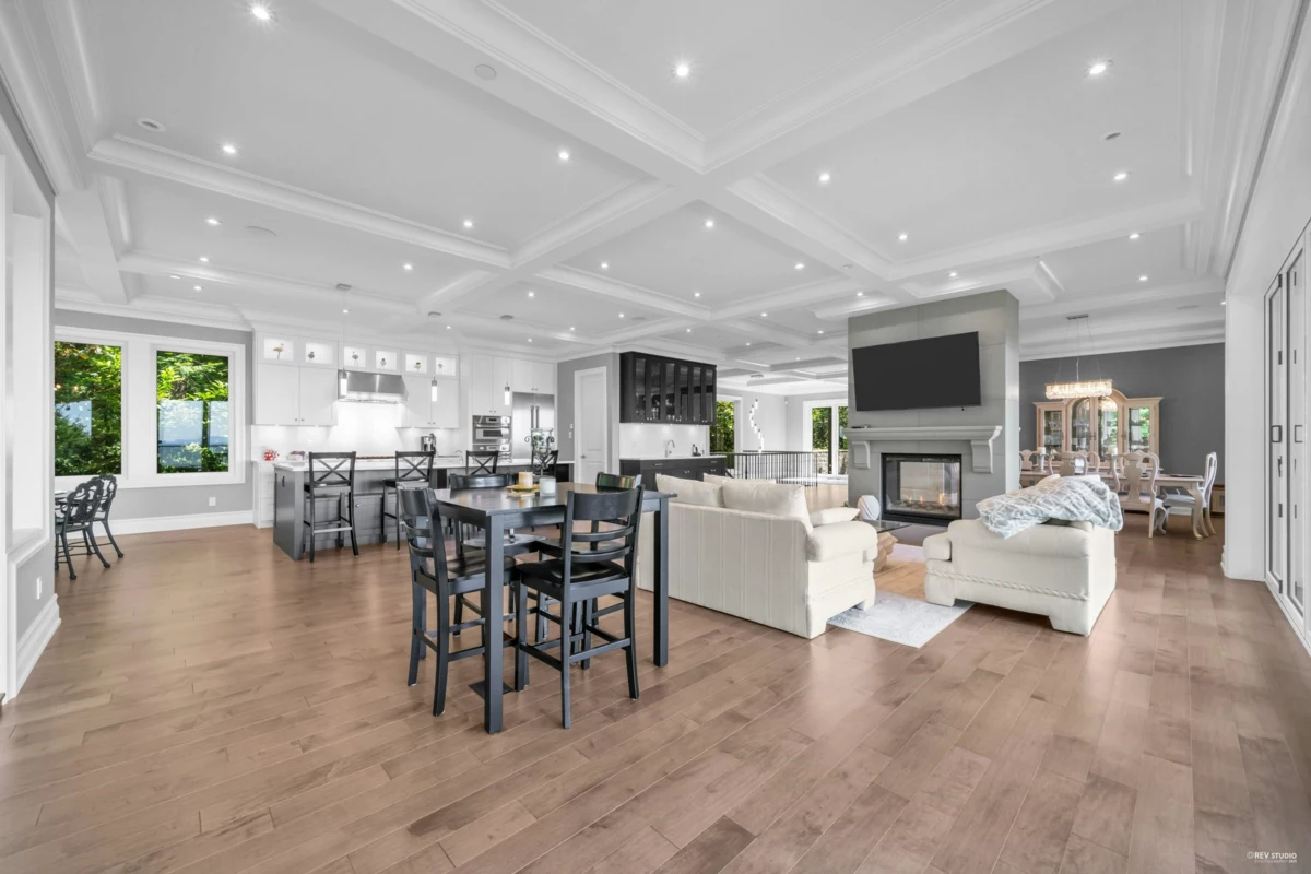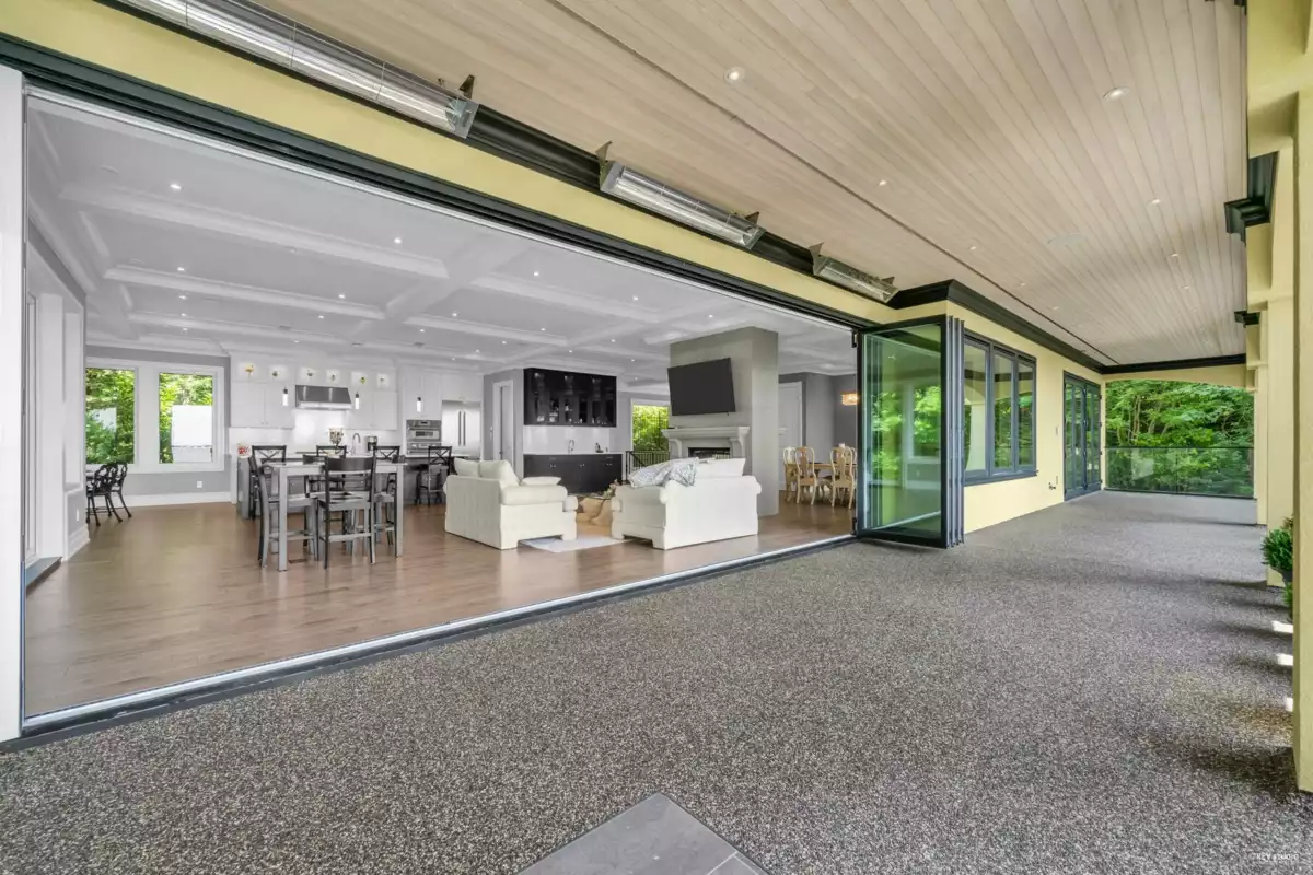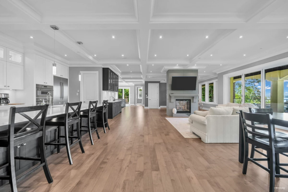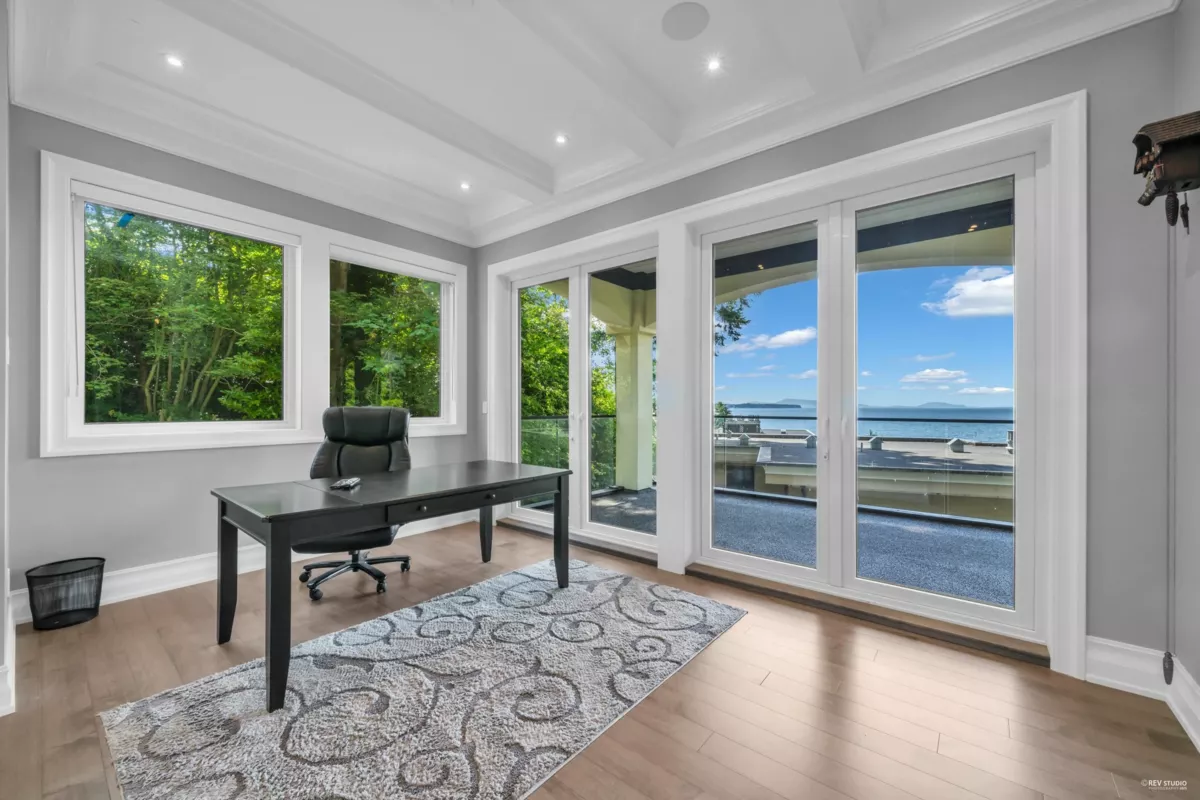 Must sell! Unobstructed panoramic ocean view. Pristine 5,734 sf executive home by renowned Ronco Construction on a S-facing 9,350 sf lot with 132.4' frontage, surrounded by mature trees and trail to Centennial Park. Main floor features open living/dining, Thermador gourmet kitchen, office/4th ensuite bdrm, and 1,080 sf wrap-around covered balcony plus 200+ sf private patio with built-in trellis—perfect for entertaining. Lower floor offers 4 spacious ensuite bdrms and 978 sf covered balcony. Luxurious primary ensuite with soaker tub, crystal chandelier, steam shower, marble finishes. Basement includes home theatre, 2-bdrm legal suite, wine cellar, and 5-car garage. 10' ceilings, Viessmann radiant heating, HRV, flood-warning system, elevator, cedar soffits, man-made stream, electric gate.