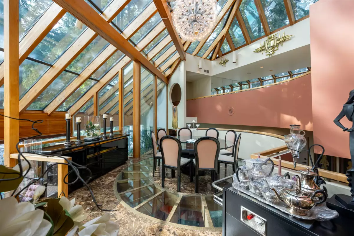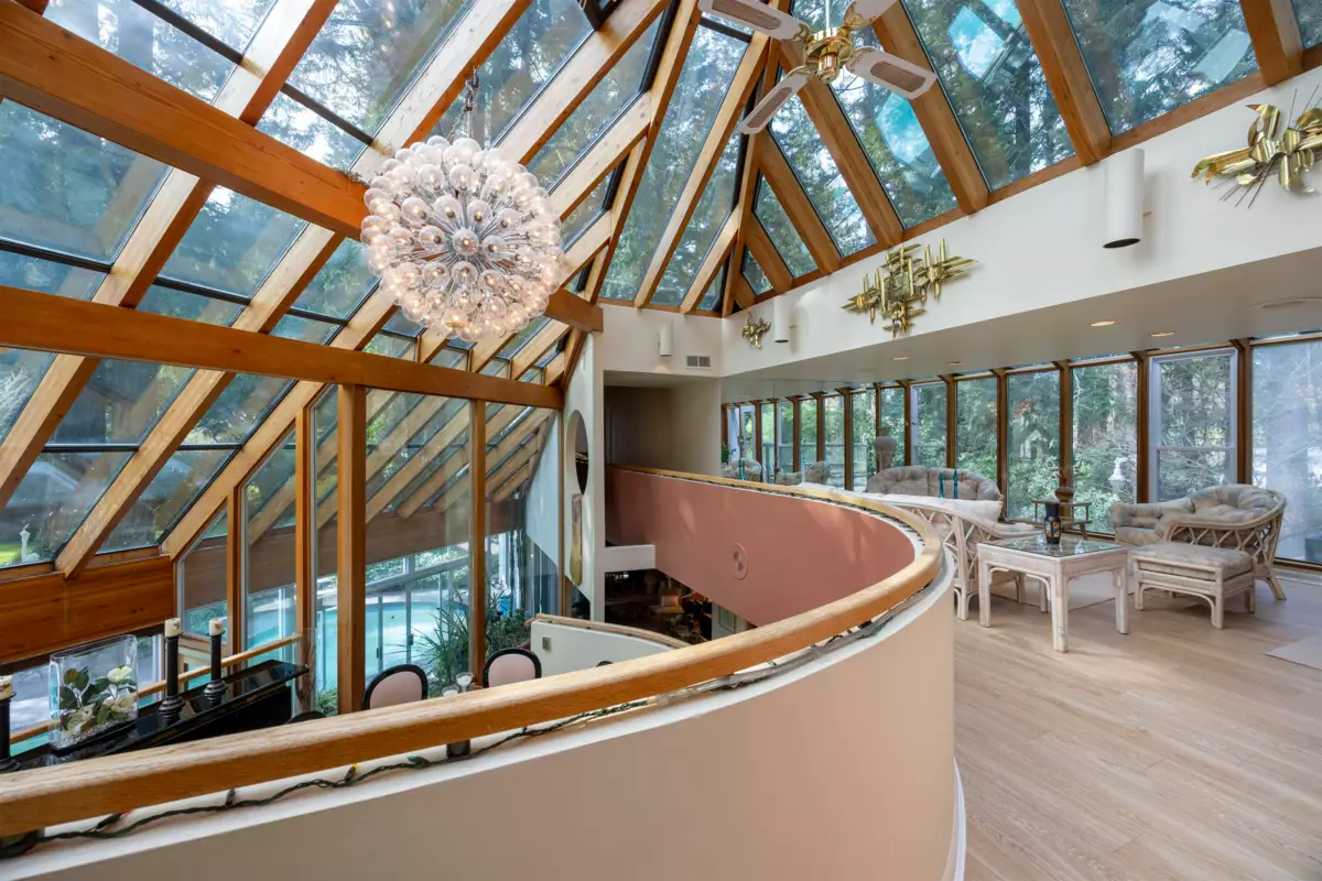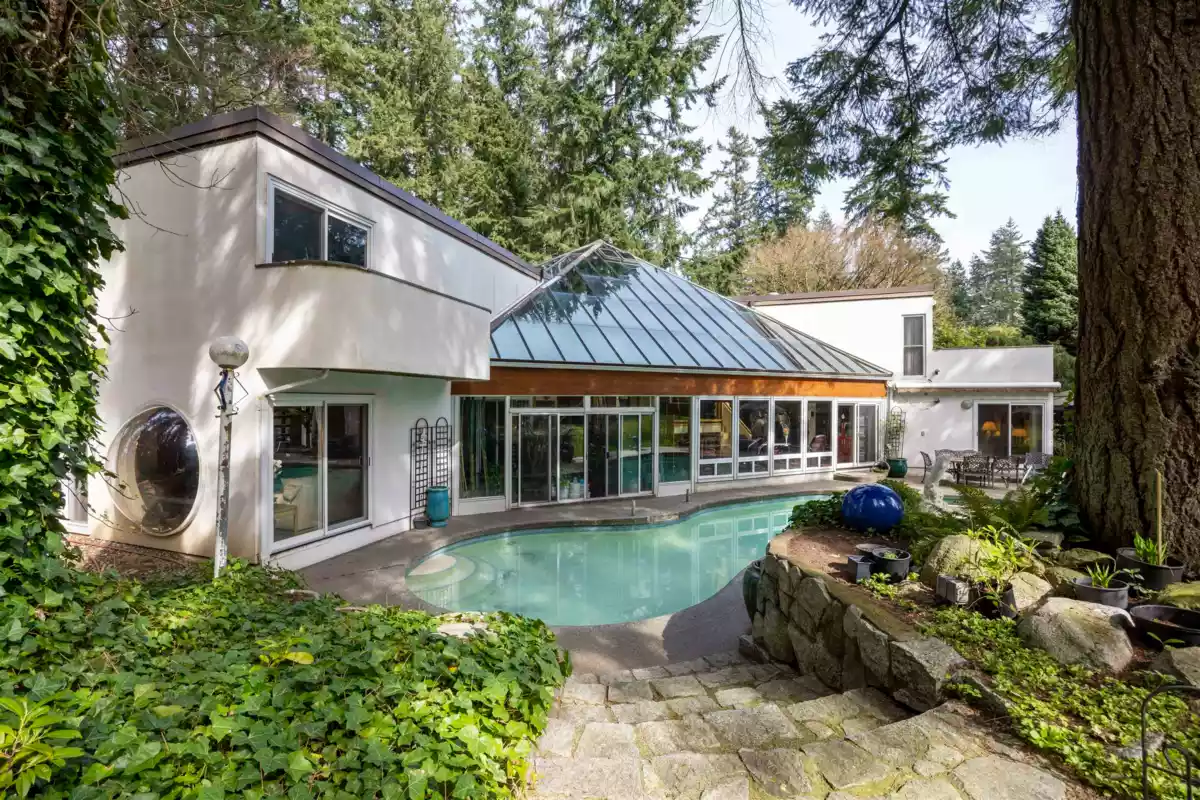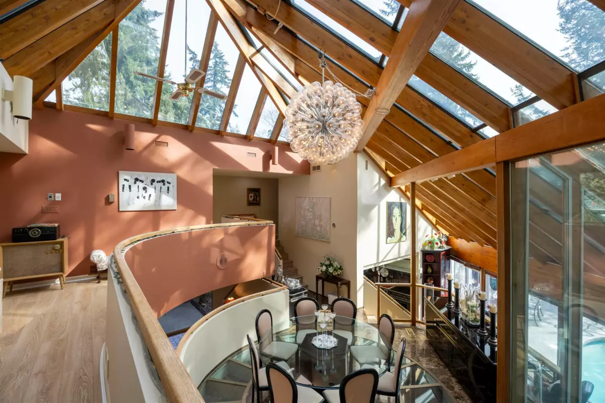 Located in the Elgin Chantrell area of South Surrey, this unique property on 1.05 acres is truly a stunning living space. With a generous 4035 square feet of living area, the design is thoughtfully crafted, blending modern aesthetics with natural harmony. The interior is spacious and bright, featuring a dual-sided wood-burning fireplace that adds warmth and creates a cozy atmosphere throughout the home. One of the highlights of this residence is its impressive amenities, including a luxurious swimming pool, sauna, and a hot tub, providing the perfect environment for relaxation. Additionally, the outdoor garden and indoor garden greenhouse add to the property's charm, with lush greenery offering a serene escape that feels like a peaceful retreat. The land is situated in a rare and desirable
