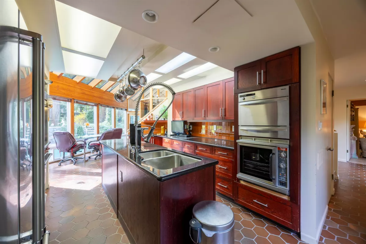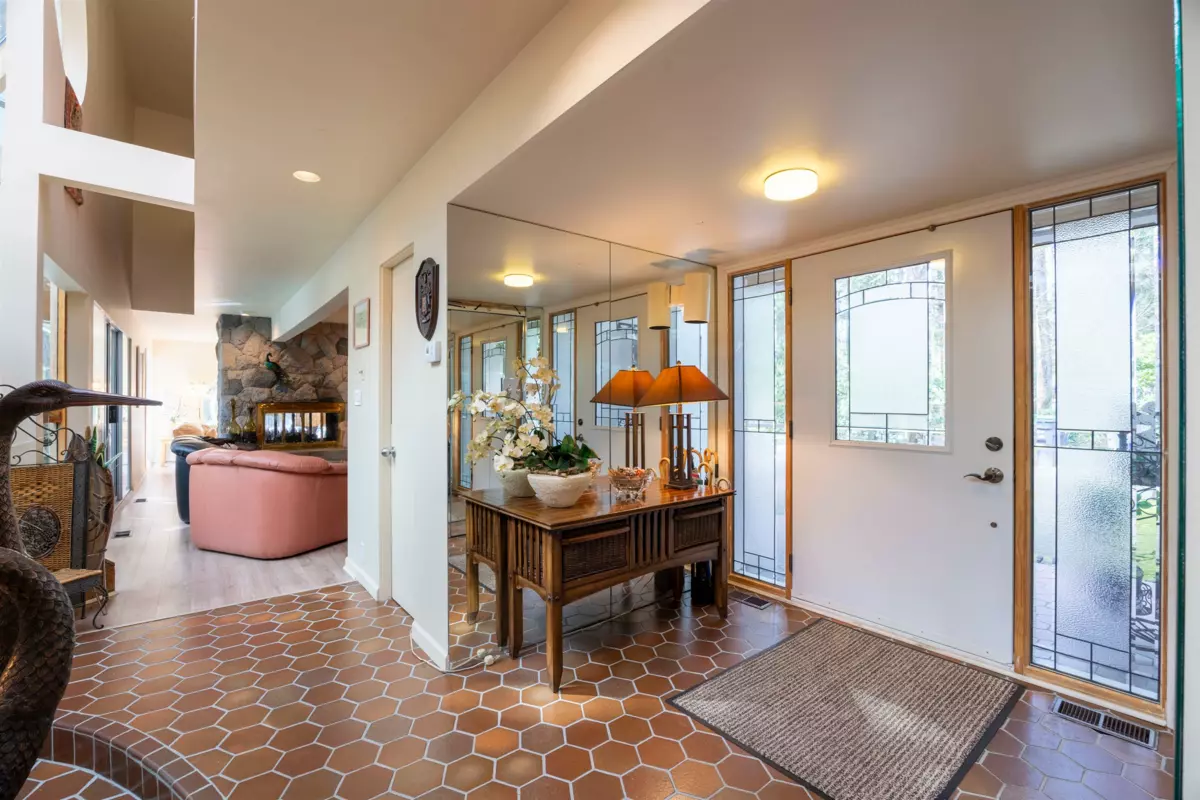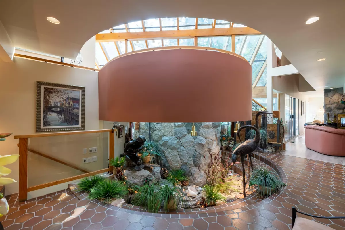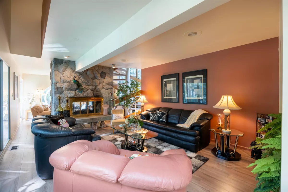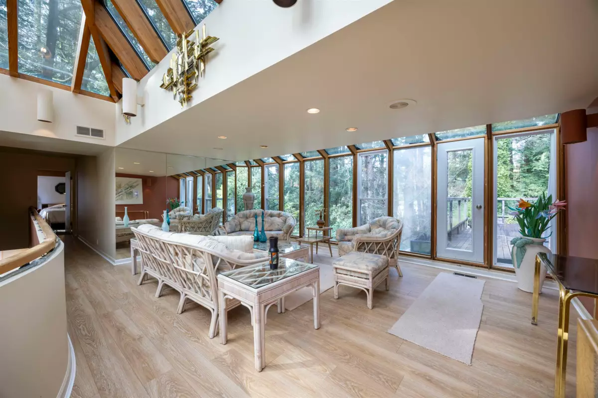 Located in the Elgin Chantrell area of South Surrey, this unique property on 1.05 acres is truly a stunning living space. With a generous 4035 square feet of living area, the design is thoughtfully crafted, blending modern aesthetics with natural harmony. The interior is spacious and bright, featuring a dual-sided wood-burning fireplace that adds warmth and creates a cozy atmosphere throughout the home. One of the highlights of this residence is its impressive amenities, including a luxurious swimming pool, sauna, and a hot tub, providing the perfect environment for relaxation. Additionally, the outdoor garden and indoor garden greenhouse add to the property's charm, with lush greenery offering a serene escape that feels like a peaceful retreat. The land is situated in a rare and desirable