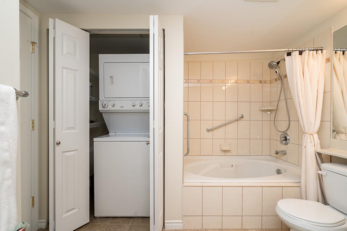 Welcome to this peaceful & private 1 bedroom home located on the quiet side of the building, offering serene courtyard & garden views. Enjoy your morning coffee or evening unwind on the large patio, perfect for relaxing or entertaining. Inside, you'll find a cozy gas fireplace, in-suite laundry, & a walk-in closet in the bedroom. The open layout is bright & functional, making the most of the space. Just steps to SkyTrain, Douglas College, Lafarge Lake, parks, trails, restaurants, cafés, & all the amenities of City Centre - including the Aquatic Complex & Public Library. Pet & rental friendly. Wheelchair access. Bonus: 2 Parking stalls, storage locker & even a car wash station! Whether you're a 1st-time buyer, investor, or downsizer, this home offers lifestyle, location, & value.