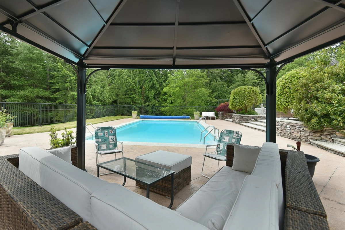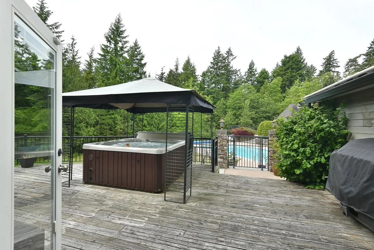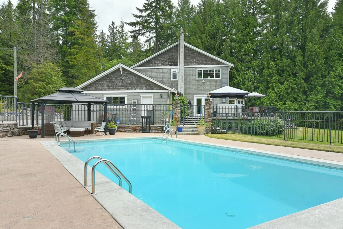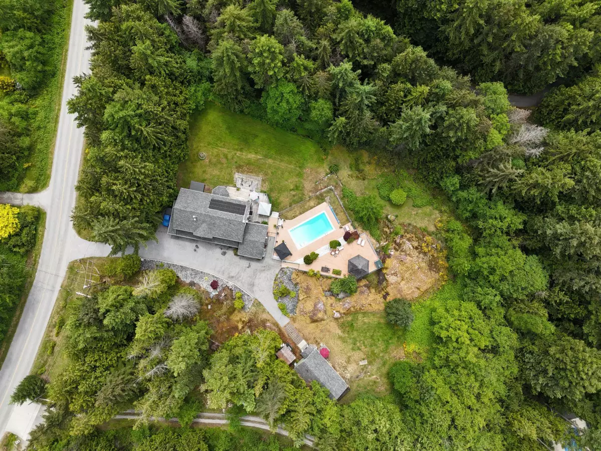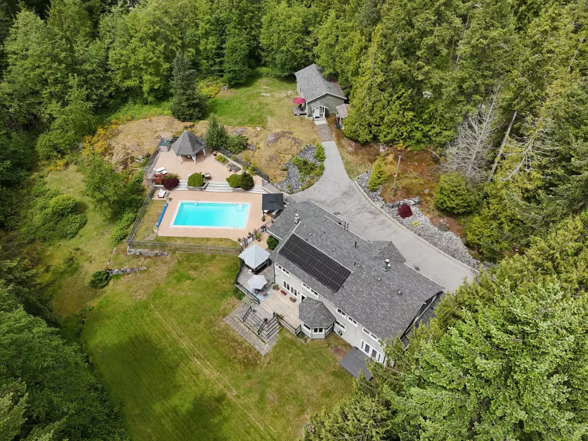 Tucked away on a 2.7 treed acreage, this exceptional property offers a spacious four bedroom home with a large covered front porch, solar-heated pool, hot tub and well appointed two bedroom cottage. The gourmet kitchen features a dual-fuel stove, double ovens, eating bar, pantry and breakfast area with bay windows overlooking the lush yard. Perfectly situated between Gibsons and Sechelt, within walking distance to the heart of the Creek and golf course. The cottage offers flexibility to welcome guests, host family or generate rental income. Entertain on the expansive pool deck with two gazebos, this is coastal living at its best. A great opportunity for multigenerational living with space and privacy for all.