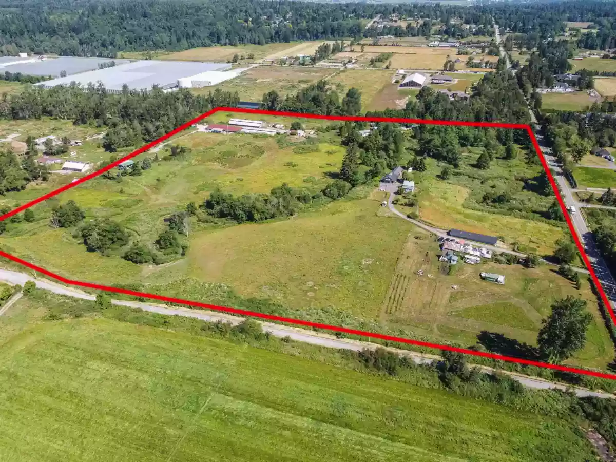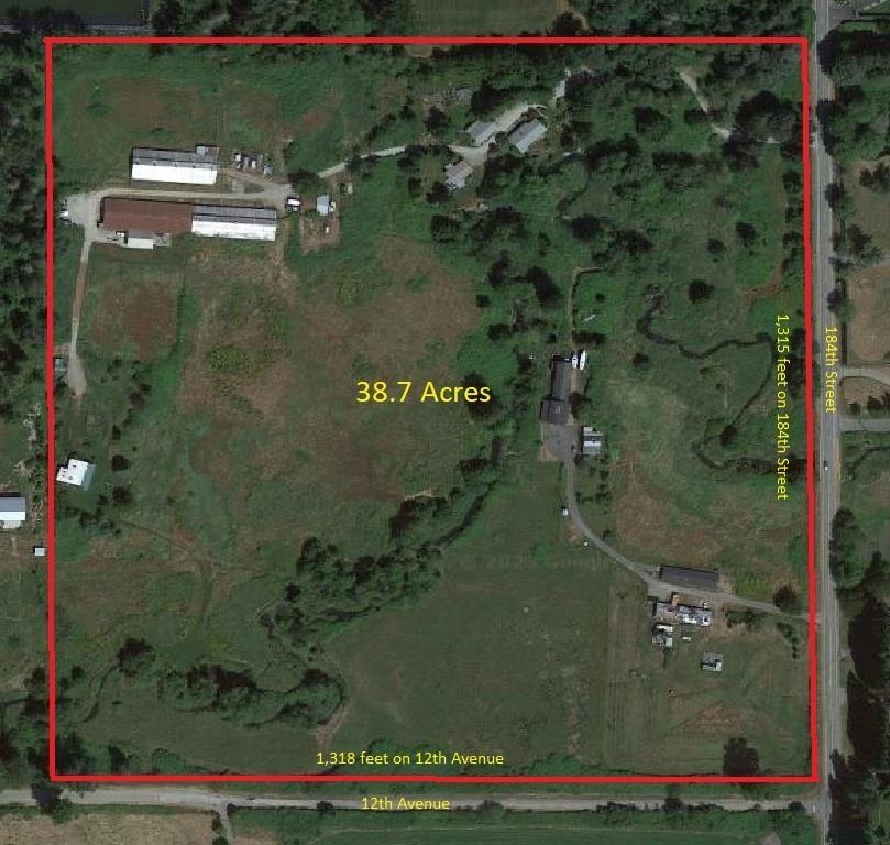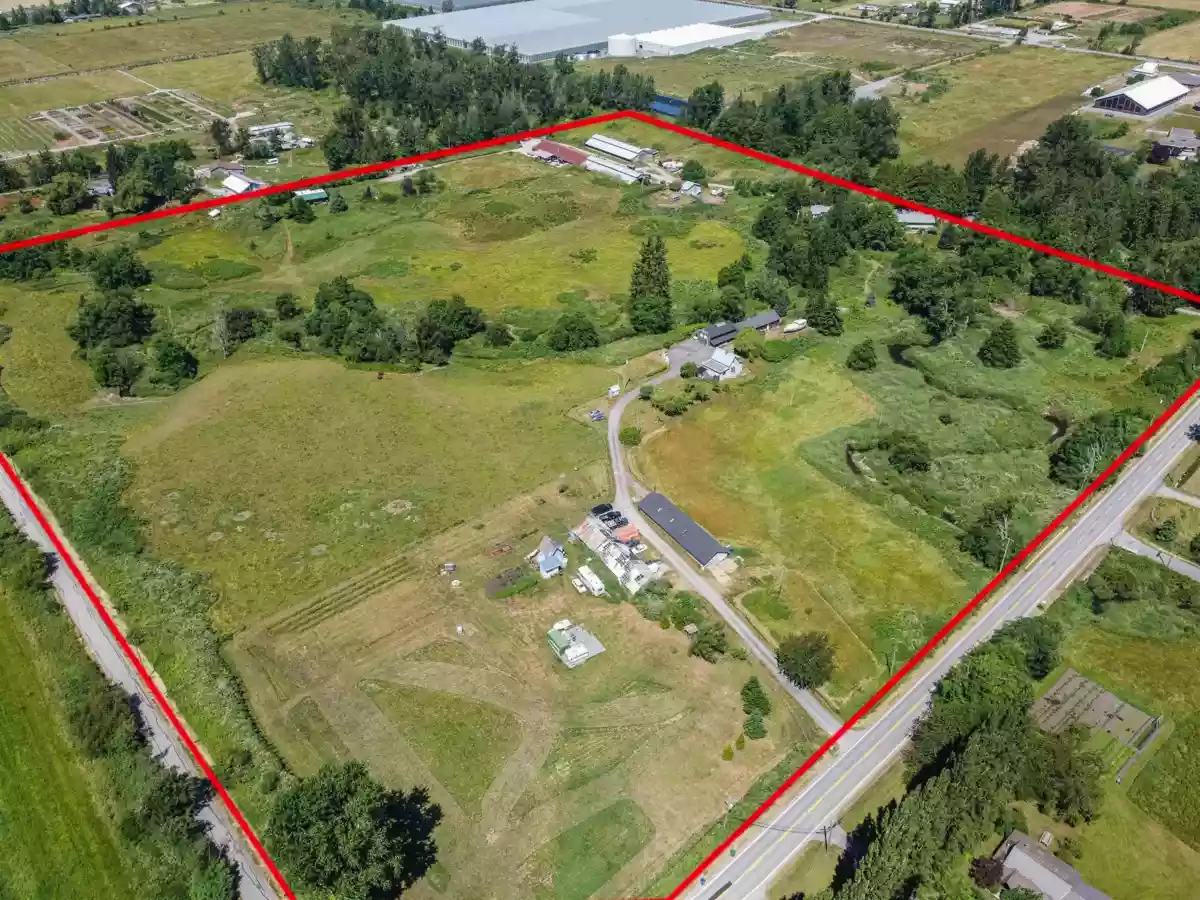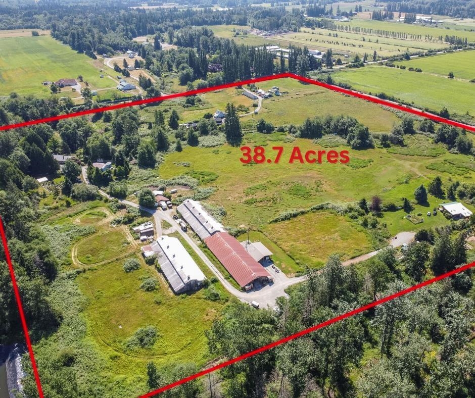 SUNNY SOUTH SURREY & an opportunity for the whole family to live together! This is a once in a lifetime property that has an abundance of options for your imagination & dreams! Gorgeous (Organic) 38.7 acre ESTATE property located in highly desirable & sought-after area of Hazelmere. Two solid main homes are acres apart with separate addresses & driveways. A multitude of large barns 289’X50’, 139’X49’, 110’X22’, 92’X24’, 42’X34’ and workshops. The acreage has some gentle rolls with the salmon producing Little Campbell River meandering through “a true nature watchers paradise”. Water rights of 37,000m3 per year. A blank canvas for you to create an Equestrian estate, a winery, greenhouse production, your dream farm. Fabulous location just minutes to the US border and freeway access. WOW!