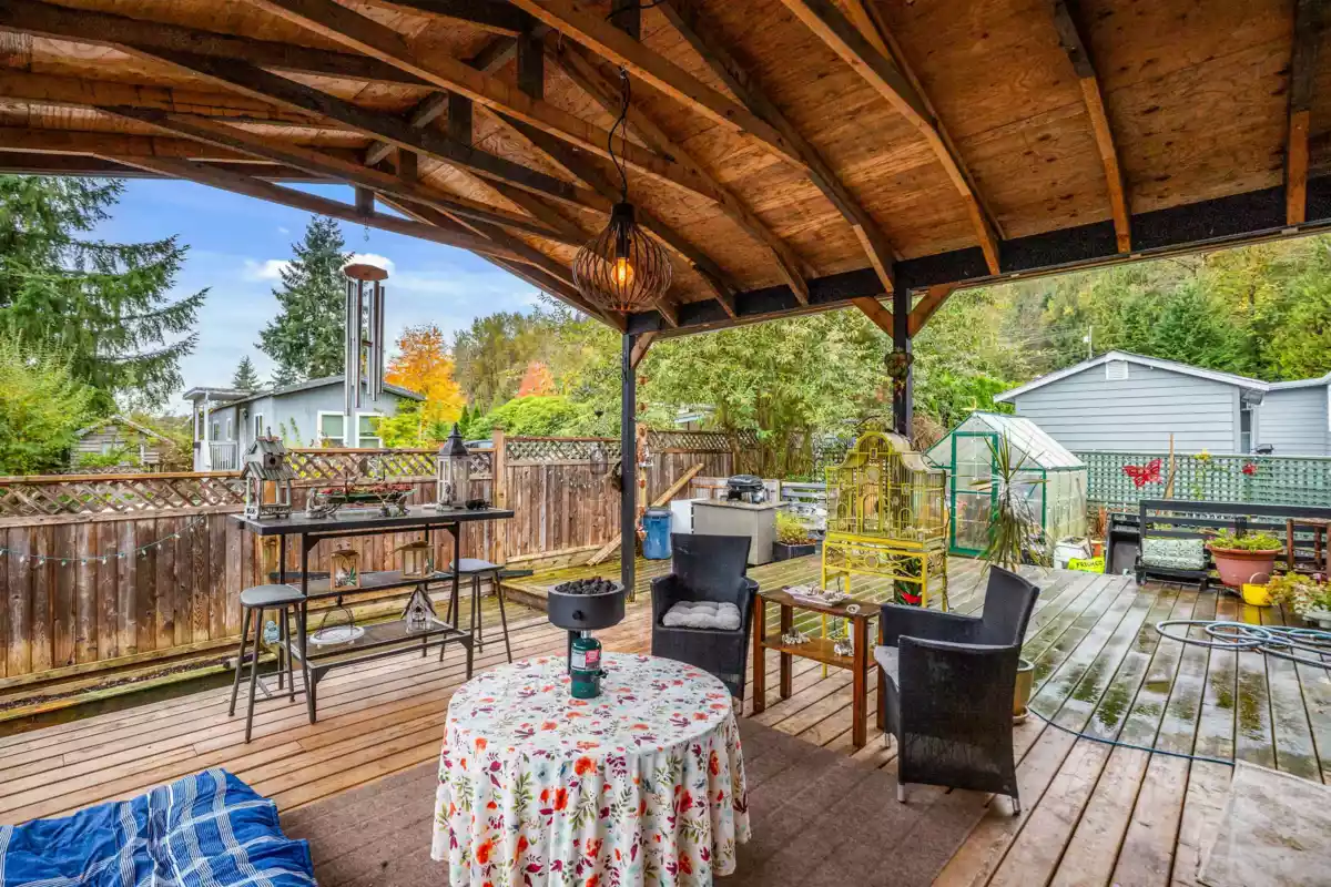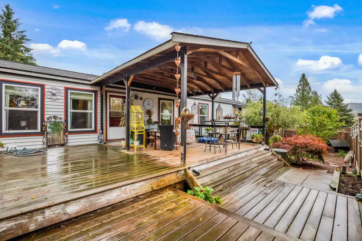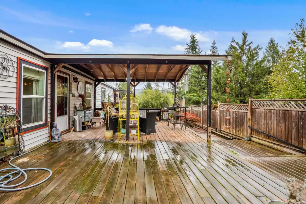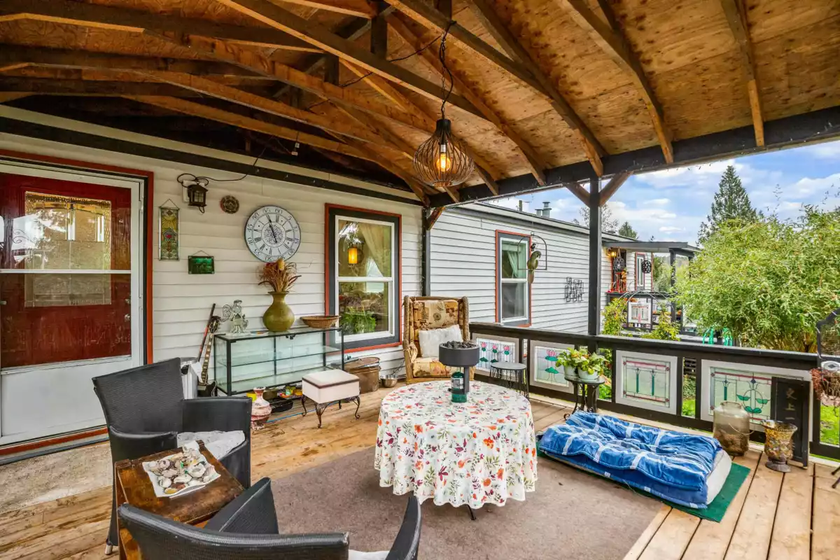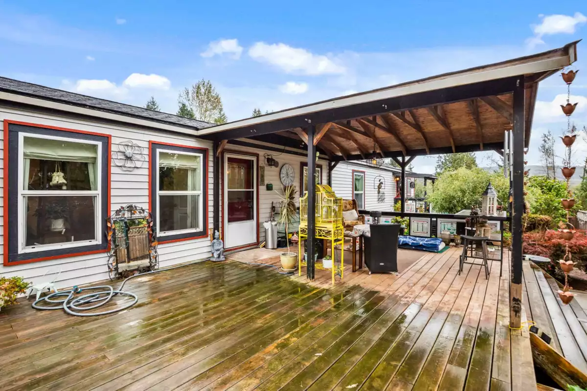 Welcome to Triple Creek Estates—one of Mission’s most desirable parks, just minutes from Maple Ridge! This 3-bedroom, 2-bath home is a gardener’s dream, filled with unique and exotic trees and plants that create a lush, peaceful retreat. It features a large, private, fully fenced yard and an impressive 750+ sq. ft. partially covered patio—perfect for outdoor living year-round. The spacious primary bedroom offers a walk-in closet, and the open-concept layout is bright and inviting. Enjoy the outdoors with the Stave River just across the street for fishing and kayaking, plus nearby trails and Ruskin Park. Pad rent only $850/month! ***OPEN HOUSE SUNDAY NOV 9 1:00-3:00***