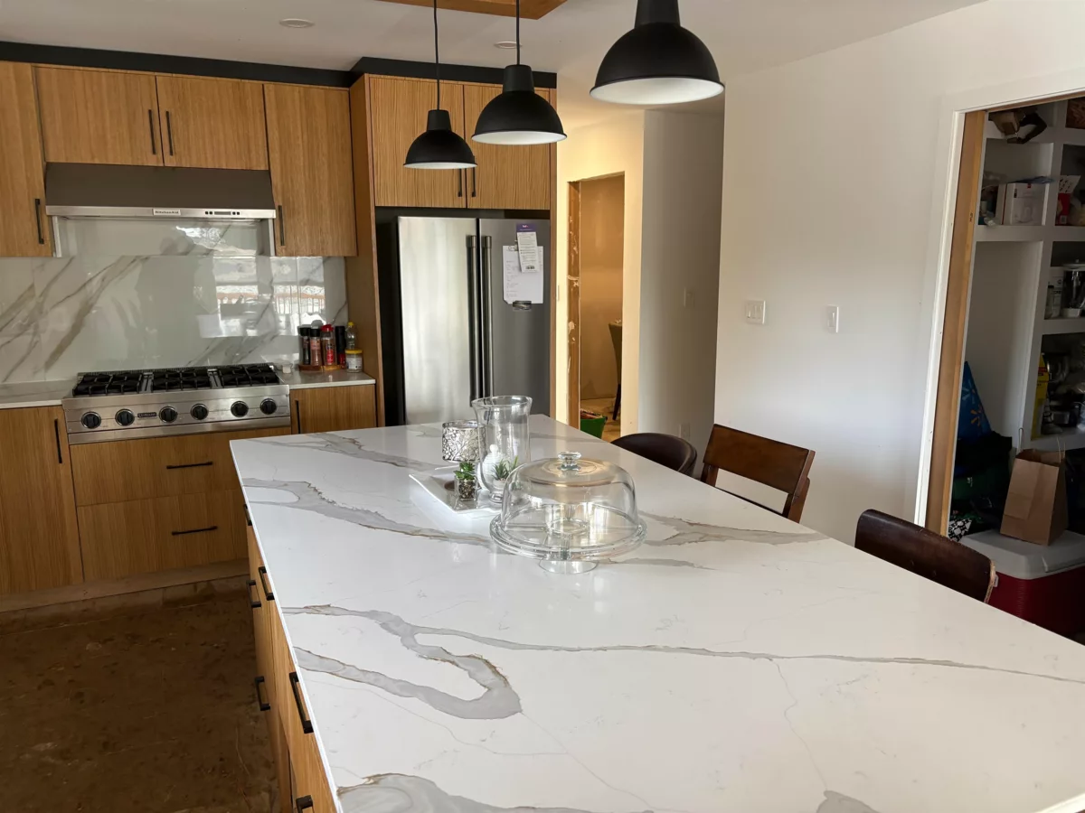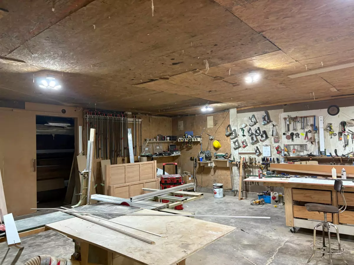 Renovators delight. Lots of work started but not finished. Some nice features to the work done include gorgeous kitchen with a big onyx top island, adjoining family room with slider to big deck, separate pantry storage. There is lots of unfinished parts and rooms to be completed. The basement has a suite that is also in a semi finished state. Bonus is the detached shop - perfect for the car enthusiast or home wood worker. Lots of open parking.