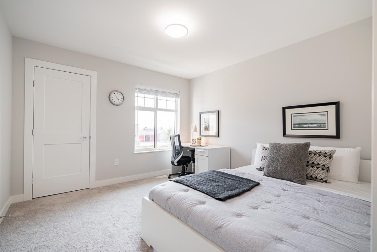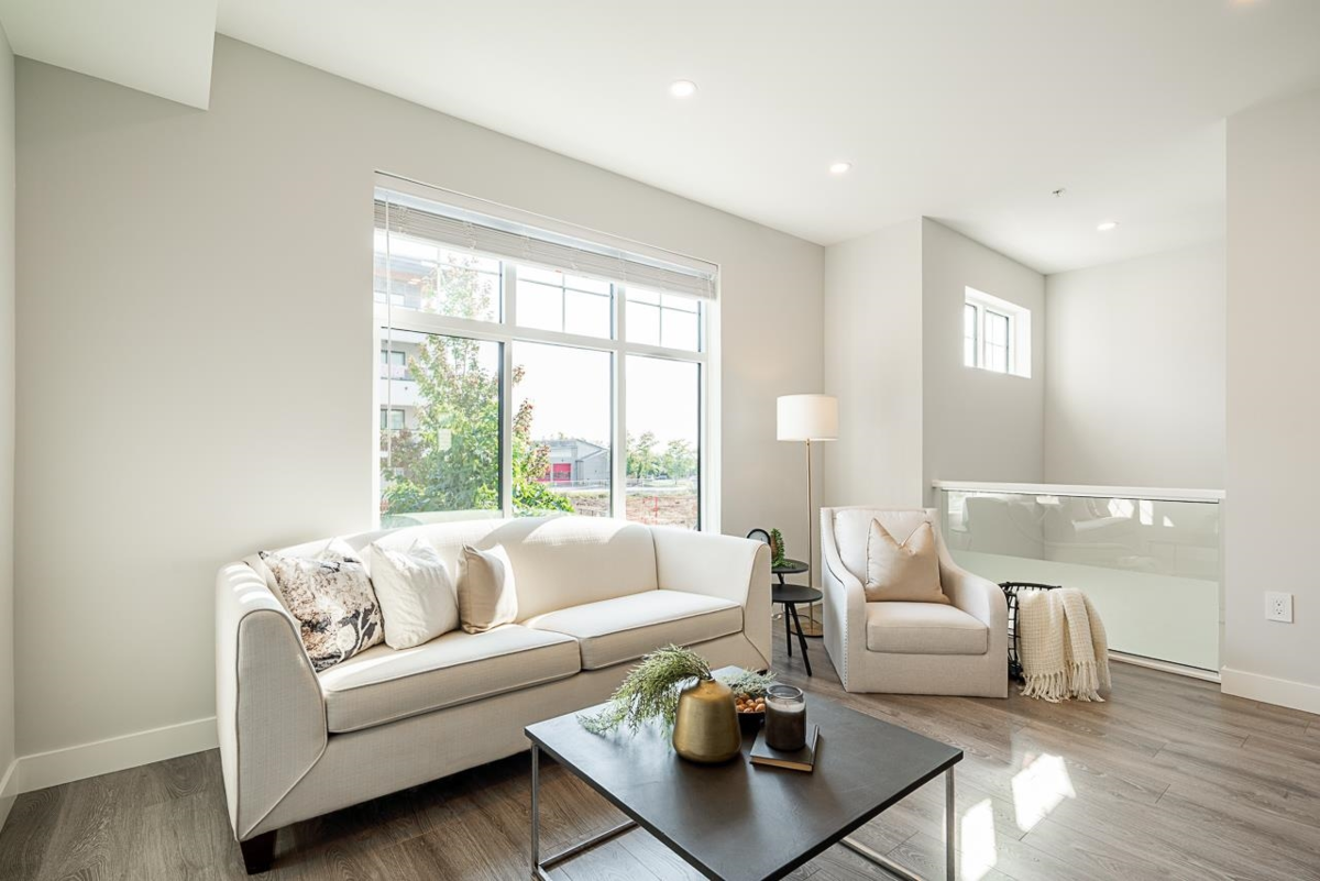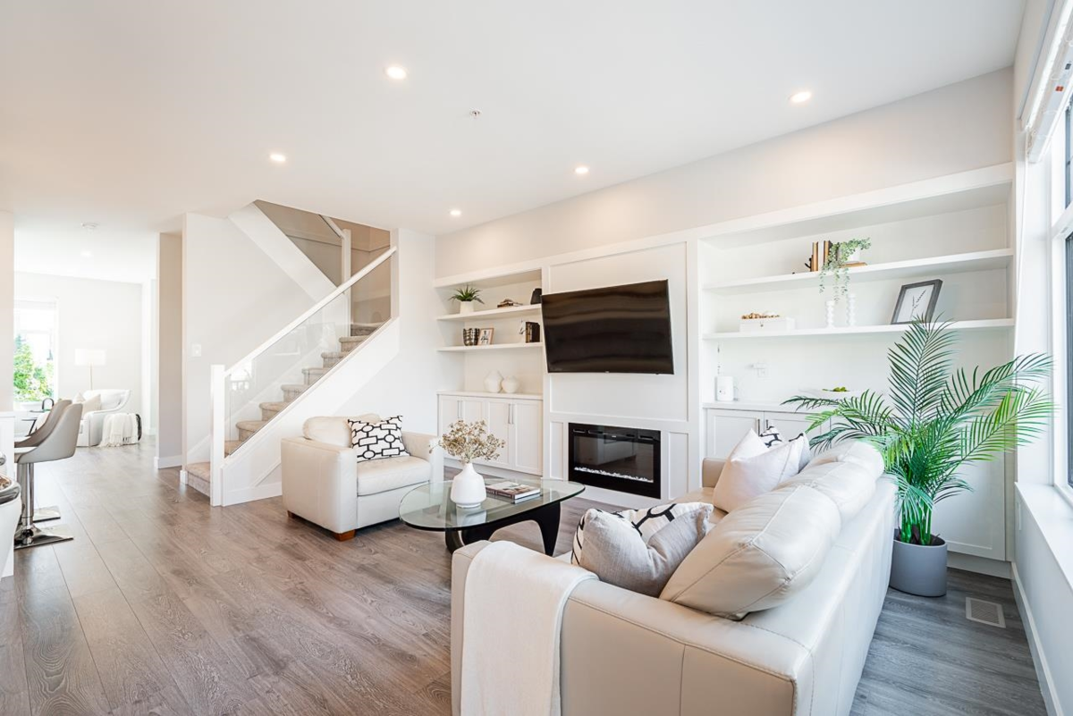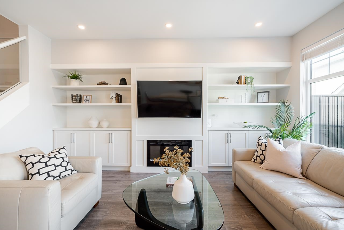 Welcome to TRIBUTE! This modern 4 BED | 3.5 BATH home offers elegant elegant design with the convenience of a lock-and-go lifestyle. This home boasts approx. 2085 square feet of luxury finishes, separate living and family rooms and a double side by side garage. This home features gorgeous glass stair railings, a large walk-in shower with rainfall showerhead and bench seating, and a signature entertainment system complete with fireplace, built-in shelving and wire management. Kitchens include KitchenAid gas cooktop, french door fridge, dishwasher and wall oven with integrated microwave. Forced air heating with A/C and additional soundproofing in the party walls. Walking distance to schools, parks and shops.