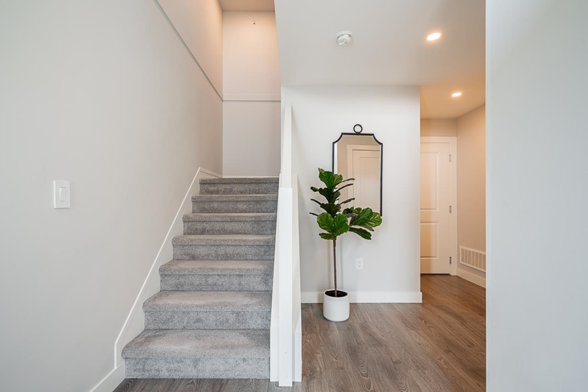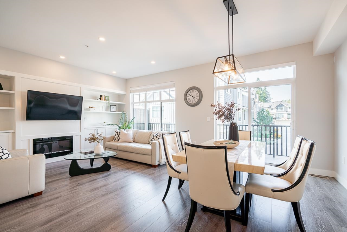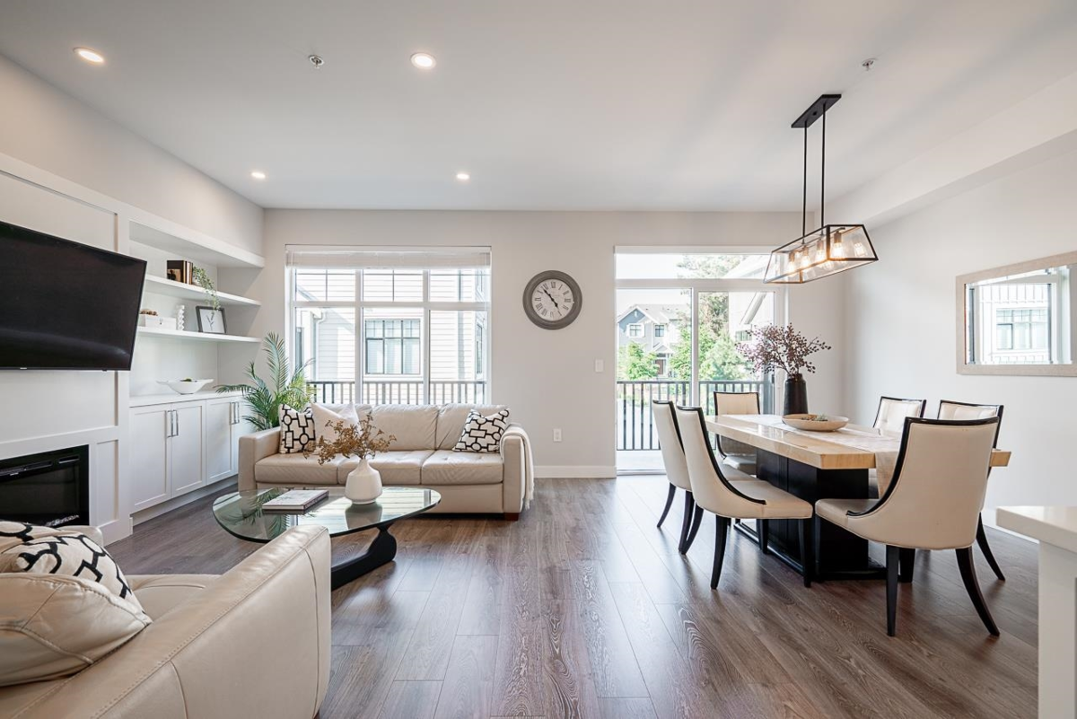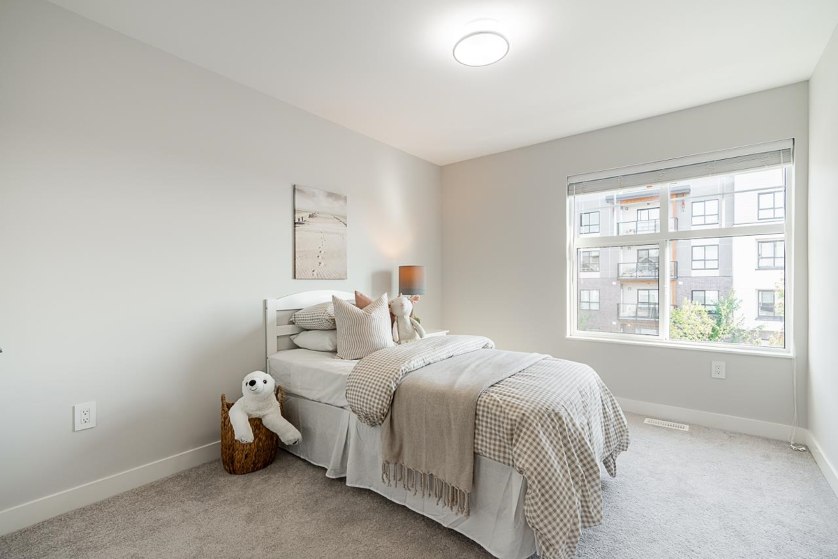 Welcome to TRIBUTE! This modern 4 BED | 3.5 BATH home offers elegant elegant design with the convenience of a lock-and-go lifestyle. This home boasts approx. 2085 square feet of luxury finishes, separate living and family rooms and a double side by side garage. This home features gorgeous glass stair railings, a large walk-in shower with rainfall showerhead and bench seating, and a signature entertainment system complete with fireplace, built-in shelving and wire management. Kitchens include KitchenAid gas cooktop, french door fridge, dishwasher and wall oven with integrated microwave. Forced air heating with A/C and additional soundproofing in the party walls. Walking distance to schools, parks and shops.