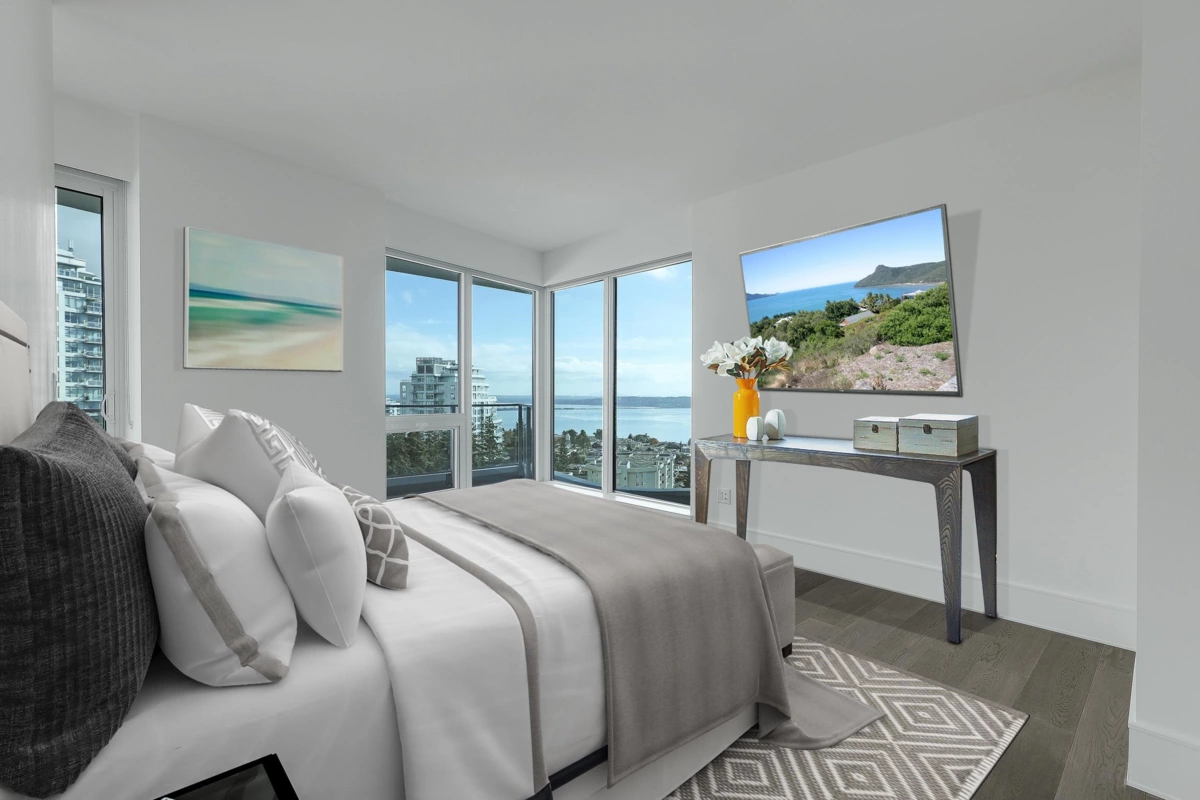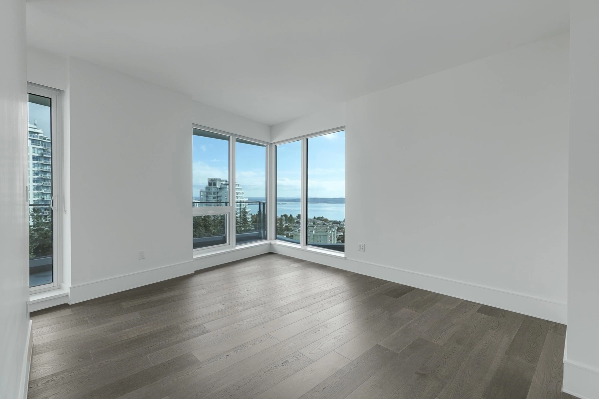 A rare offering at Foster & Martin – two premier units combined into one stunning 2,300 sq. ft. 3 bed, 3 bath + den residence. Enjoy panoramic 180° ocean, Mt. Baker & North Shore Mountain views from every room and a 419 sq. ft. wrap-around balcony. Features floor-to-ceiling windows, hardwood floors, A/C, gas fireplace, and a chef’s kitchen with Miele appliances and large island. Includes 4 parking spaces, 2 lockers, and access to a 10,000 sq. ft. Health & Wellness Centre with pools, sauna etc…