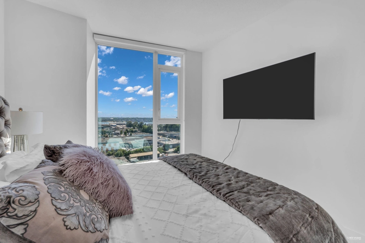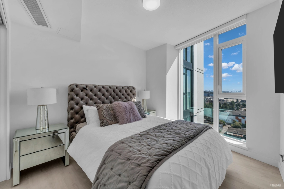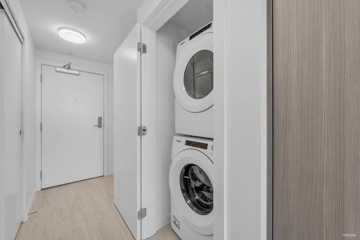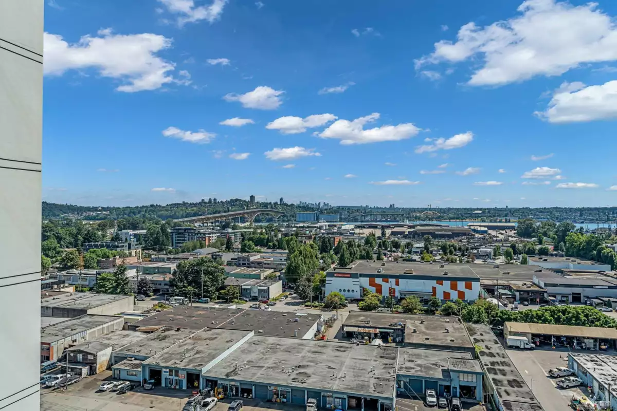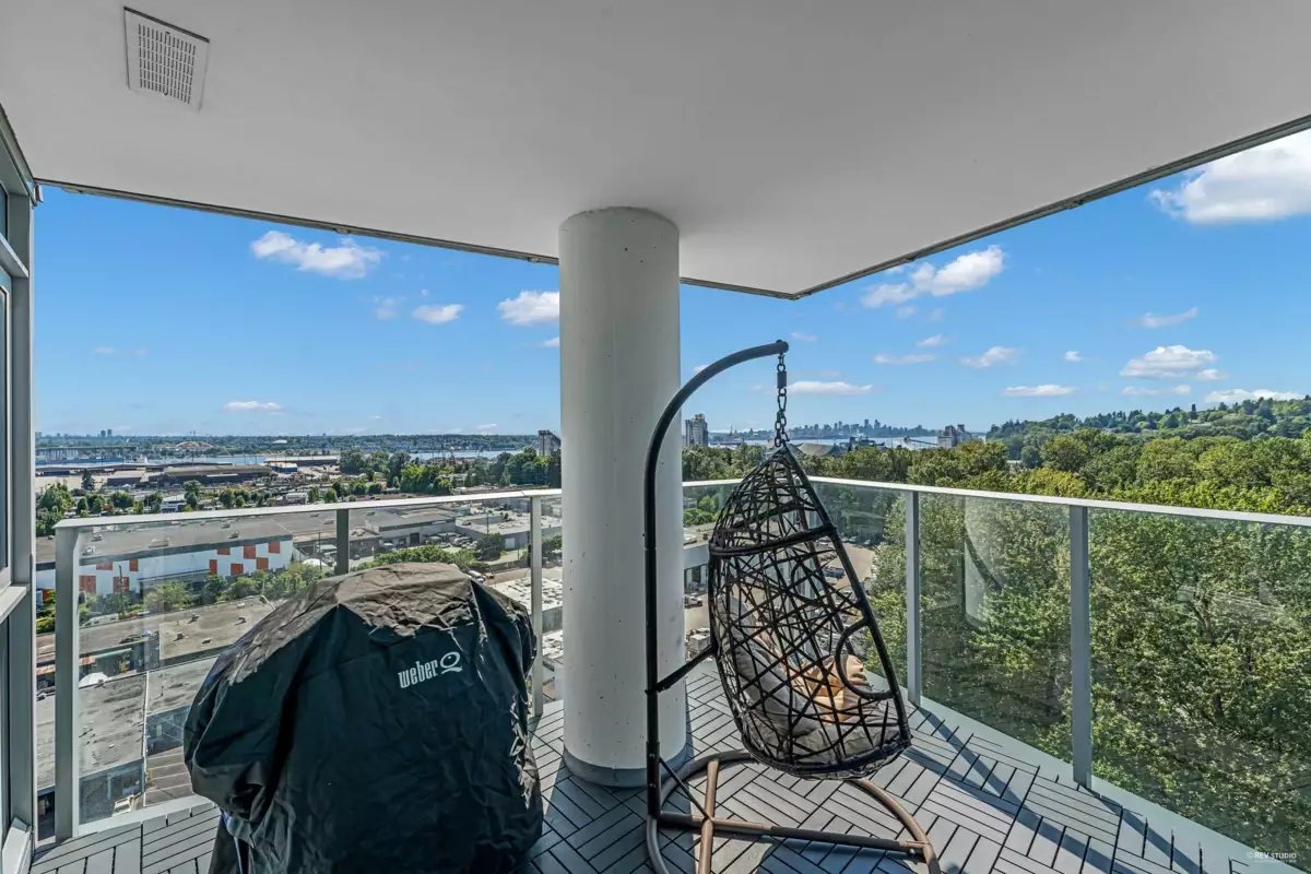 Stunning Corner Residence with Forest & Water Views at Hunter, Lynnmour Perched on the 14th floor of North Vancouver’s sought-after Hunter building, this 2-bedroom, 2-bathroom corner home offers 946 sq.ft. of beautifully designed living space plus a 118 sq.ft. covered balcony to enjoy serene forest vistas & calming water views. Floor-to-ceiling windows flood the open-concept layout with natural light, while the sleek chef’s kitchen boasts quartz countertops, high-end stainless steel appliances, & custom cabinetry with pantry storage. The private primary suite features a walk-in closet & spa-inspired 4-piece ensuite. This home includes air conditioning, in-suite laundry & 1 secure parking.Residents enjoy world-class amenities—state-of-the-art fitness centre, sauna/steam room and etc.