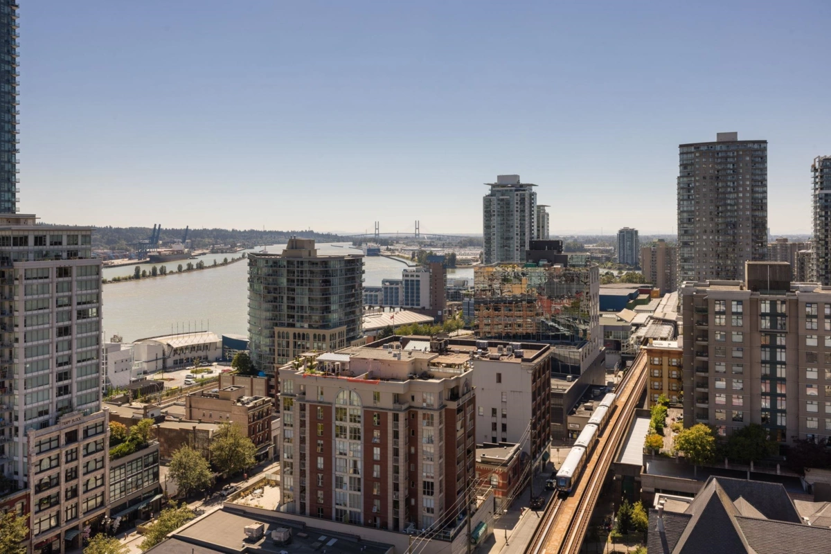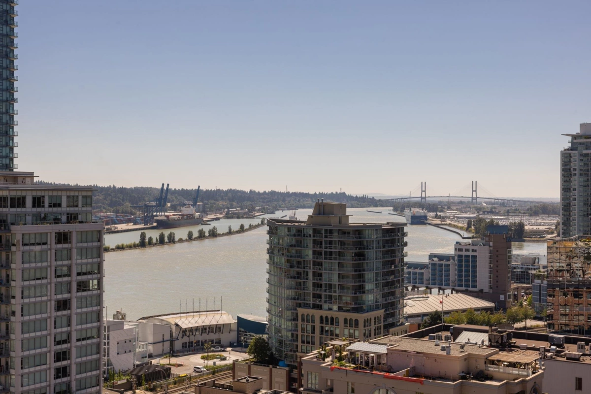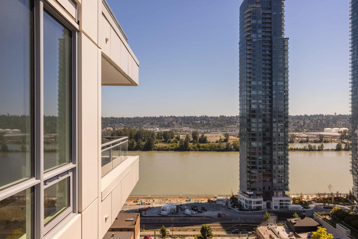 Brand New Move-in ready! Experience elevated living at 618 Carnarvon, where a vibrant lifestyle meets convenience. The "C6" plan features stunning mountain views and unobstructed views of the Fraser River within its 838 sq ft of interior space. With 2 Bedrooms, 2 Full Bathrooms, this south facing suite offers polished quartz countertops, over height ceilings, forced air HEATING & COOLING, sleek KOHLER sinks, energy-efficient BOSCH appliances, 5 burner gas range, modern cabinetry, 1 Parking, & 1 Locker. Amenities include the 2nd, 4th, & 5th floor outdoor courtyards, fitness centre, party room with full kitchen, meeting room, guest suite, & caretaker. With rapid transit , grocery, restaurants, & boundless amenities mere blocks away, you are steps to everything. OPEN HOUSE NOV 30 1-3!